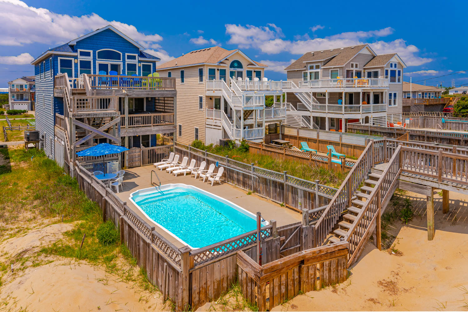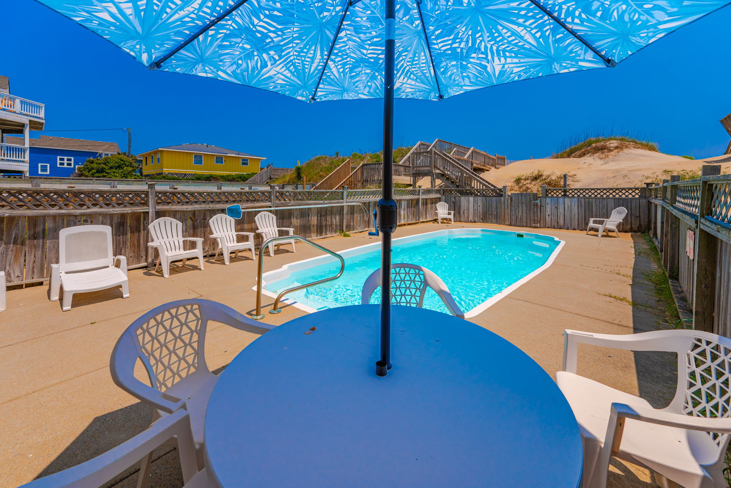Enjoy sweeping views of the Atlantic and the luxury of your own Private Oceanfront Swimming Pool and Hot Tub to soak your worries away. This home is nicely decorated and has a convenient 3 story layout that is perfect for large families to relax and enjoy. Located near area shopping, attractions such as the NC Aquarium Society's Jennette's Pier, and several of the Outer Banks finest dining establishments.