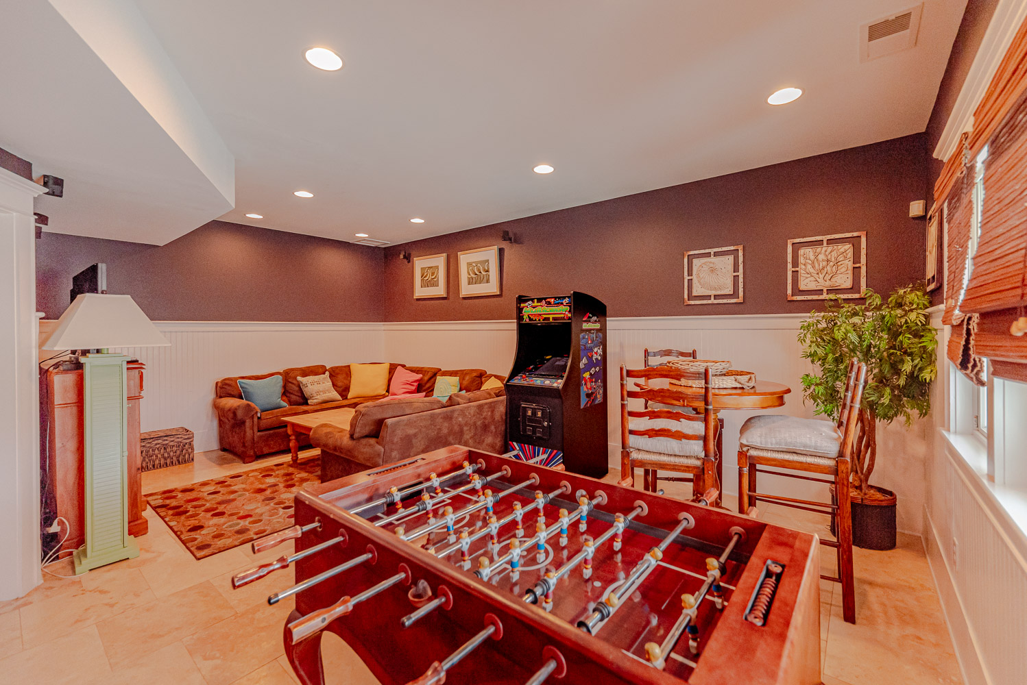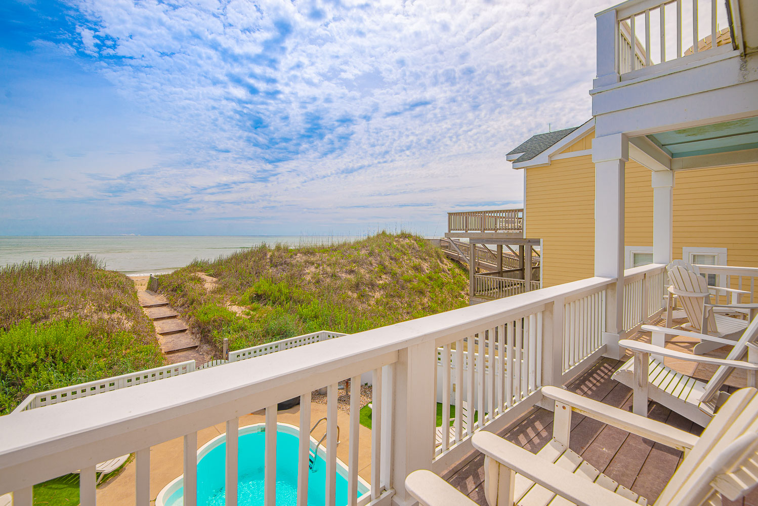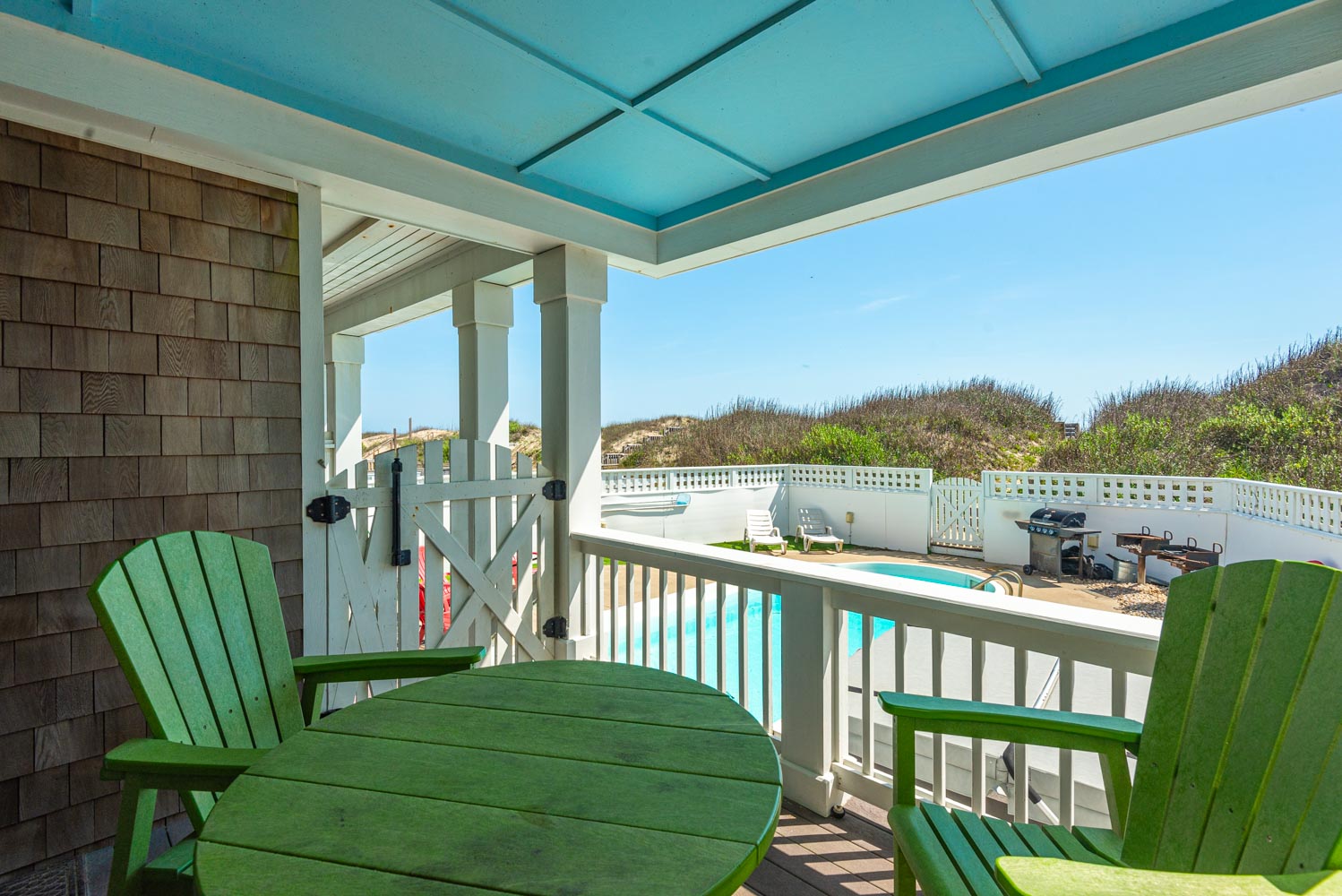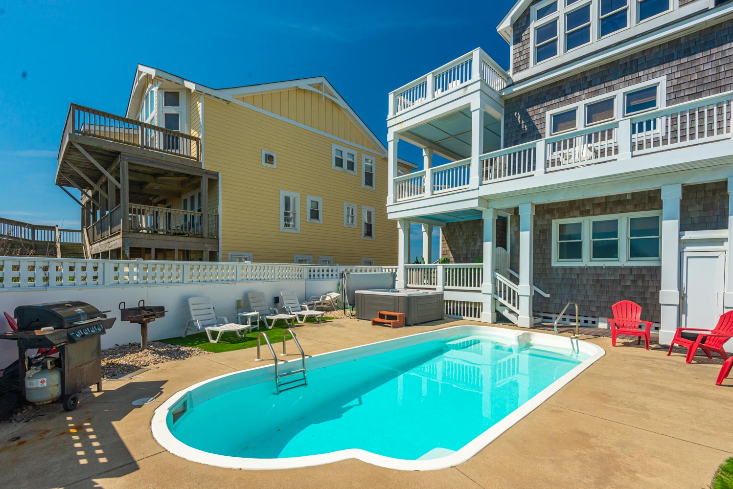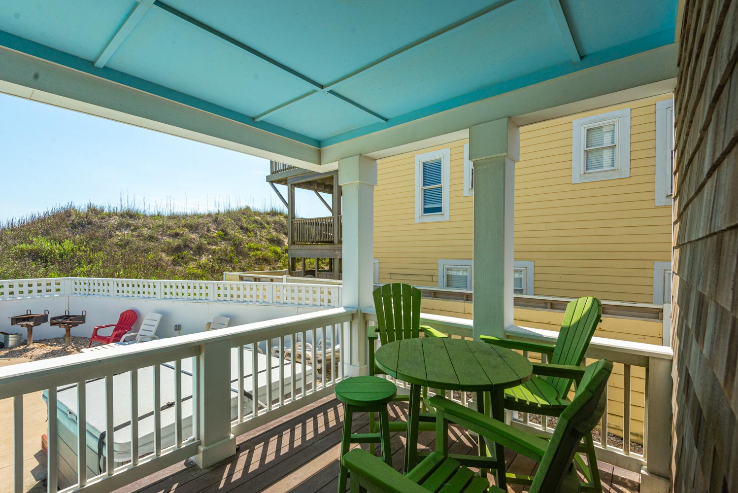 Ground Level: Parking for 5 Cars, Steps to Covered Entry, Foyer/Sitting Area, Elevator, Laundry Area, 3 Bedrooms (Private Suite w/Queen, TV, Access to Front Balcony w/Deck Furniture, & Full Bath, Private Suite w/2 Singles, TV, & Full Bath, Bedroom w/Bunk Set w/Trundle & TV), Shared Full Bath Bath, Rec. Room w/Foosball, Media Area, TV, Wet Bar w/Mini-Refrigerator, Microwave, & Access to Covered Area w/Steps to Enclosed Outside Shower, Private Heated Swimming Pool - Open Seasonally. (Can Be Heated for $300.00 Per Week, Plus Tax. Please Bear in Mind That Pool Temperature is Subject to Outside Temperatures & amp; Conditions), Hot Tub, and Walkway to Beach w/Dune Top Deck w/Foot Shower.