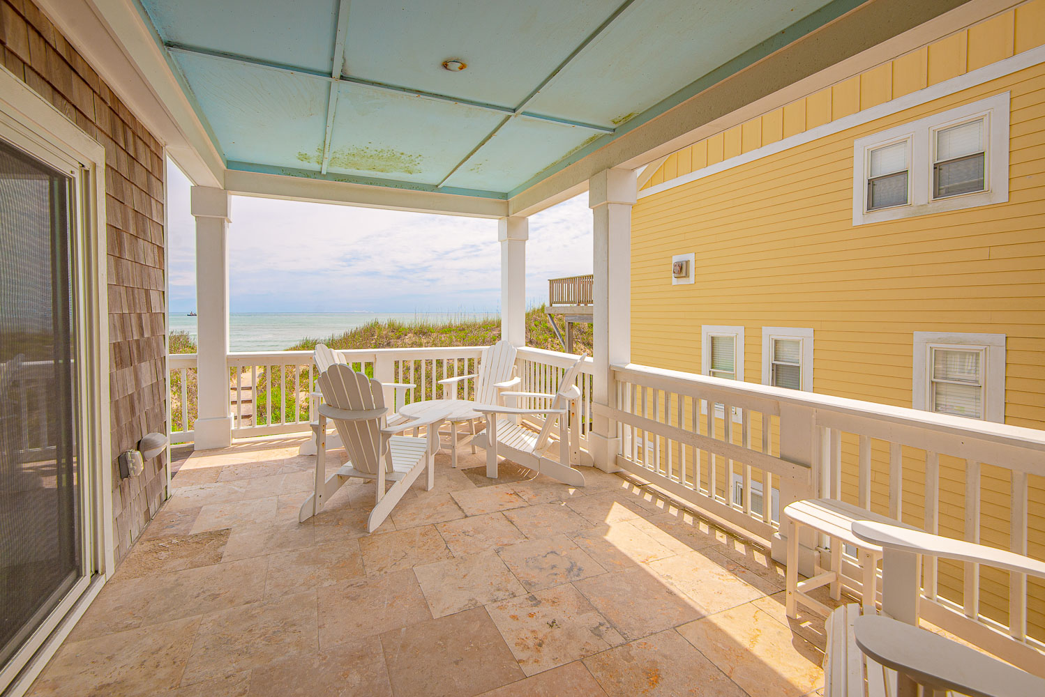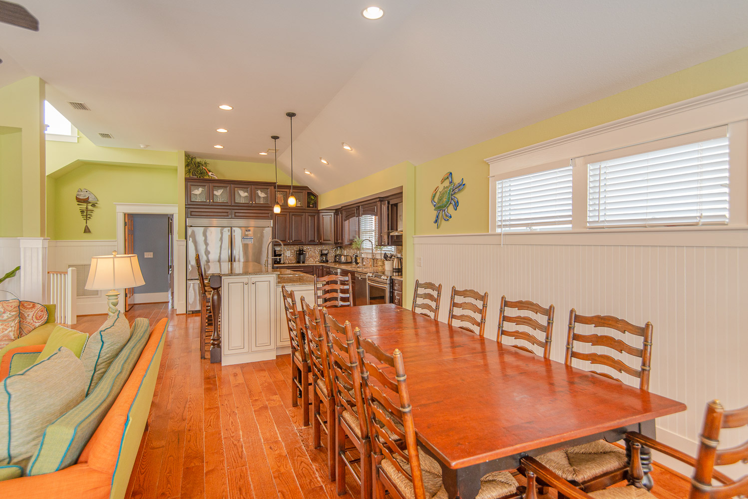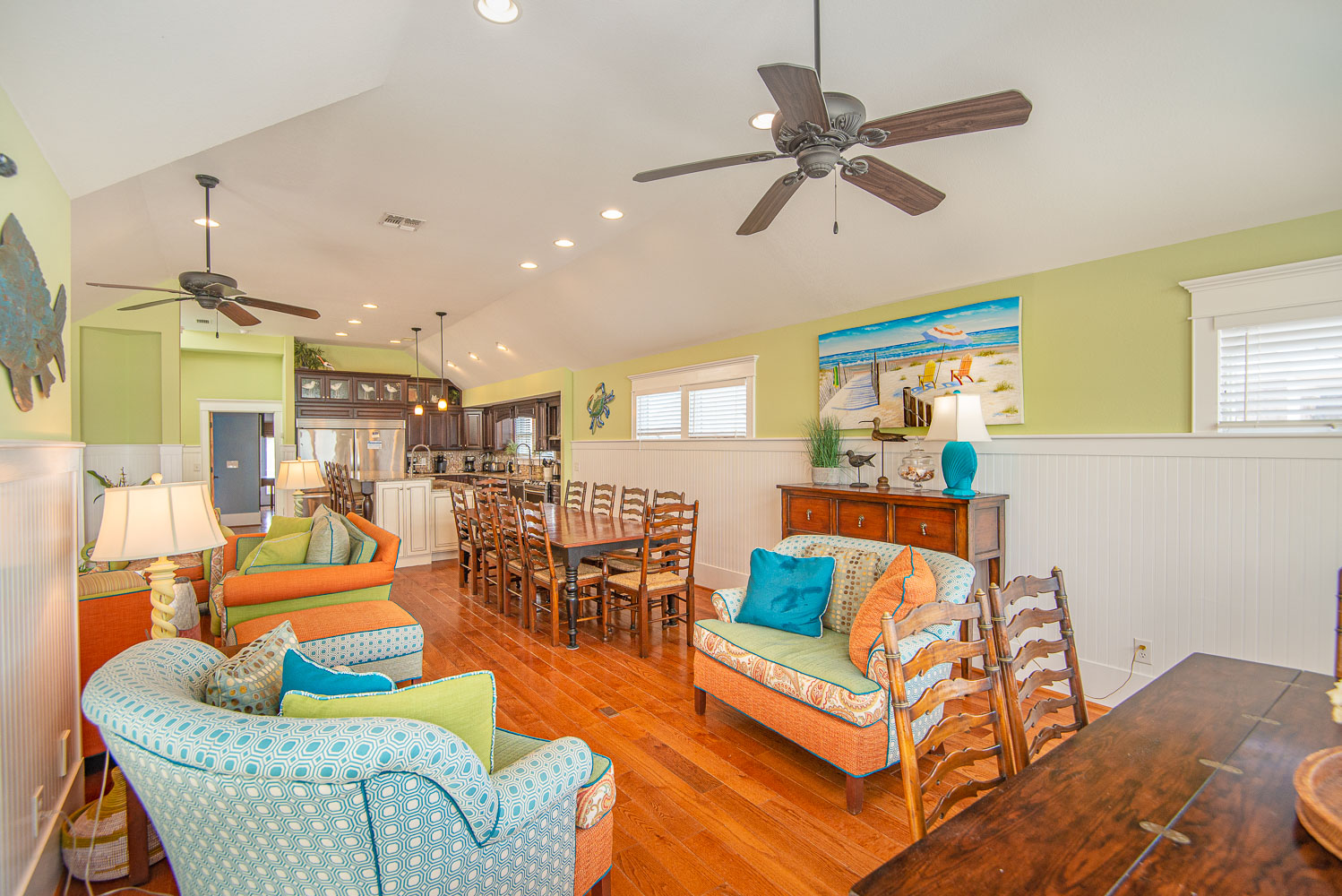 Top Level: Living Area w/TV, Ocean Views, Kitchen Area w/Bar Seating for Three (3), 2 Dishwashers, Double Refrigerator, Dining Area w/Seating for Twelve (12), Half Bath, Sitting Area w/Access to Sun Deck w/Deck Furniture and Ocean Views, Private Suite w/King, TV, Full Bath, and Access to Private Front Covered Deck w/Furniture.