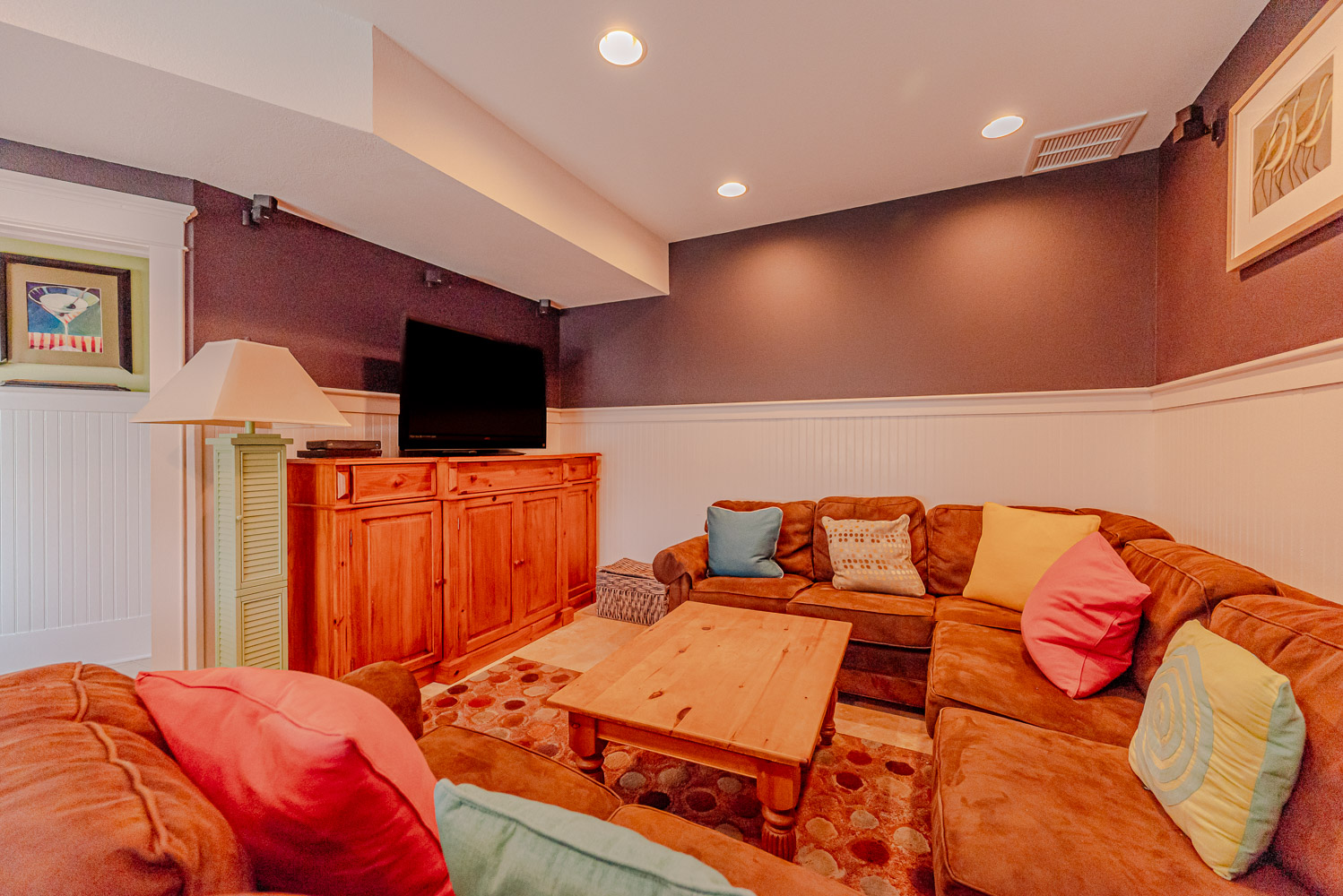 Mid Level: Four Bedrooms (Private Suite w/King, TV, Full Bath, & Access to Private Covered Deck w/Deck Furniture, Private Suite w/Queen, TV, and Full Bath, Private Suite w/King, TV, Full Bath, & Access to Covered Deck and Sun Deck w/Deck Furniture Overlooking Pool Area, Private Suite w/Queen, TV, Full Bath, & Access to Private Covered Deck w/Deck Furniture), Laundry Area, Den w/TV, & Access to Oceanfront Covered Deck w/Deck Furniture.