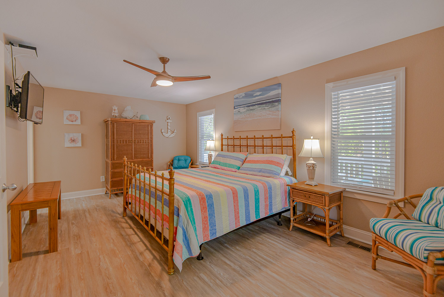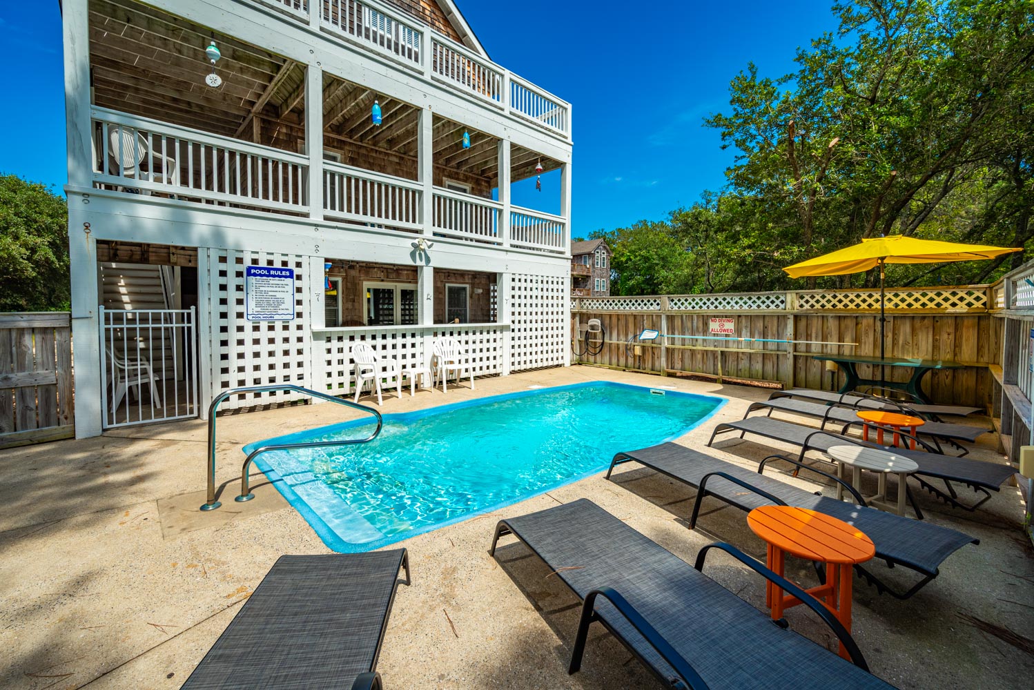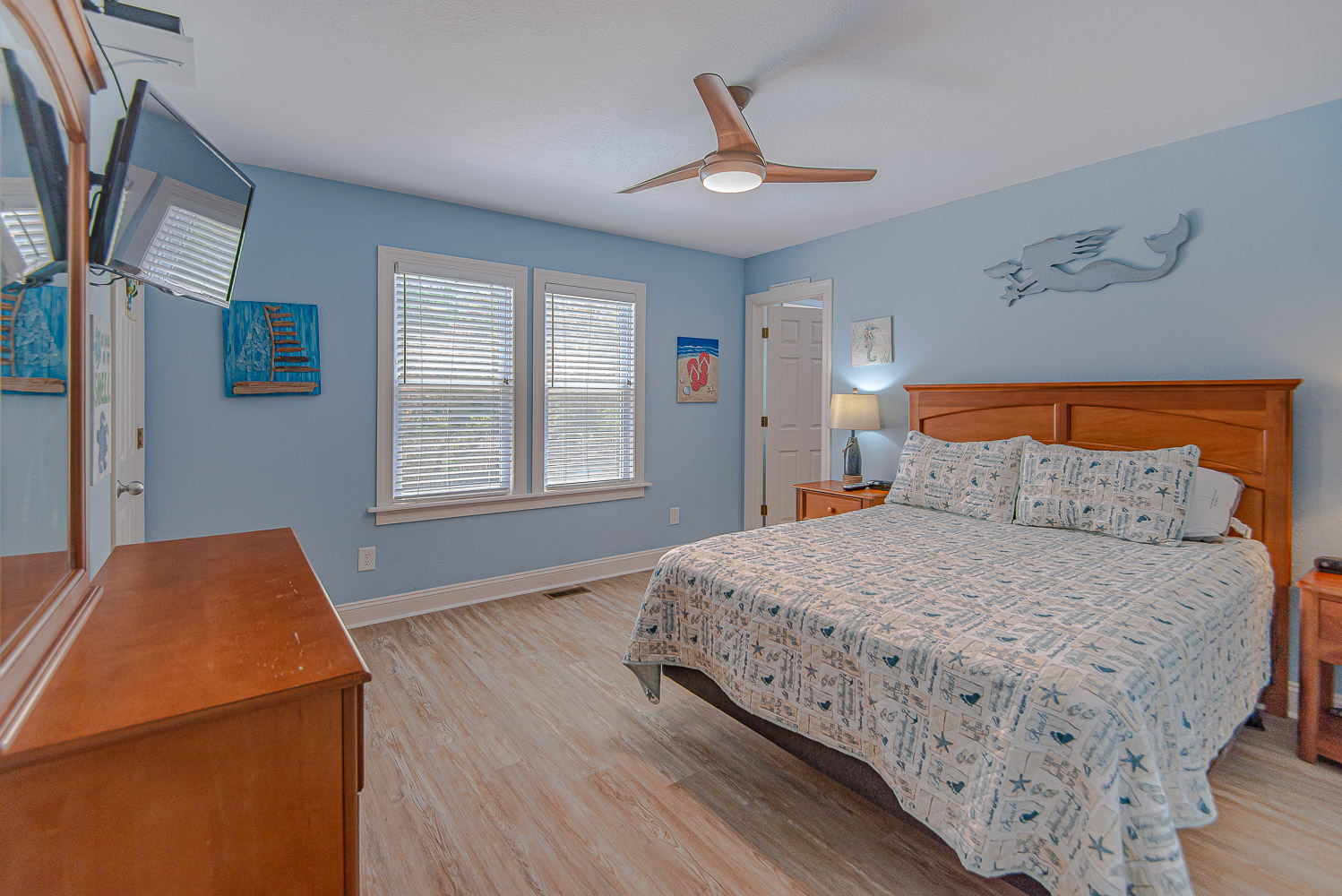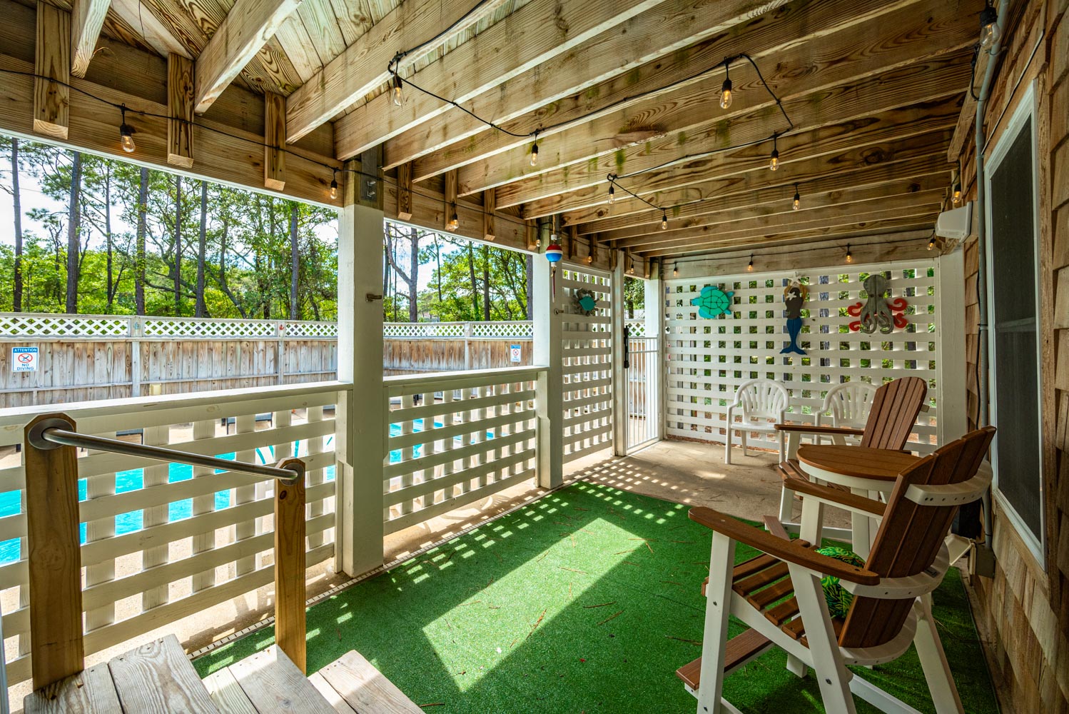Mid Level: 3 Bedrooms (1 Private Suite w/King, Flat Screen TV, & Full Bath w/Jacuzzi Tub & 2 Private Suites w/Queens, Flat Screen TVs, & Full Baths), Front Porch, & Covered Deck Overlooking Pool w/Deck Furniture & Steps to Pool Area.