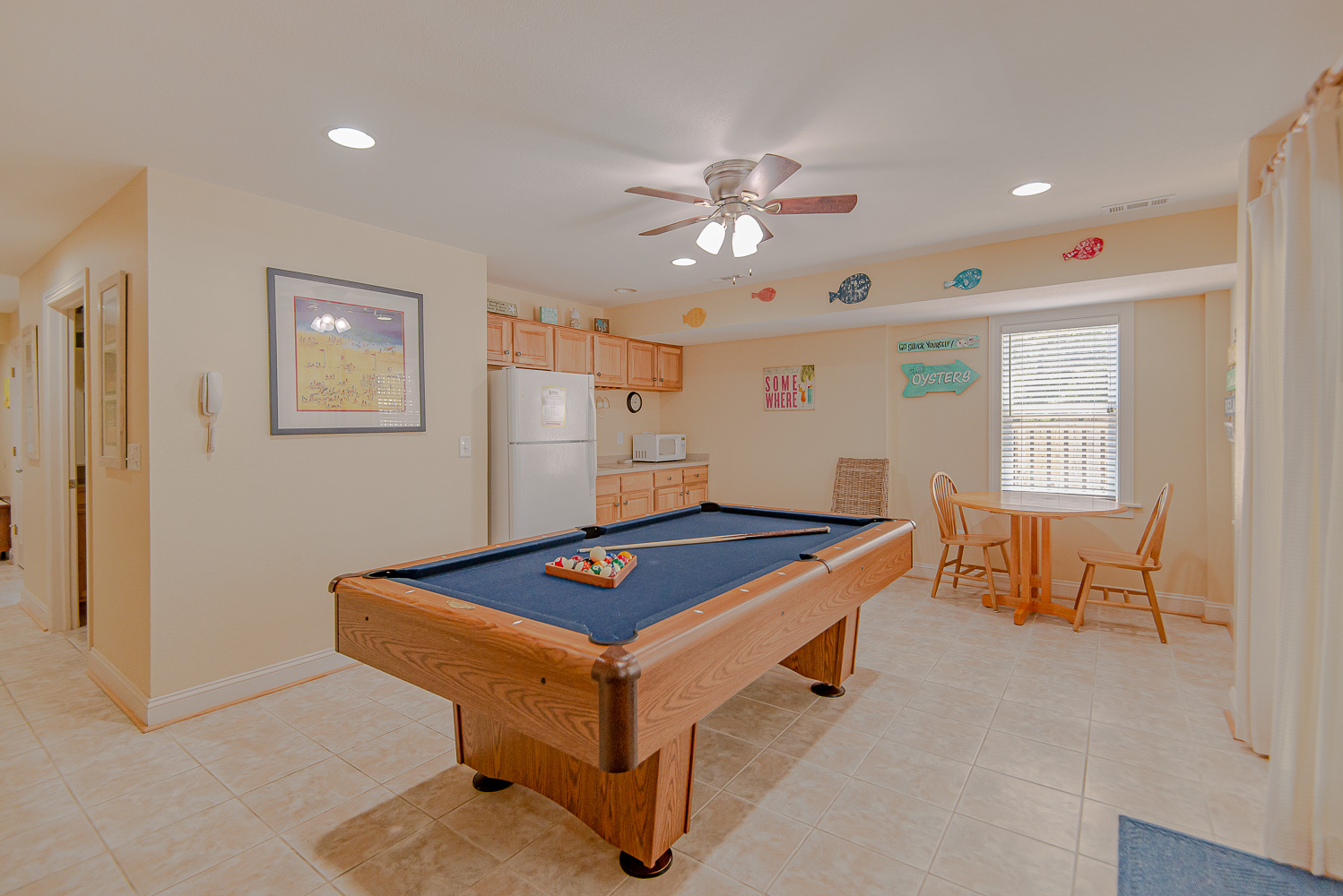Ground Level: Parking for 5 Cars, Covered Entry, Elevator, Rec. Room w/Pool Table , Kitchenette, Full Size Refrigerator w/Ice Maker, 1 Bedroom w/2 Singles, Full Hall Bath, Laundry Area, Access to Private Swimming Pool - Open Seasonally, Hot Tub, Enclosed Outside Shower, & Gas Grill.