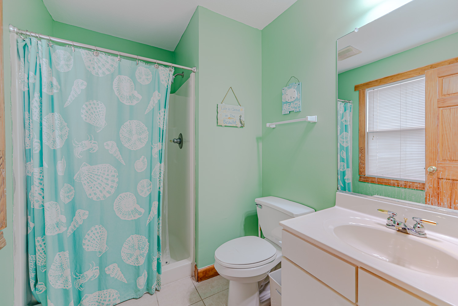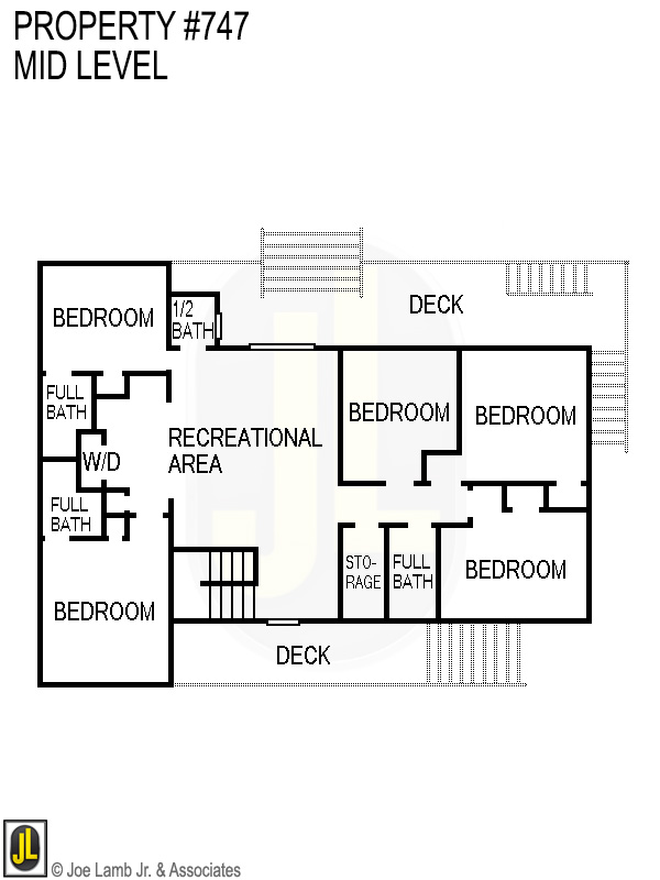 Mid Level: Covered Entry, 5 Bedrooms (Private Suite w/King, Smart TV, Full Bath w/Tub/Shower, Private Suite w/Queen, TV, Full Bath w/Shower, 1 w/Double, 2 w/Duo Bunk & Single), Full Hall Bath, Large Rec. Room w/Pool Table, Sitting Area, TV, Full Size Refrigerator, Laundry Area, Half Bath, Front Covered Deck, and Back Covered Deck Overlooking Pool, and 2 Enclosed Outside Showers.