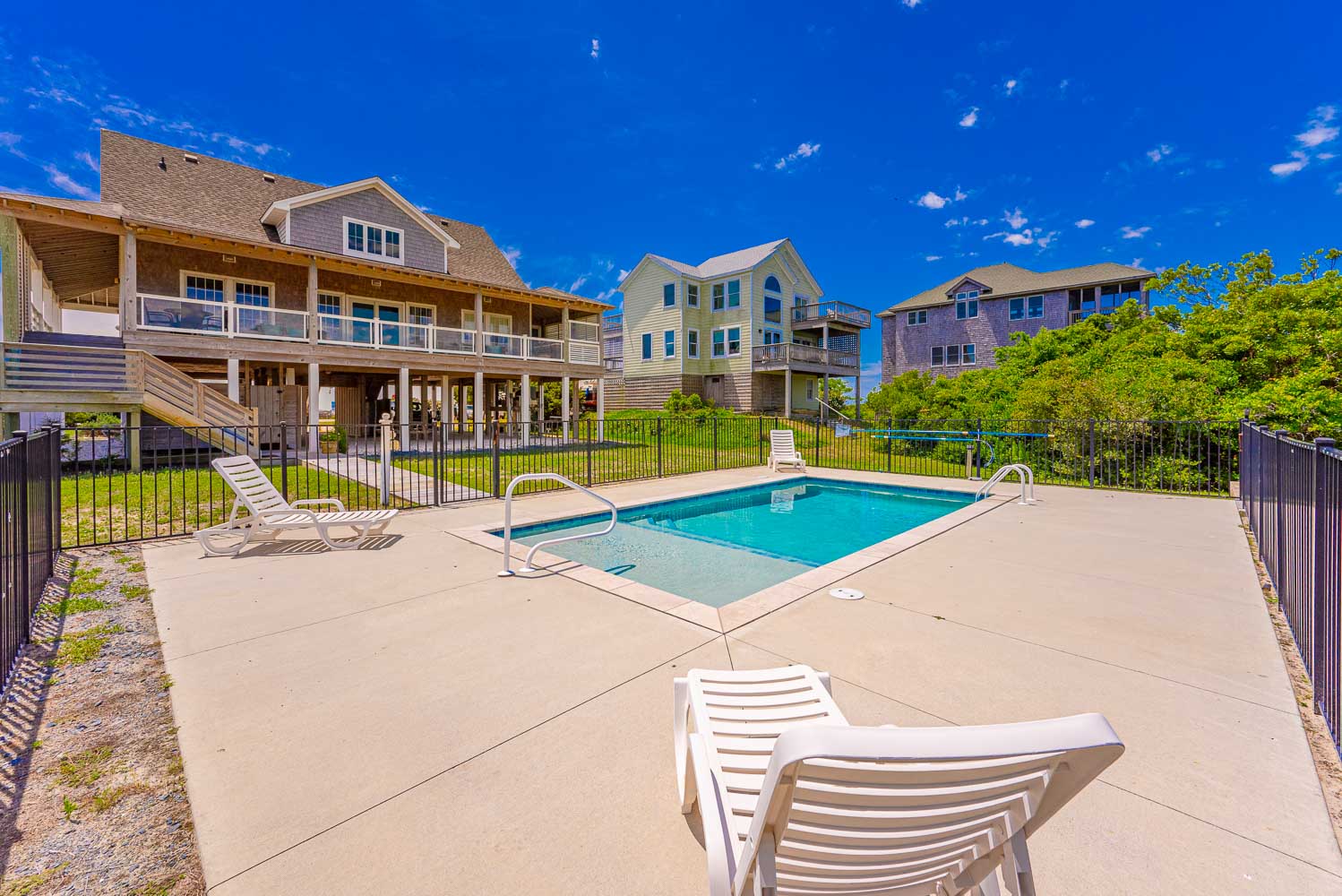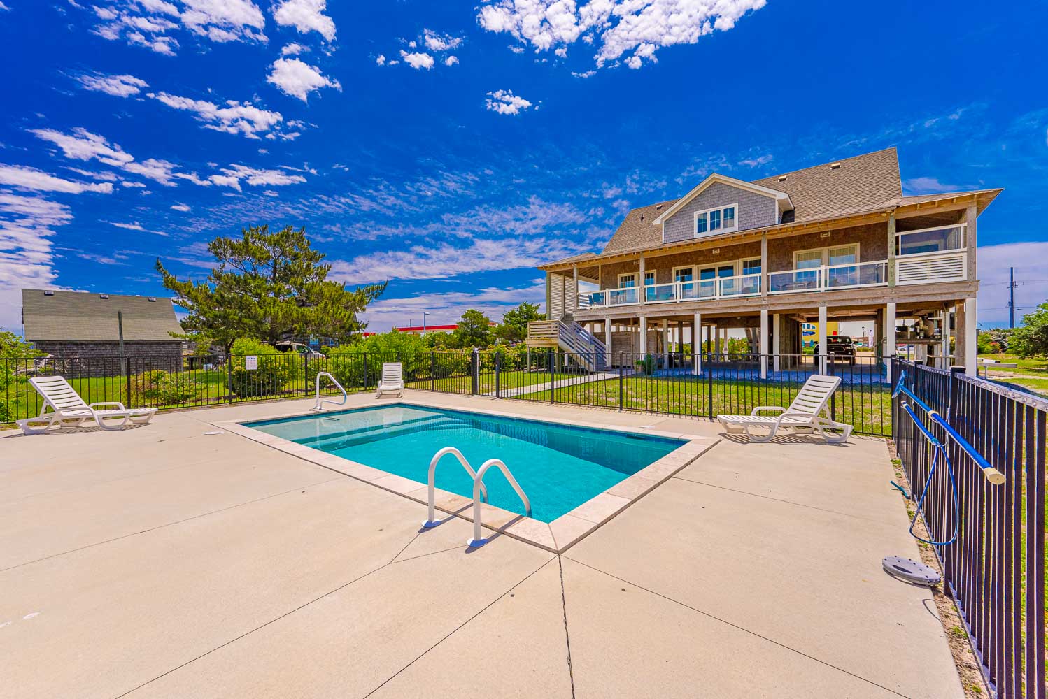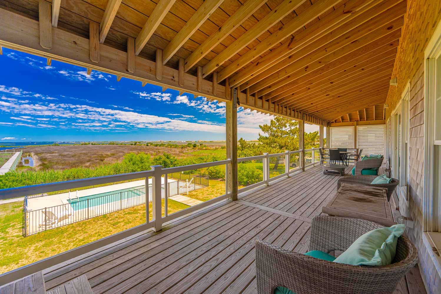 Ground Level: Parking for 4 Cars (2 Under House), Private Swimming Pool - Open Seasonally, Charcoal Grill, Enclosed Outside Shower, & 390 Ft. Pier & Boat Dock.