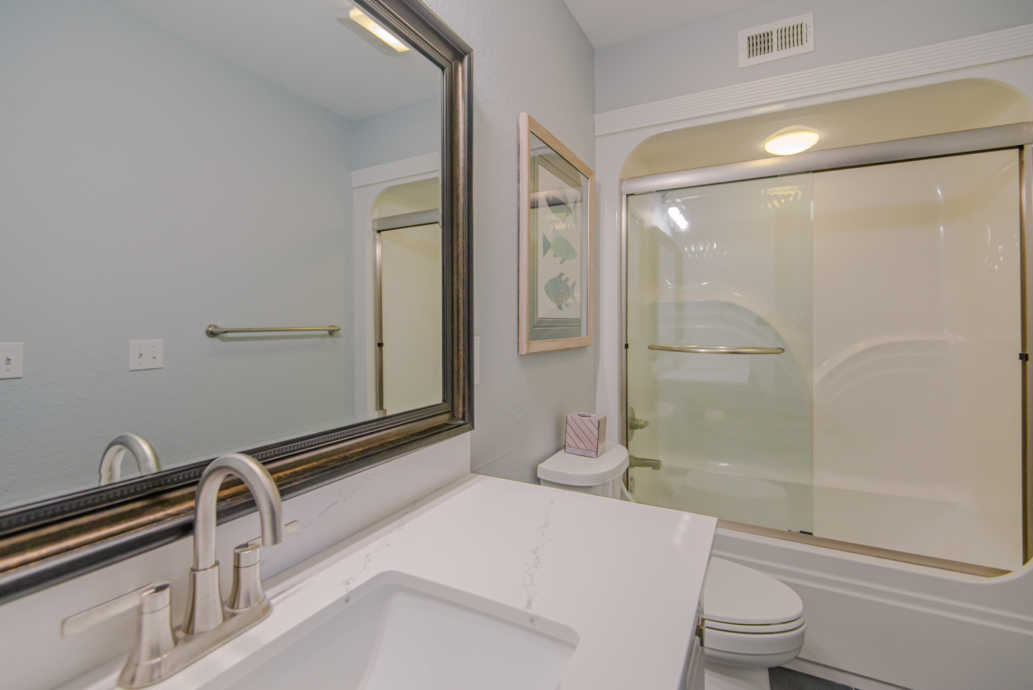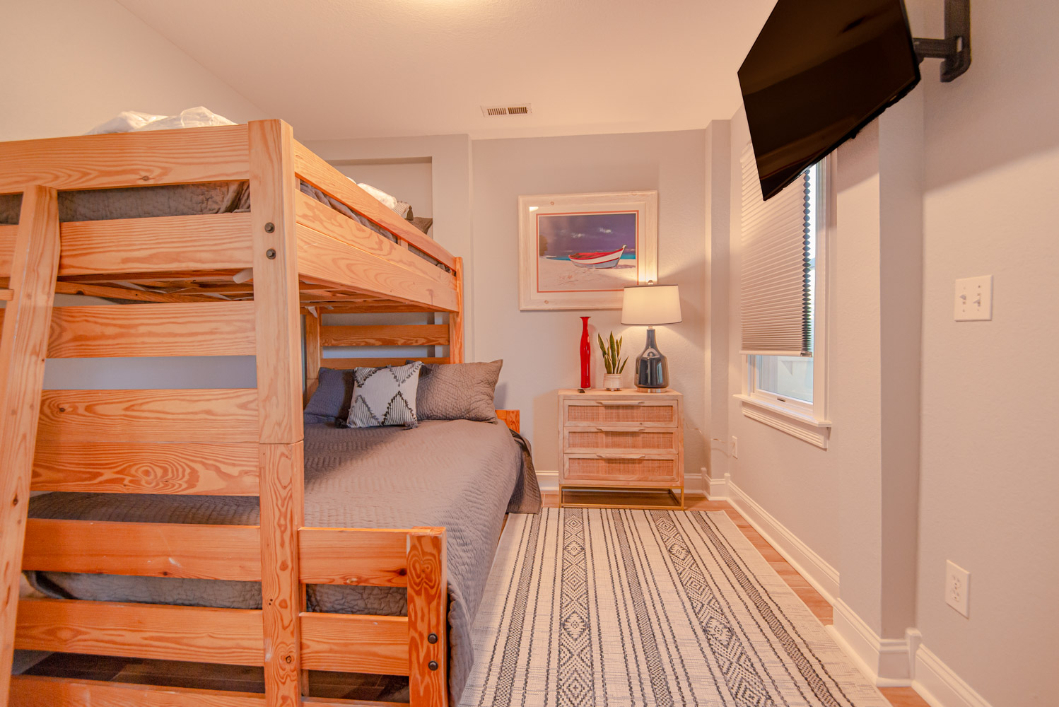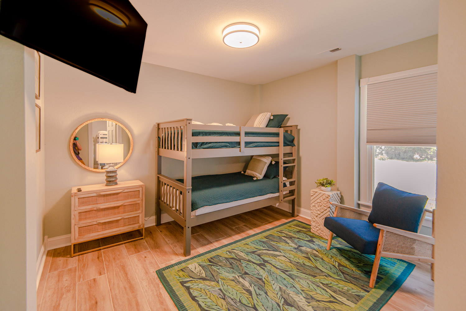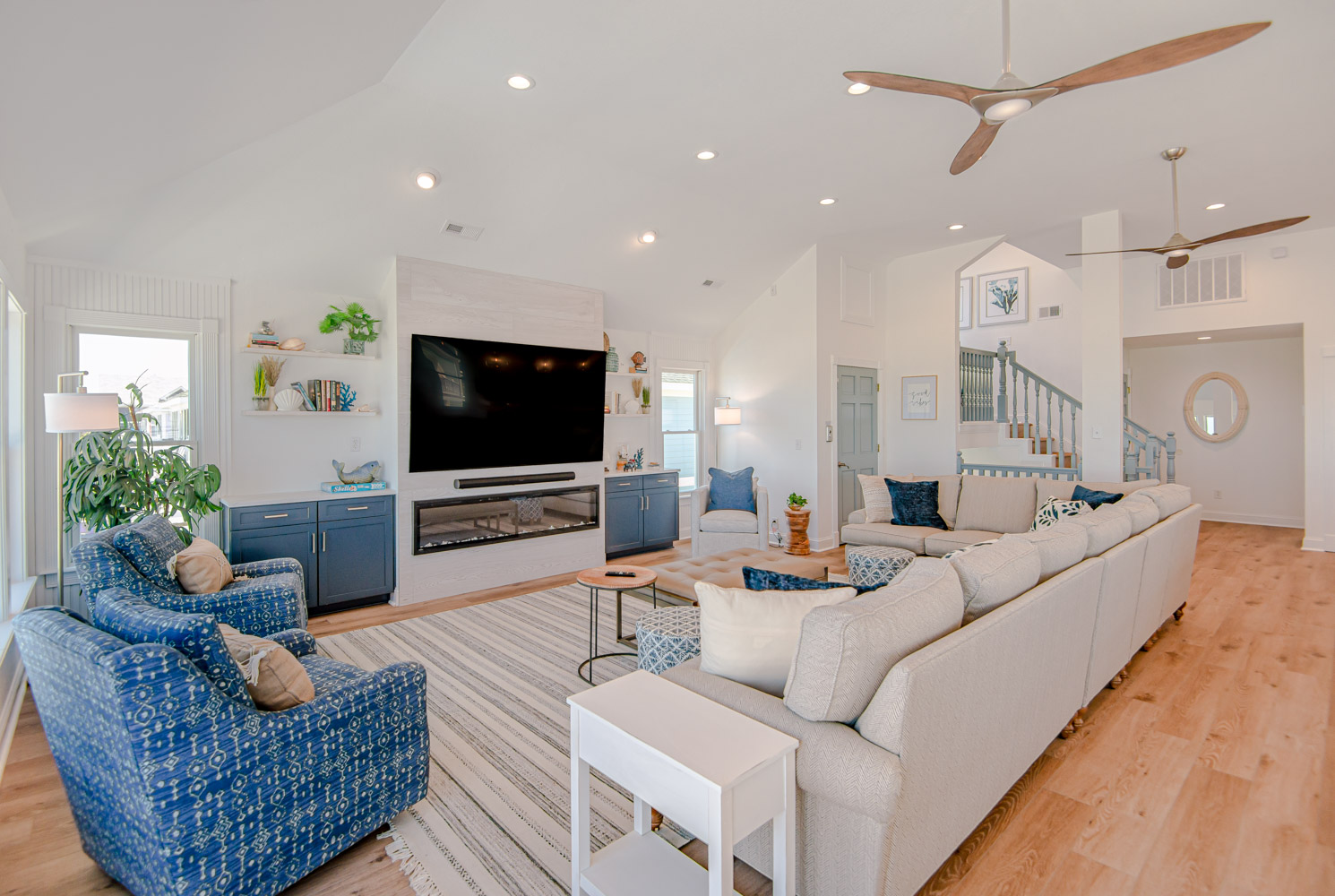 Recent major renovations included an all-new kitchen with new cabinets, granite counters, island bar w/seating and appliances. Premium vinyl plank flooring throughout the home, new living area furnishings, new dining room furnishings, new rec. room furnishings, new pool table, video arcade machine, new top-level private bedroom furnishings, New Smart TV’s throughout (all bedrooms have 43" Smart TV's), new tile in the baths and enhanced décor. This home is fabulous with high-end furnishings and decor throughout!