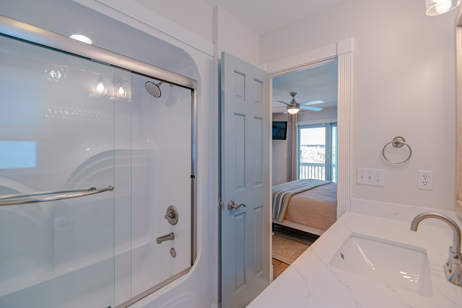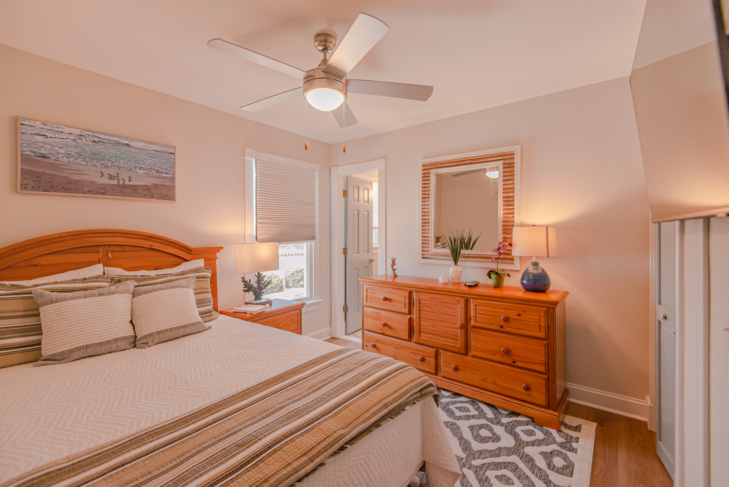 Top Level: Open, Spacious Great Room, Large Flat Screen TV, Terrific Ocean Views, Electric Fireplace, Renovated Fully Equipped Kitchen, Granite Counter Tops, Island Bar w/Sink and Seating, Dining Area, Two Tables, Half Bath, Access to Ship's Watch, Video Game, Separate Video Screen for your Computer, Hardwired Internet Outlet for Enhanced Speed, Private Suite w/King, TV, Full Bath w/Jacuzzi Tub/Shower, and Access to Sun Deck Overlooking Pool Area, Deck Furniture, and Ocean Views.