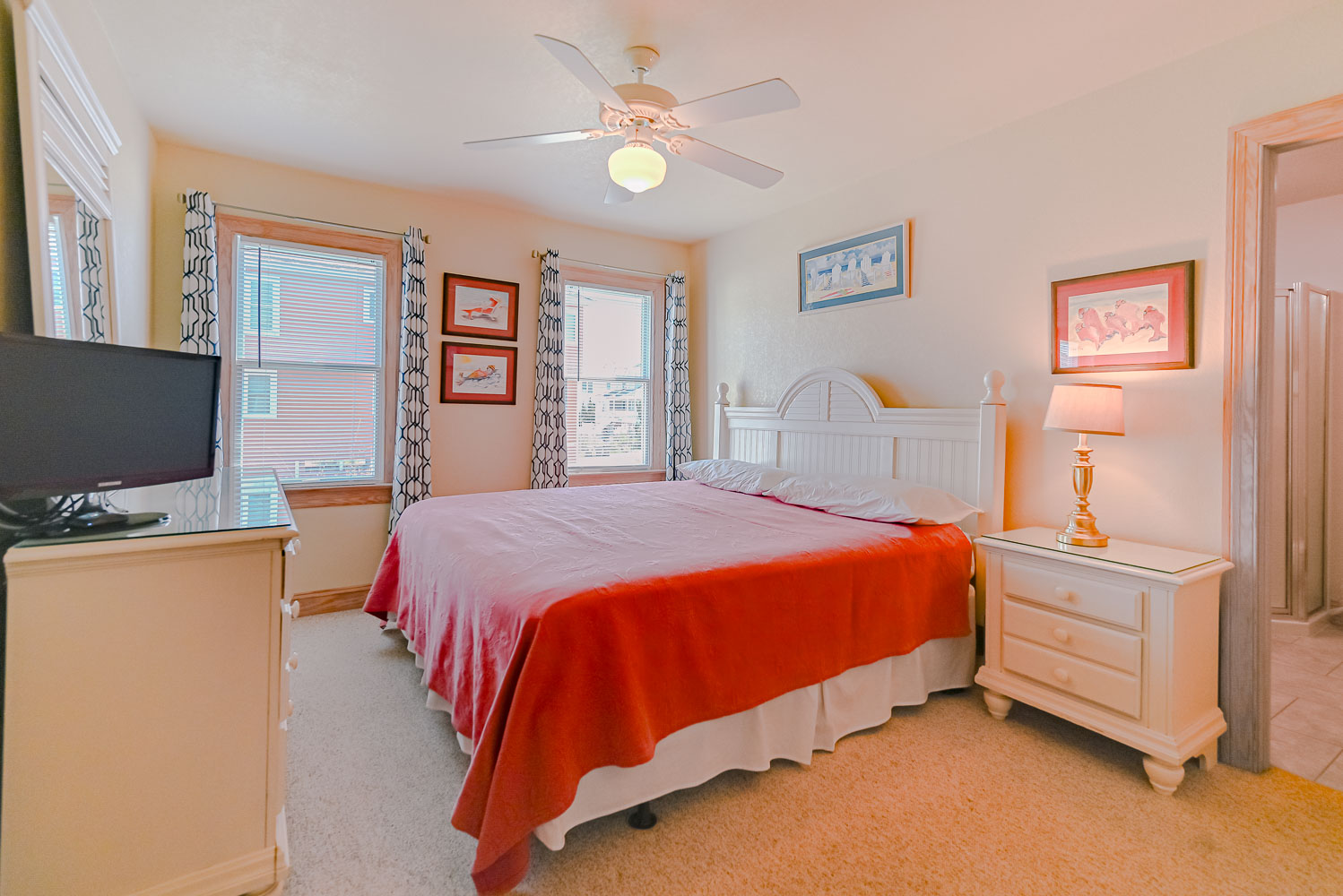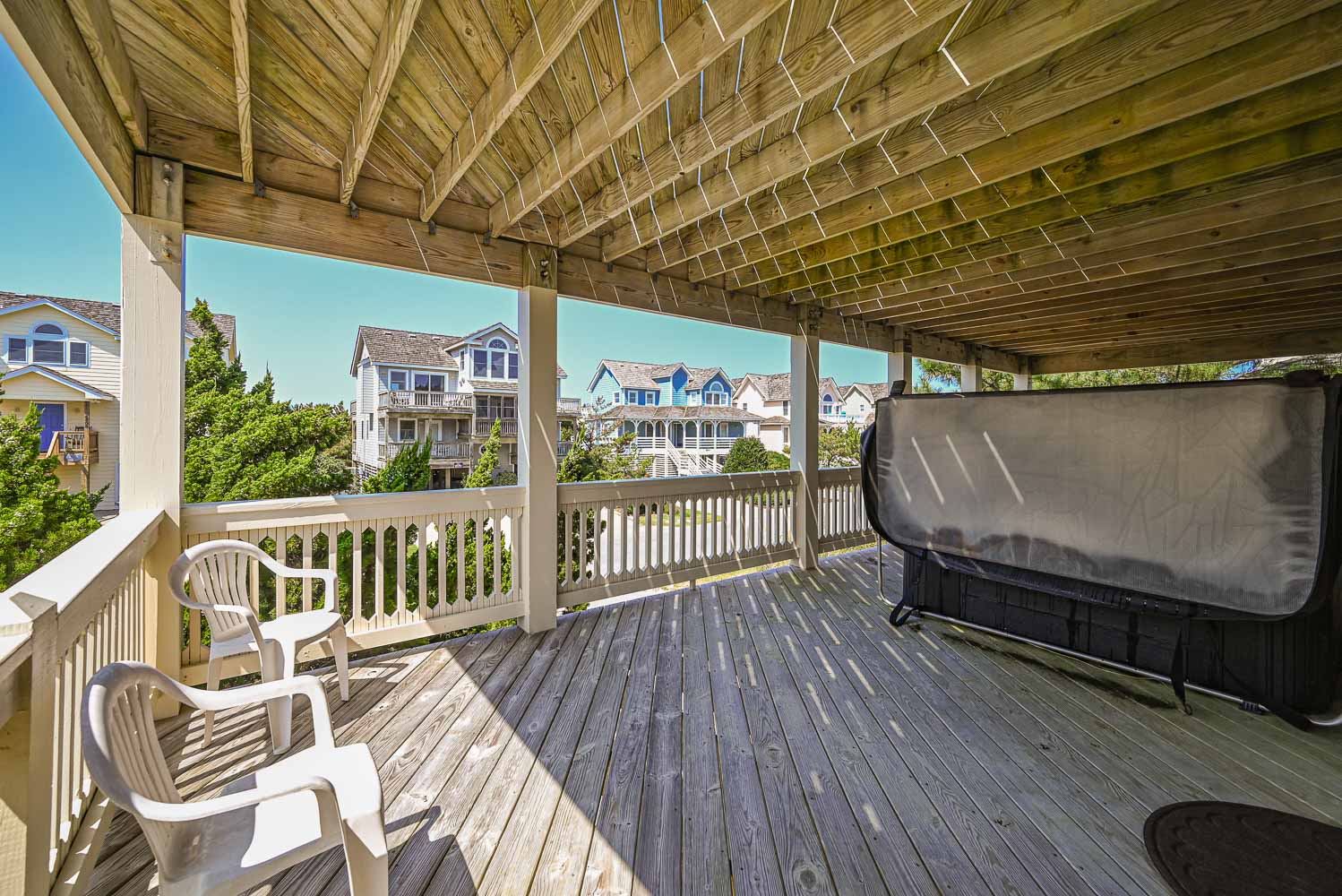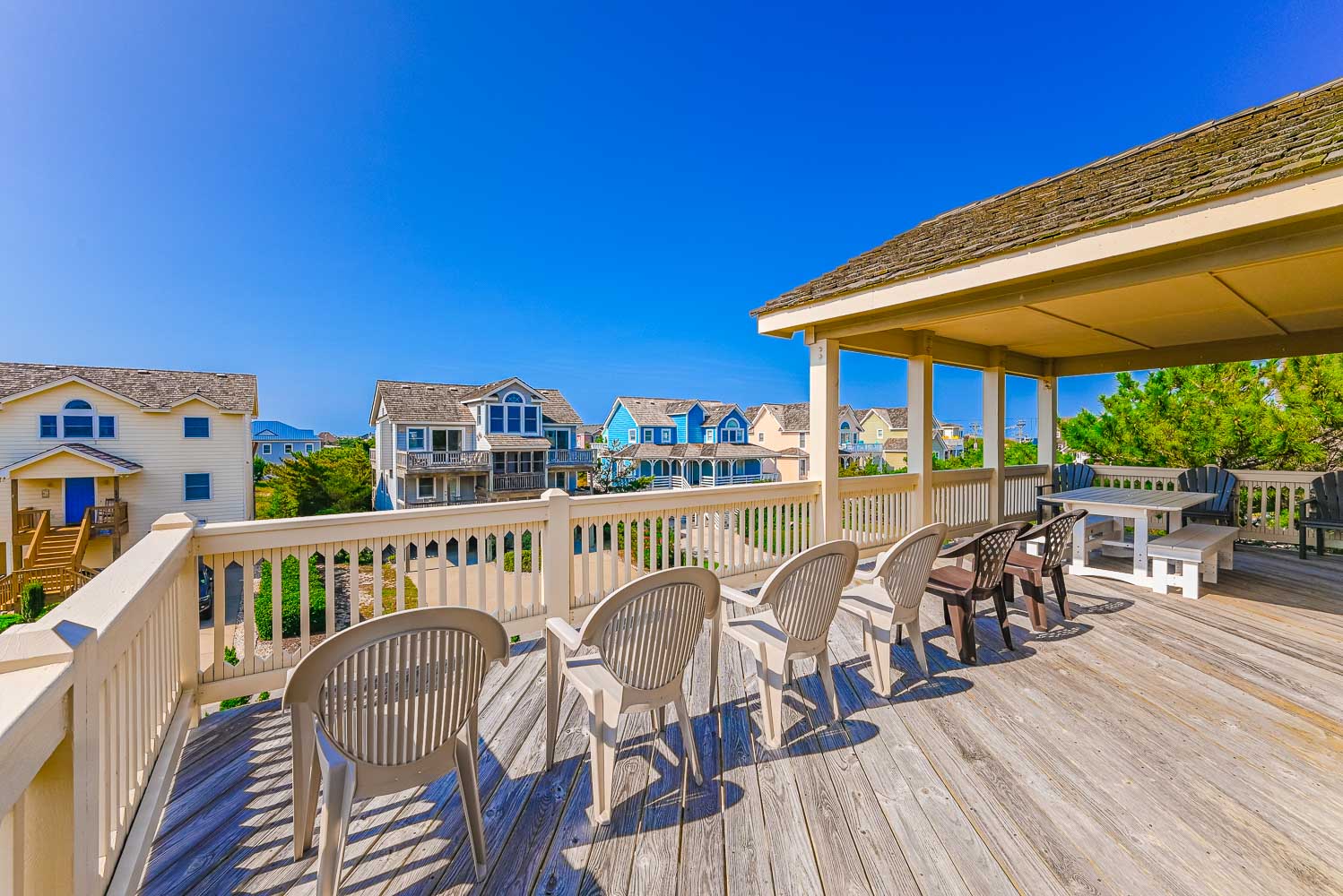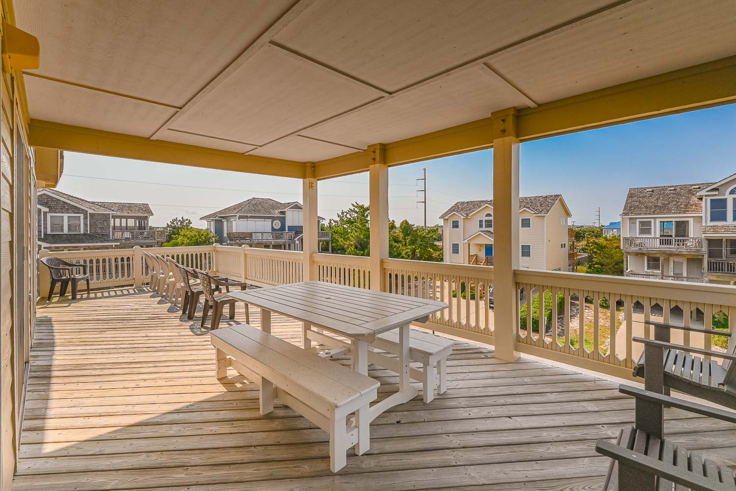 Top Level: Spacious & Beautifully Decorated Living/Dining/Kitchen area, Large Flat Screen TV w/Surround Sound Stereo, Gas Fireplace, Well Equipped Kitchen, Horizon Ocean Views, Half Bath, Private Suite w/King & Full Bath, Sun Deck, Covered Deck, Deck Furniture & Picnic Table.