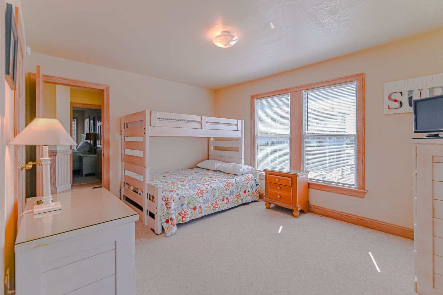 Mid Level: 4 Private Suites all w/Private Baths & TV's (2 w/Kings, 1 w/2 Queens & 1 w/Duo Bunk), Large Covered Porch w/Hot Tub, & Laundry.