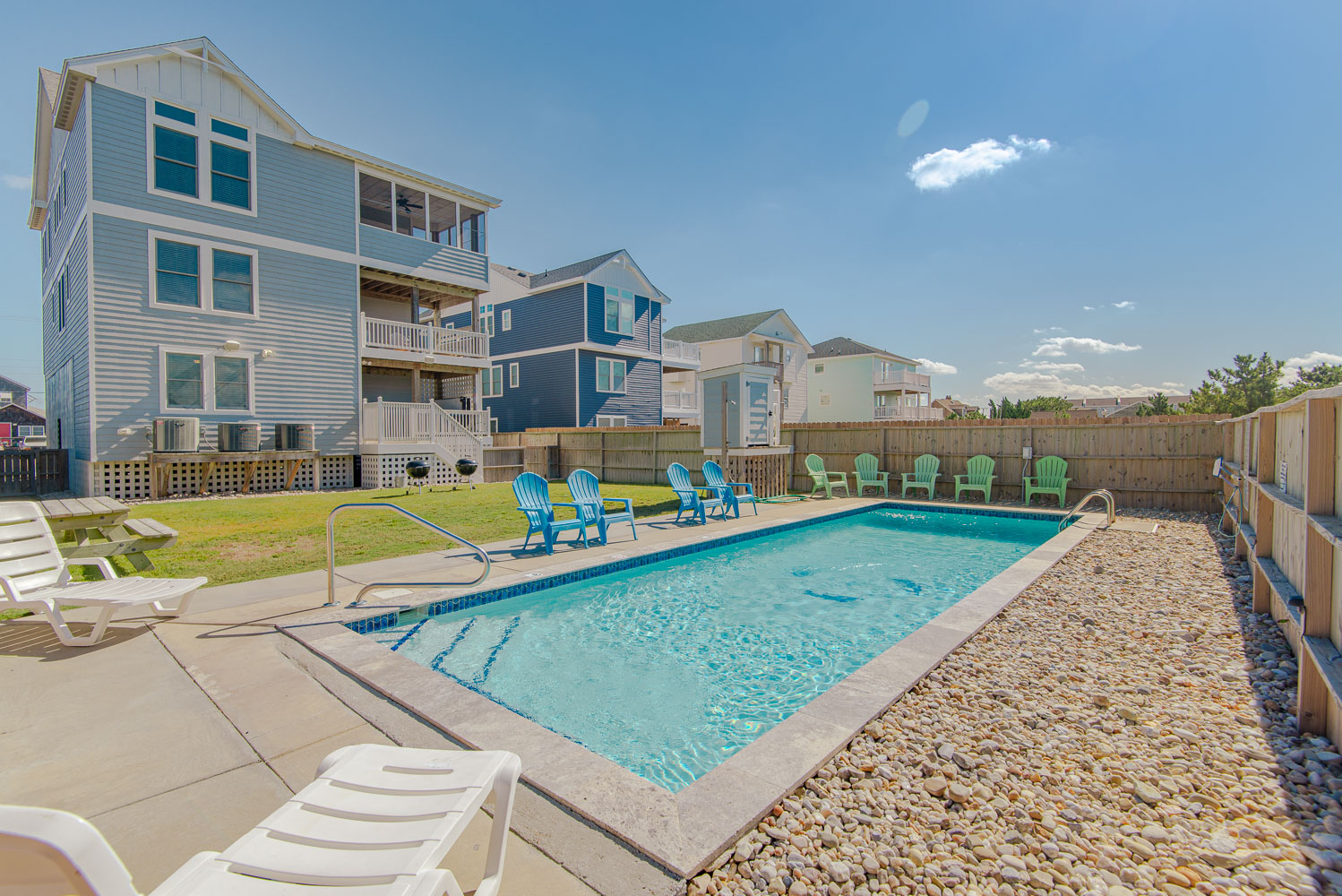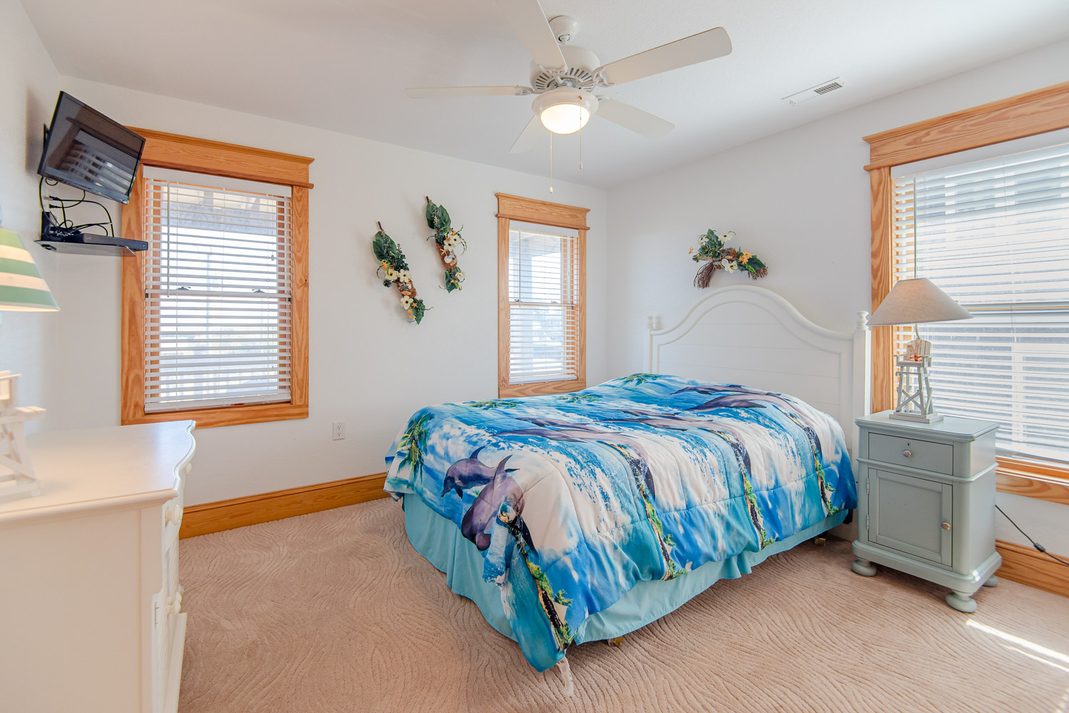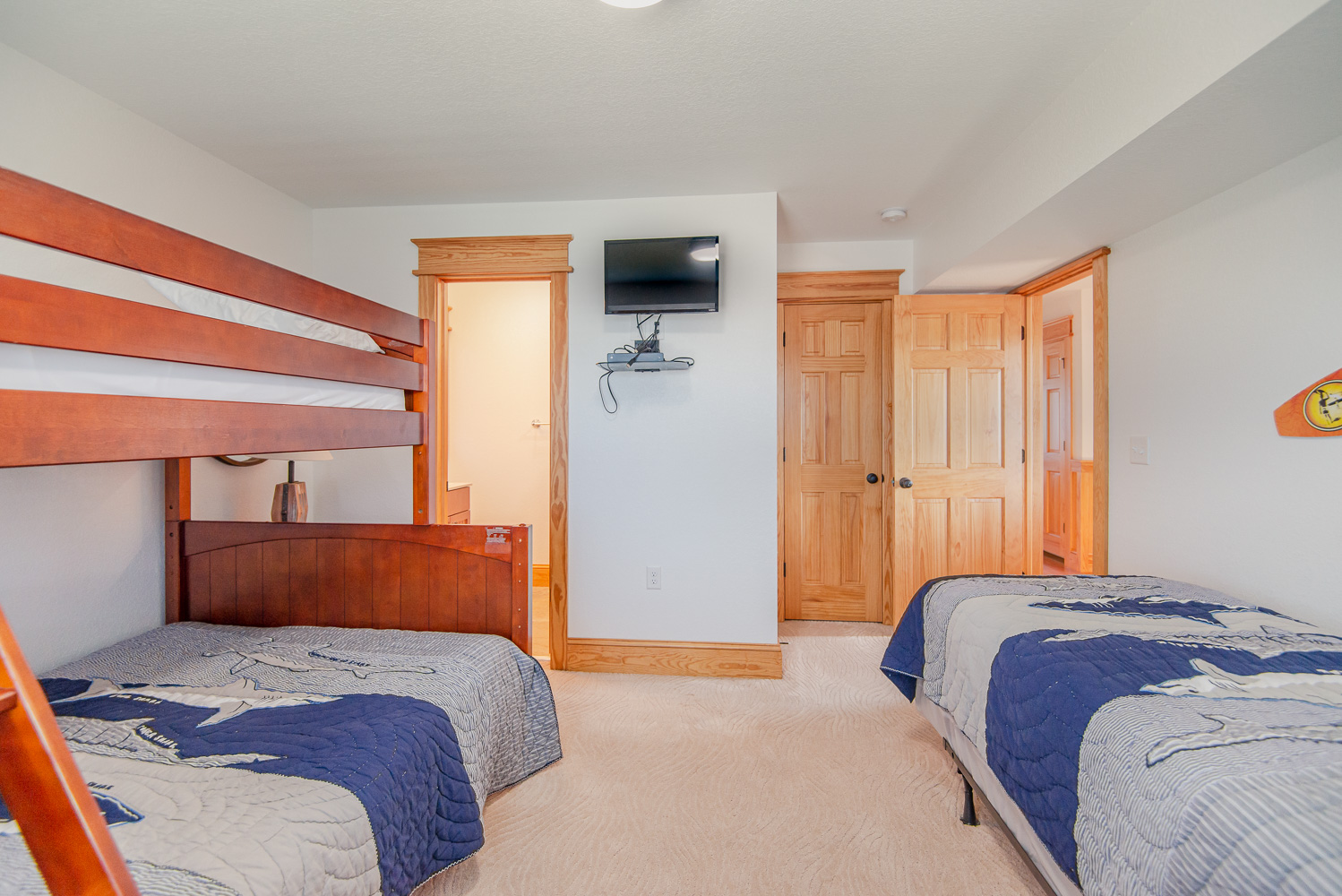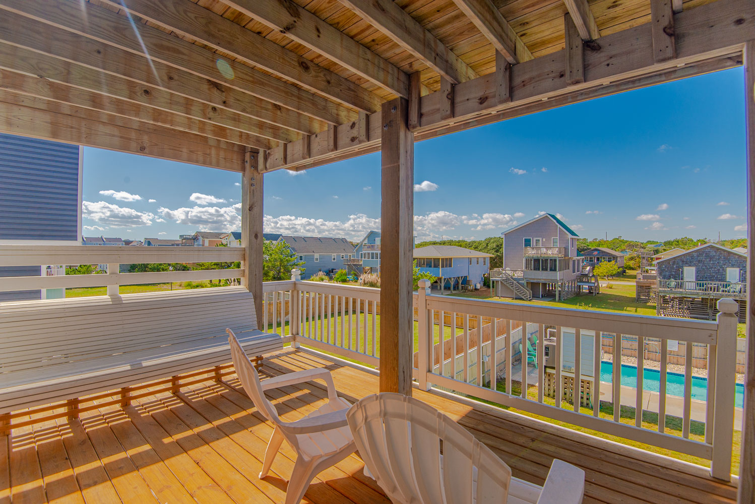 Mid Level: 4 Bedrooms (2 Private Suites w/King, TV, Full Bath, Private Suite w/2 Singles, TV, Full Bath, and Private Suite w/Duo Bunk, Single, TV, Blu Ray/ DVD and Full Bath), Front Covered Deck w/Ocean Views, and Back Covered Deck w/Built-In Bench Overlooking Pool Area.