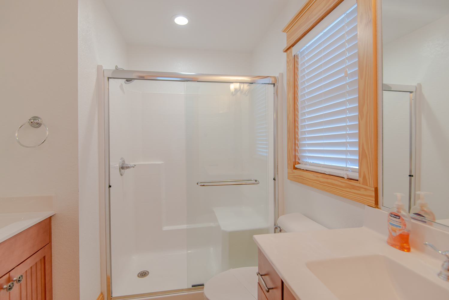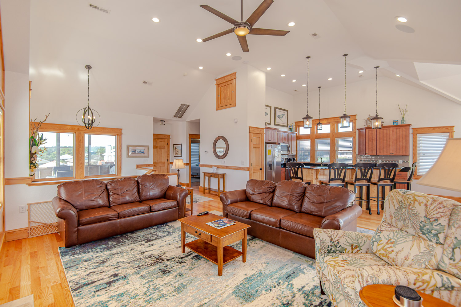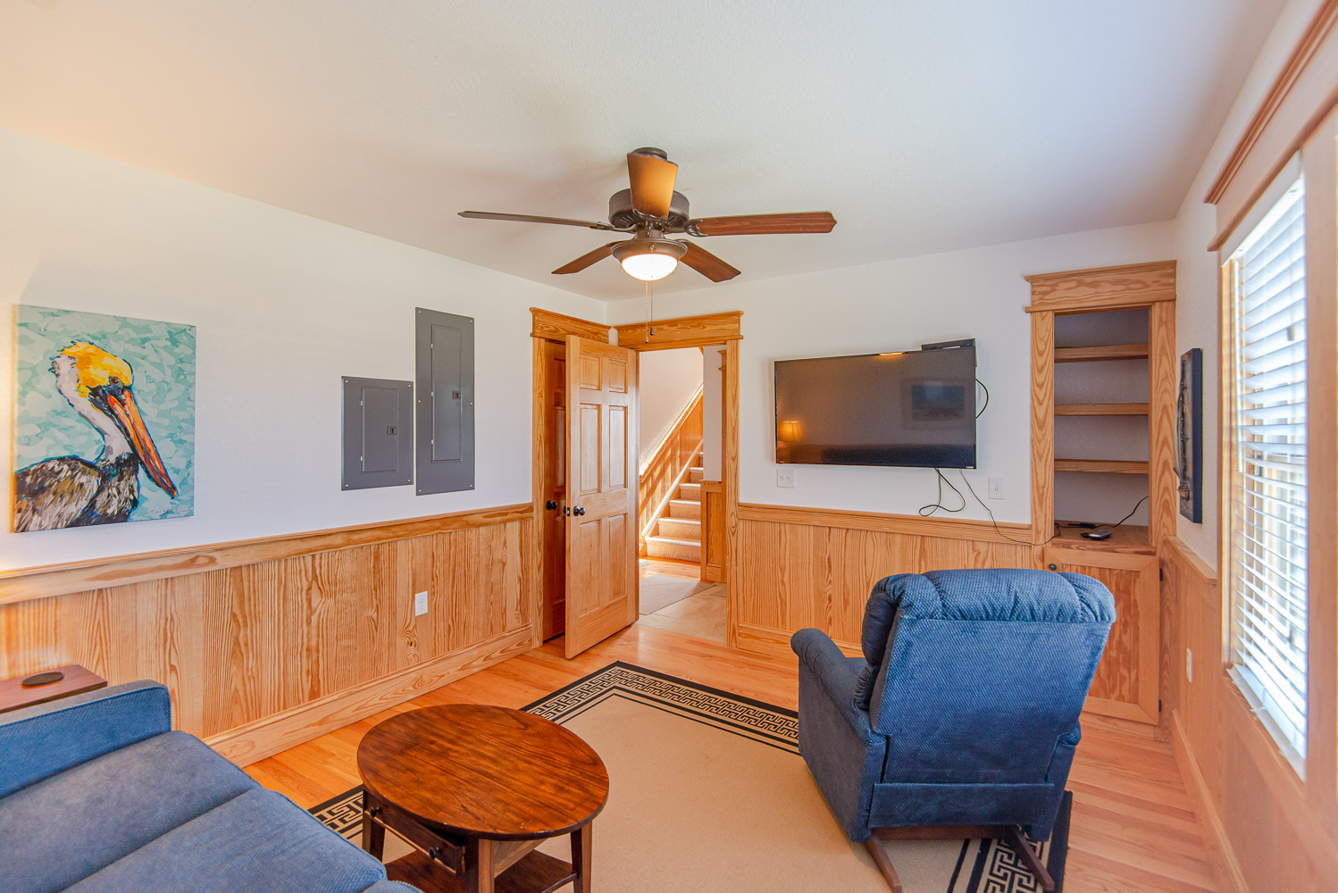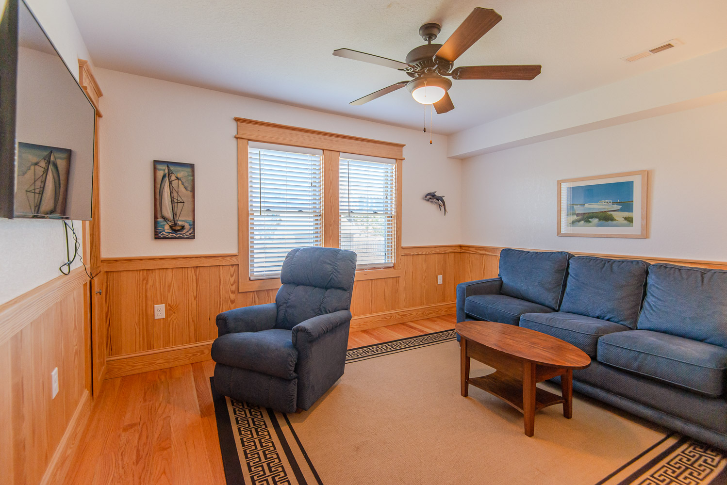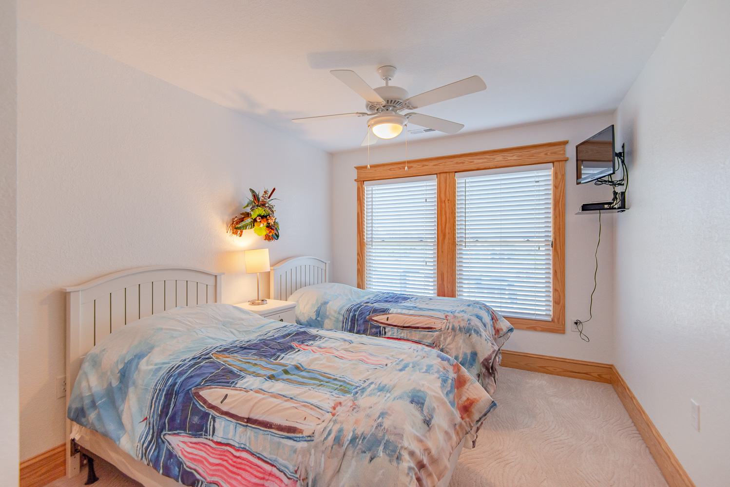 Mid Level: 4 Bedrooms (2 Private Suites w/King, TV, Full Bath, Private Suite w/2 Singles, TV, Full Bath, and Private Suite w/Duo Bunk, Single, TV, Blu Ray/ DVD and Full Bath), Front Covered Deck w/Ocean Views, and Back Covered Deck w/Built-In Bench Overlooking Pool Area.