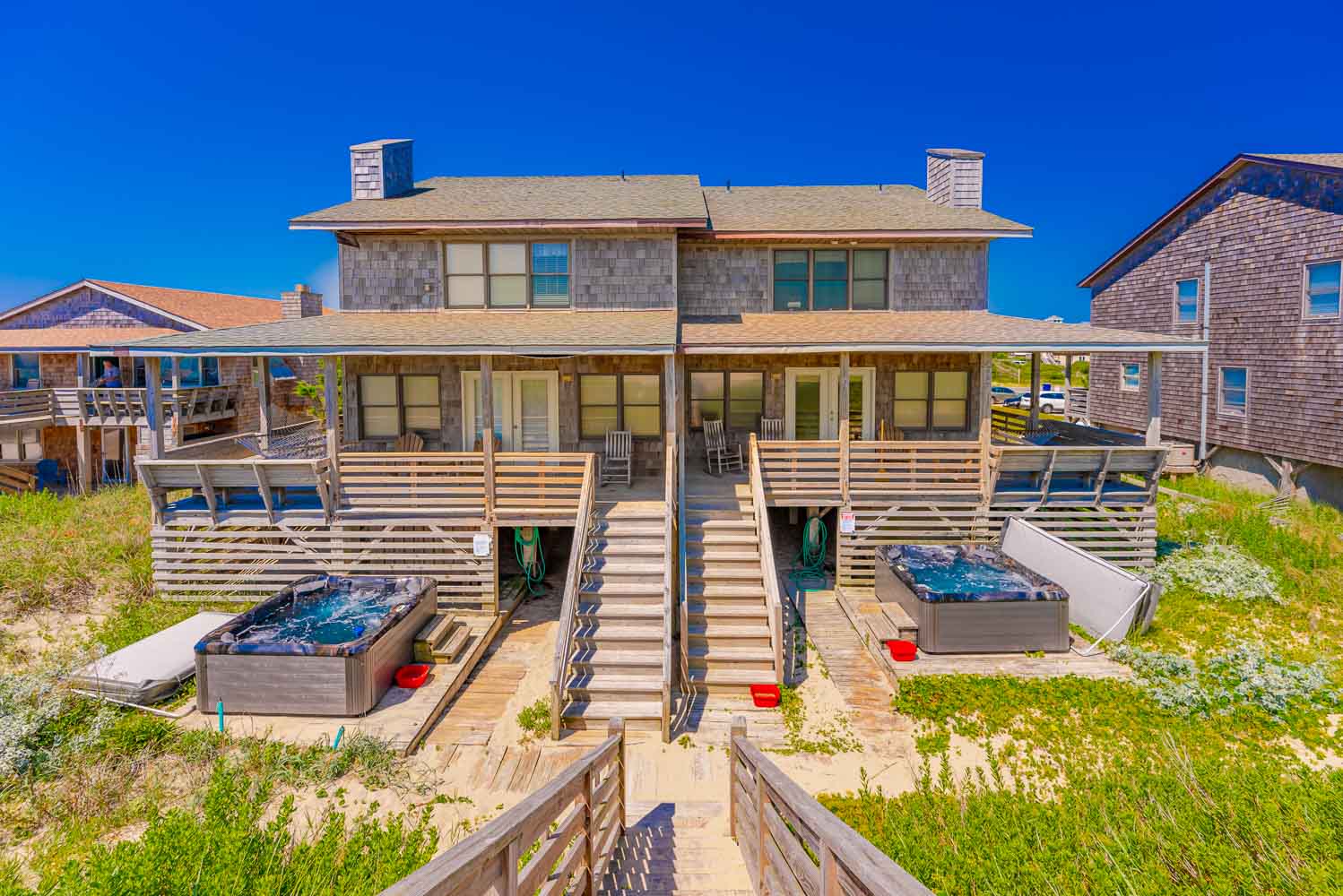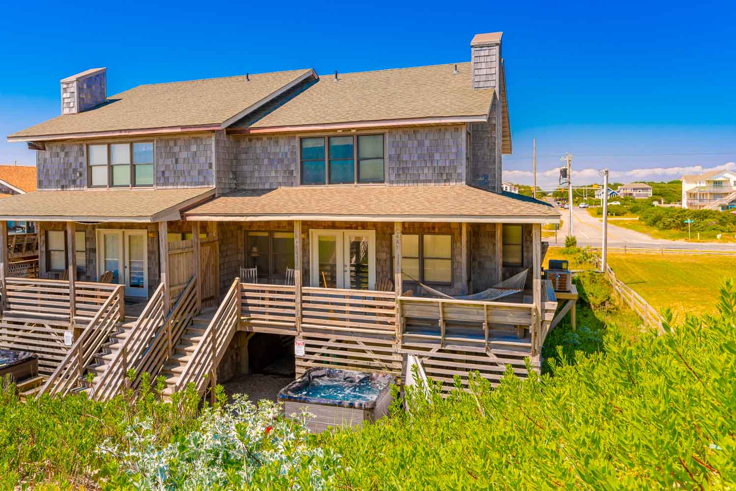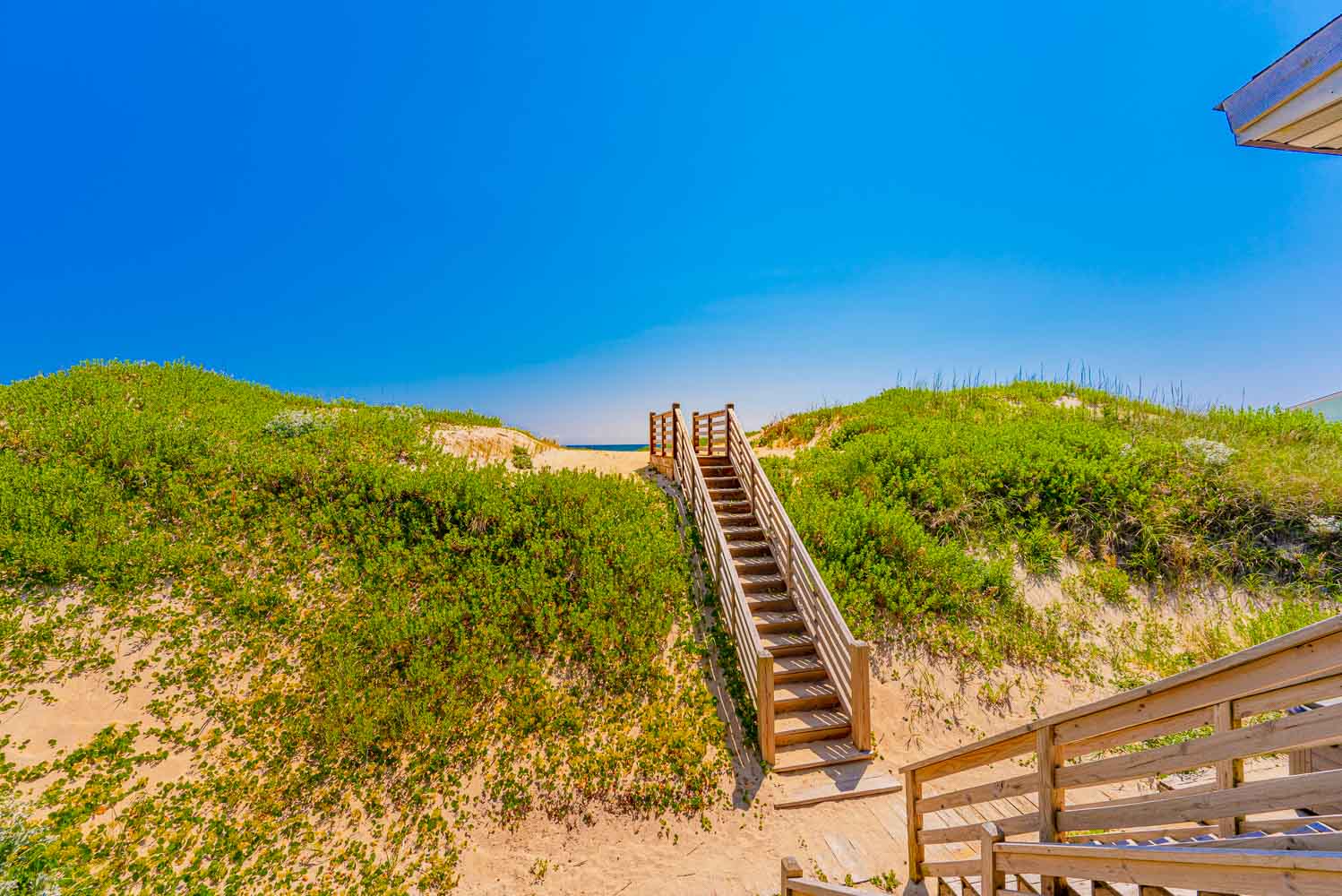 Ground Level: Parking for 3 Cars, Covered Entry, Enclosed Outside Shower, Hot Tub, Park Grill, & Steps to Dune w/Sand Path to Beach.