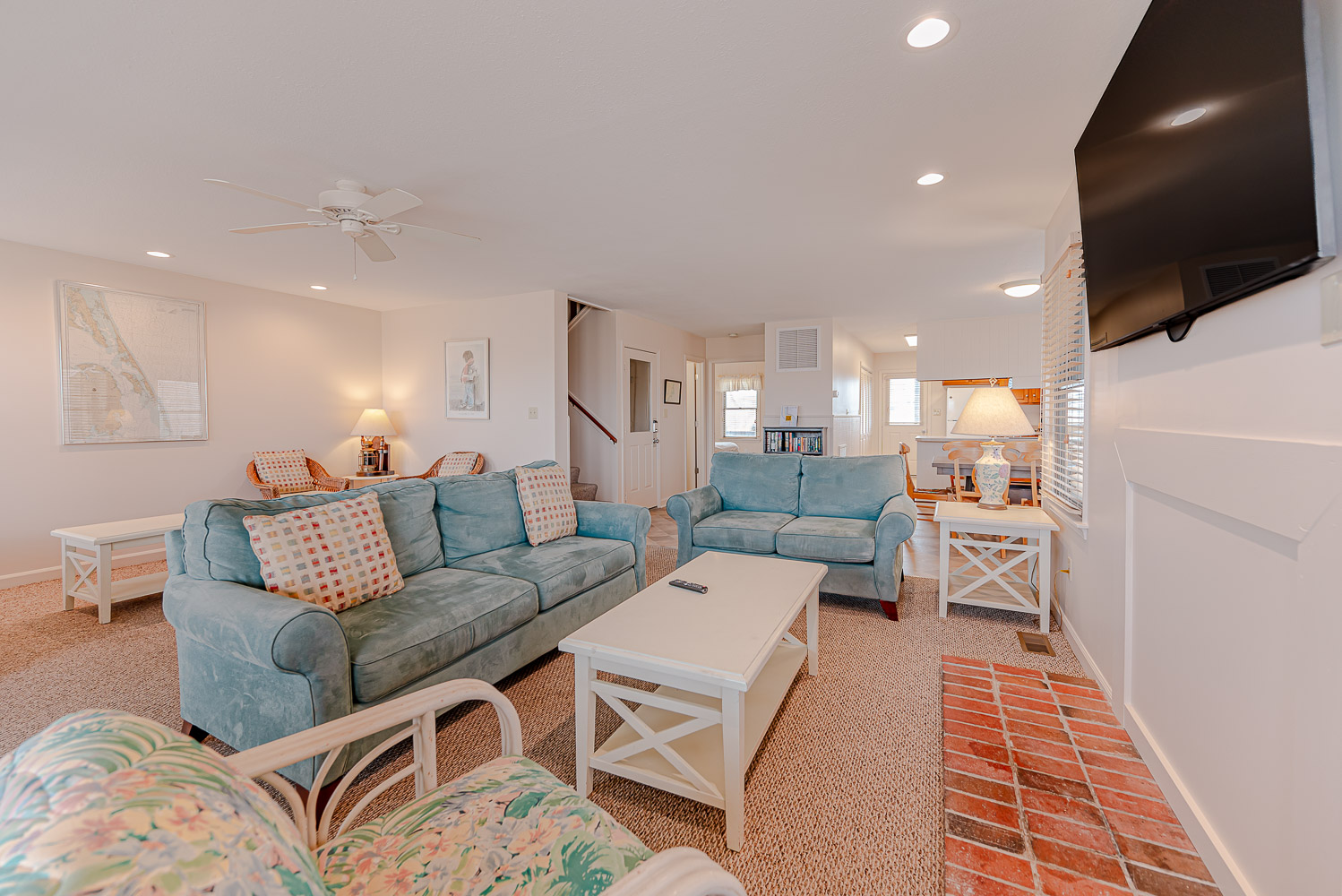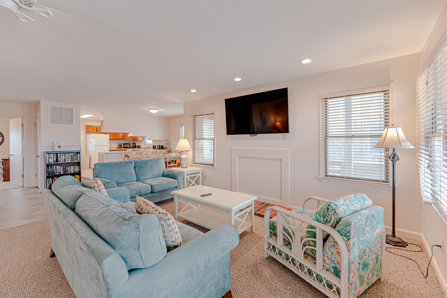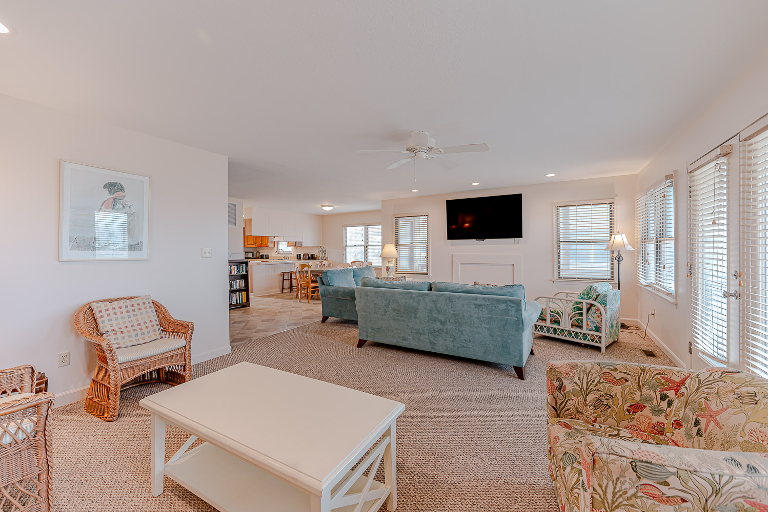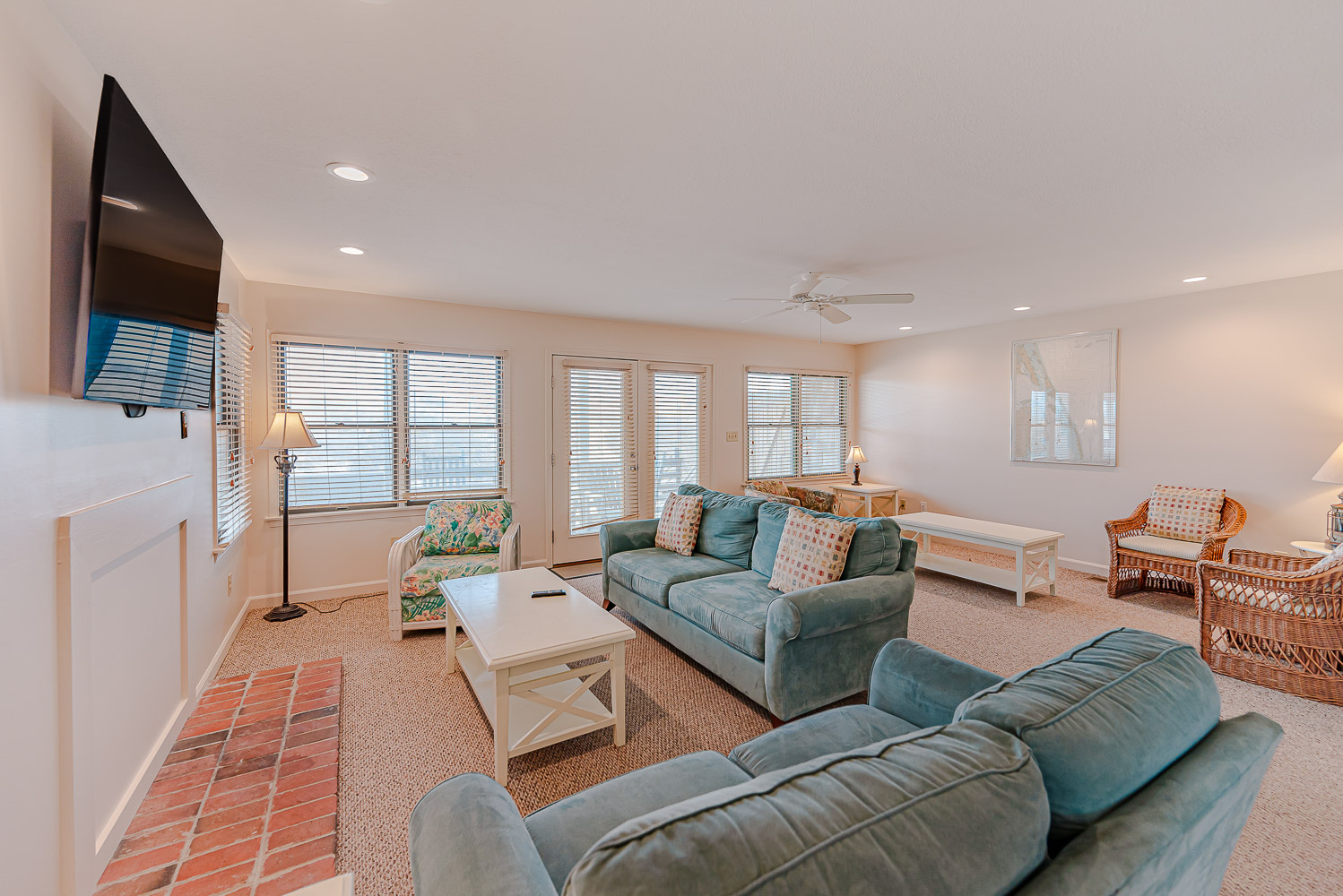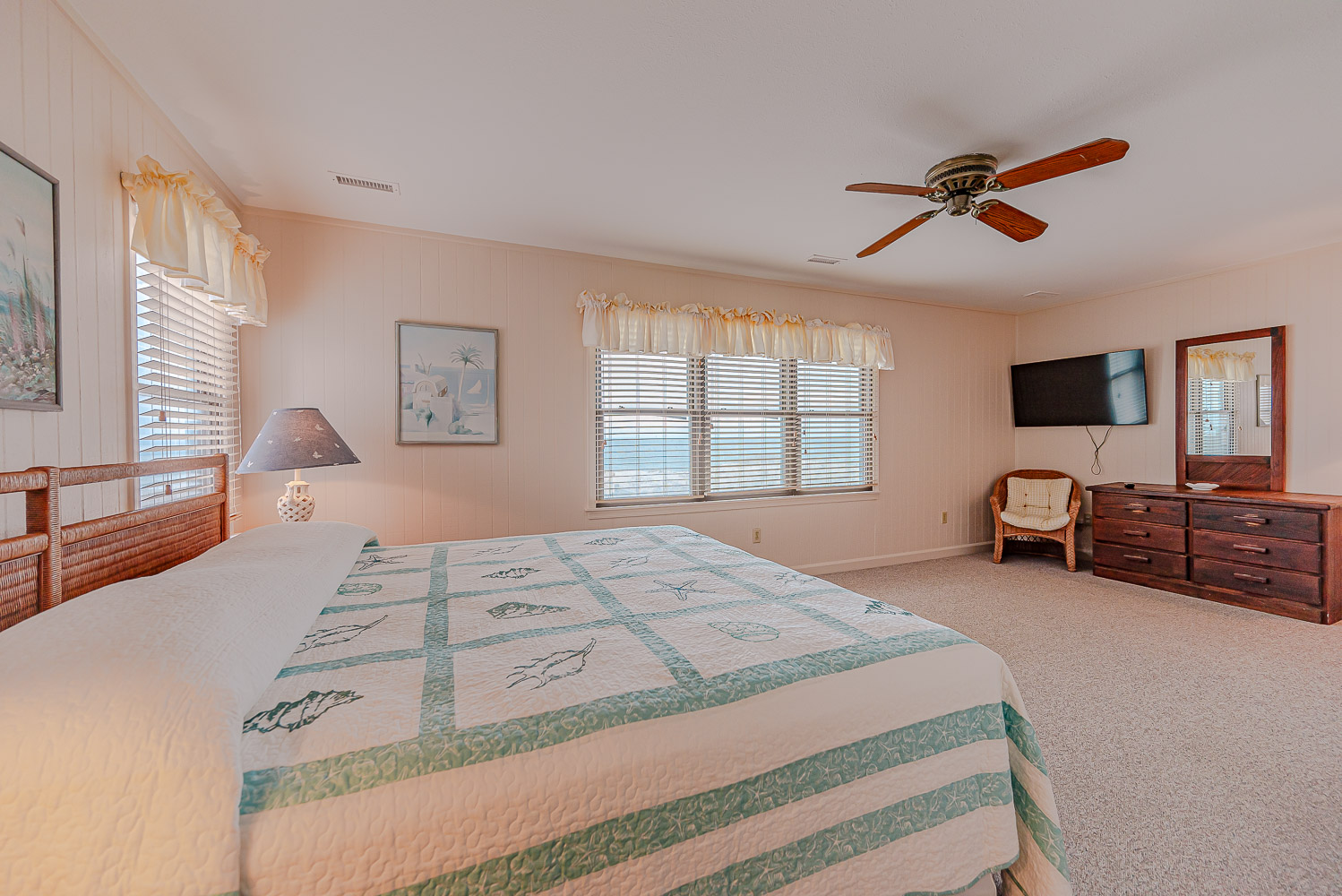 Top Level: 3 Bedrooms ( Private Oceanfront Suite w/King, TV, Ocean Views, & Full Bath w/Tub & Shower, 1 w/Queen & TV, 1 w/2 Bunk Sets) & Full Hall Bath.
