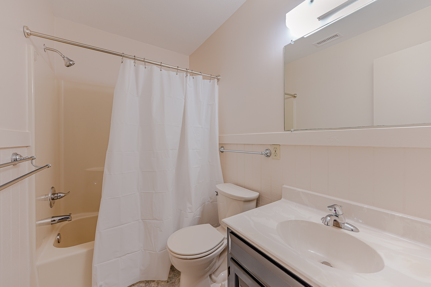 Mid Level: Living/Dining/Kitchen Area, Flat Screen TV, Bedroom w/Queen & TV, Laundry Area, Full Hall Bath w/Tub & Shower, Wrap Around Covered Porch w/Hammock, Rocking Chairs, Deck Furniture, & Steps to Ground Level.