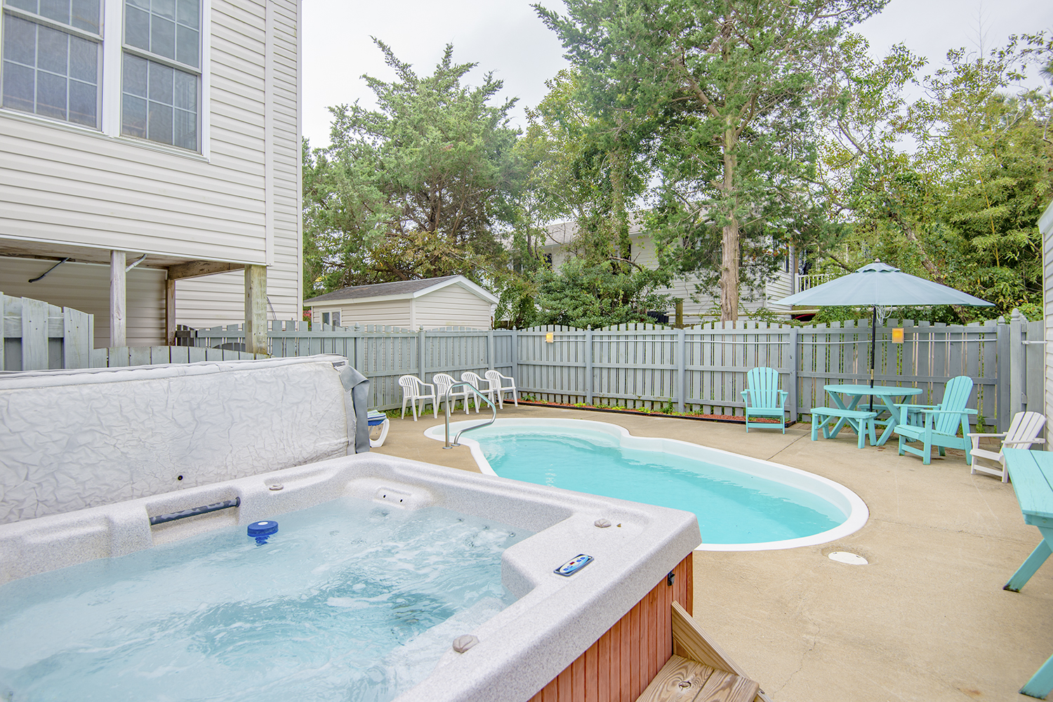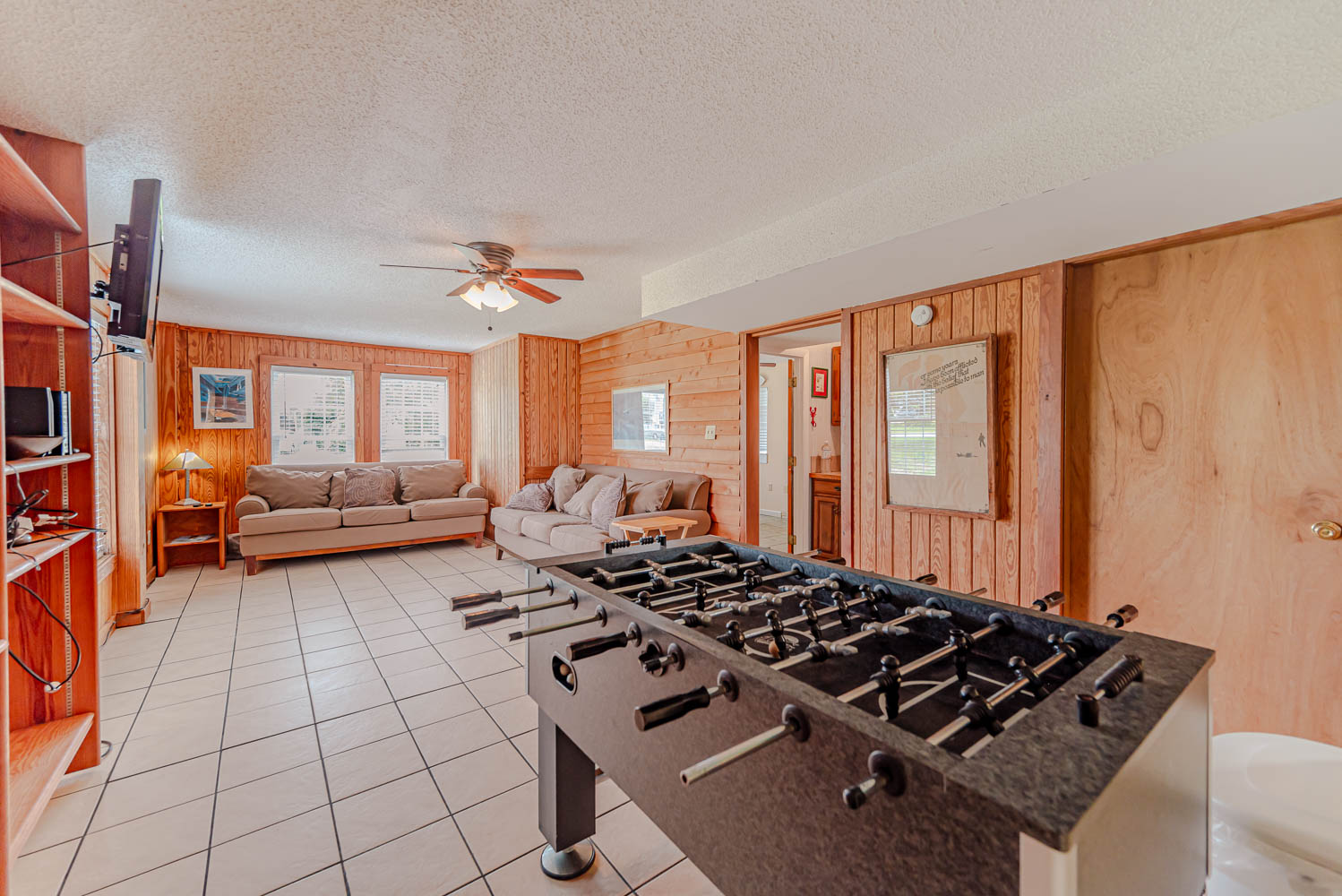 Ground Level: Parking for 4 Cars, Covered Entry, Rec. Room w/Foosball Table, Wet Bar w/Refrigerator, 32 Inch HDTV, Full Bath, Bedroom w/Queen, Laundry Area, & Access to Patio Area w/Outside Shower, Private Swimming Pool - Open Seasonally, Hot Tub, & Charcoal Grill.