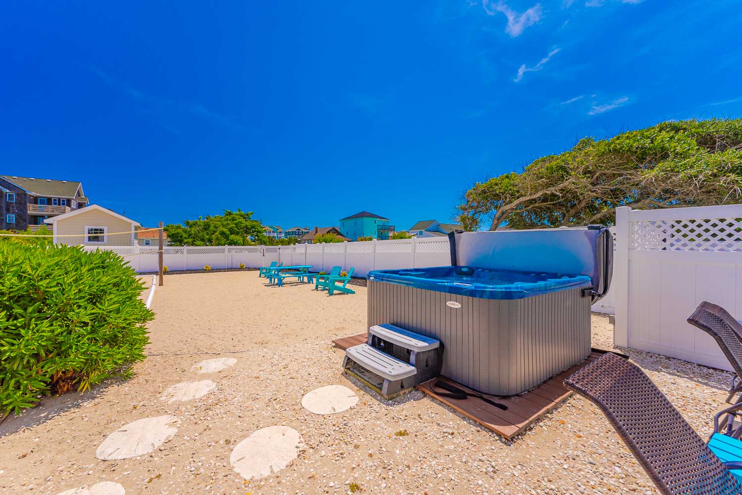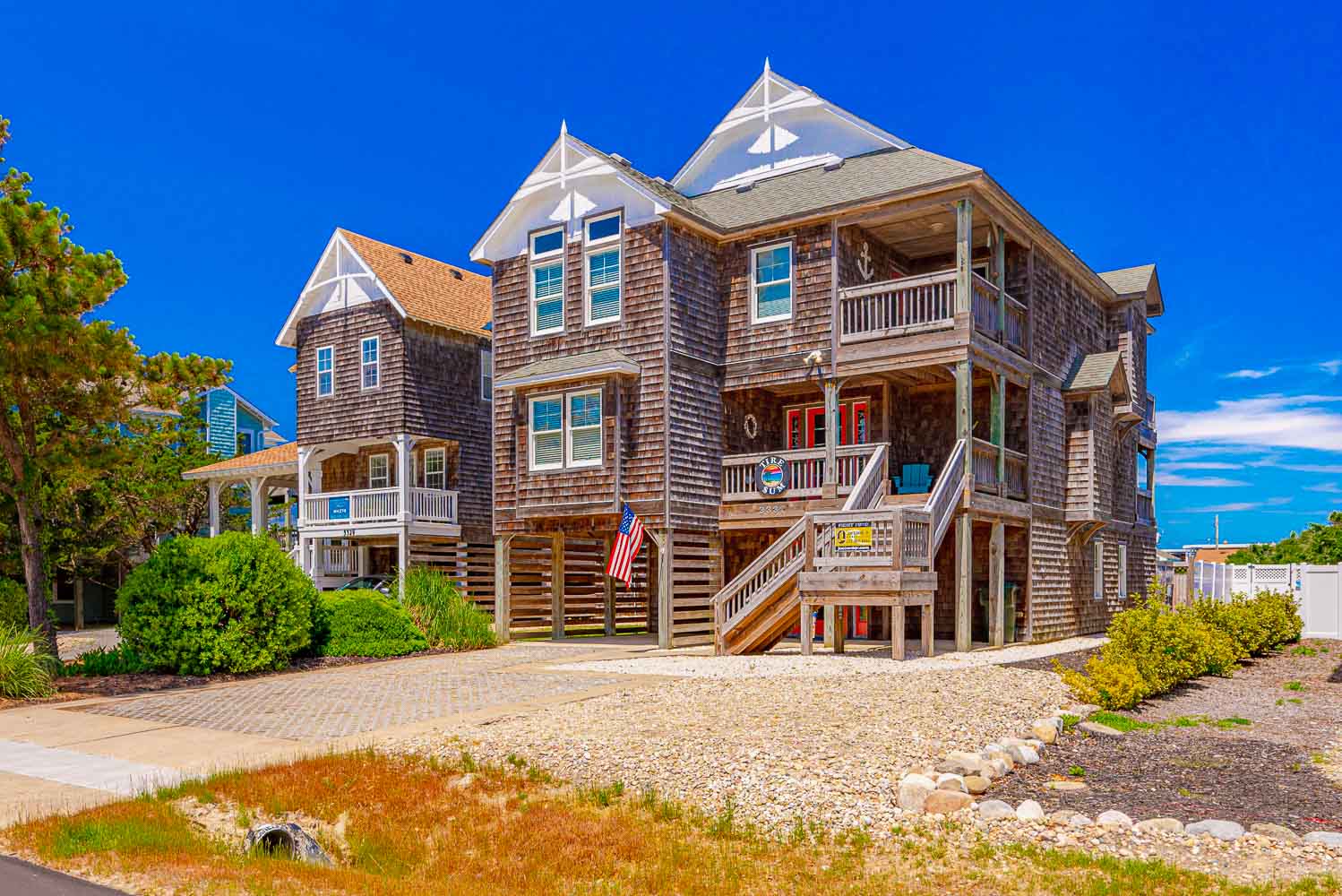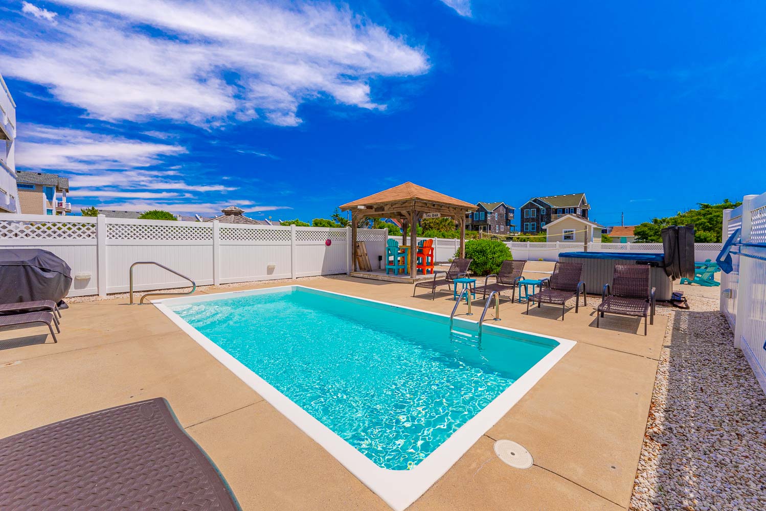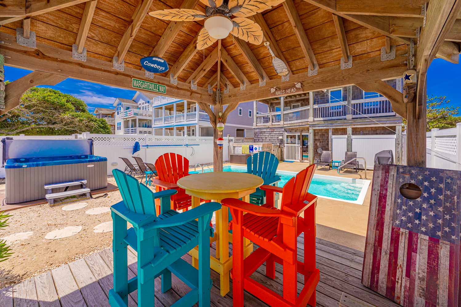 Ground Level: Parking for 7 Cars, Covered Entry, Elevator to All Levels, Large Rec. Room w/Pool Table, Foosball Table, Card Table, TV, Blu-Ray, Wet Bar w/Full Size Refrigerator, Microwave, Den/Media Room w/TV, Pullout Couch, DVD, Surround Sound, Full Hall Bath w/Shower Only, Laundry Area, and Access to the Fabulous Expansive Backyard, Enclosed Outside Shower, Private Heated Swimming Pool - Open Seasonally. (Can be Heated for $200.00 Per Week, Plus Tax. Please Bear in Mind That Pool Temperature is Subject to Outside Temperatures and Conditions), Hot Tub, Gazebo/Tiki Bar, Gas Grill, Volleyball Court, Corn Hole Boards (stored in Laundry Area), Picnic Table, and Outdoor Furnishings.
