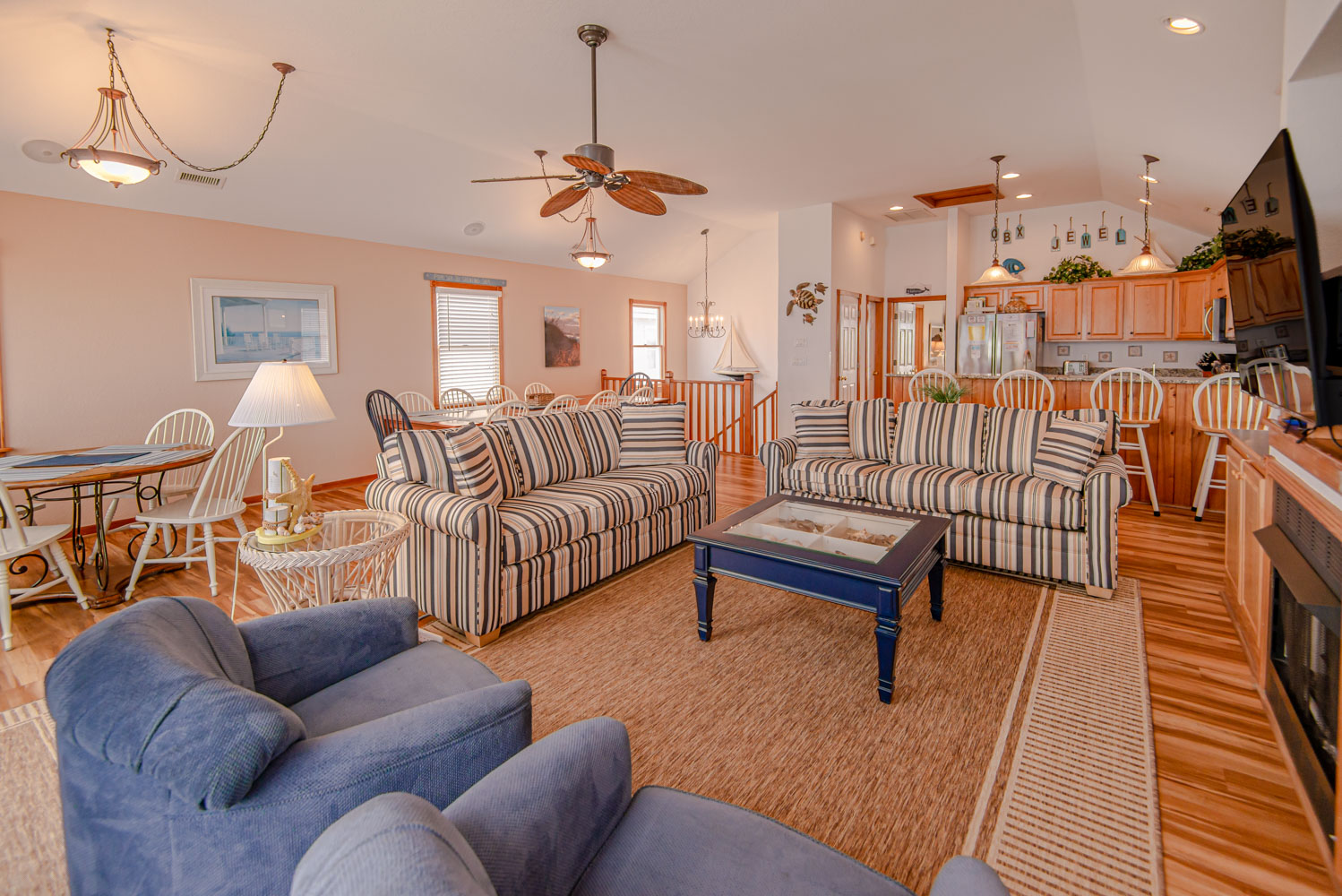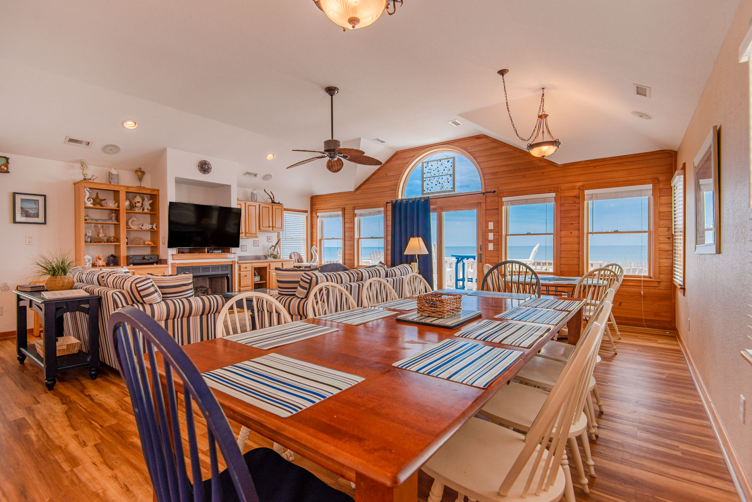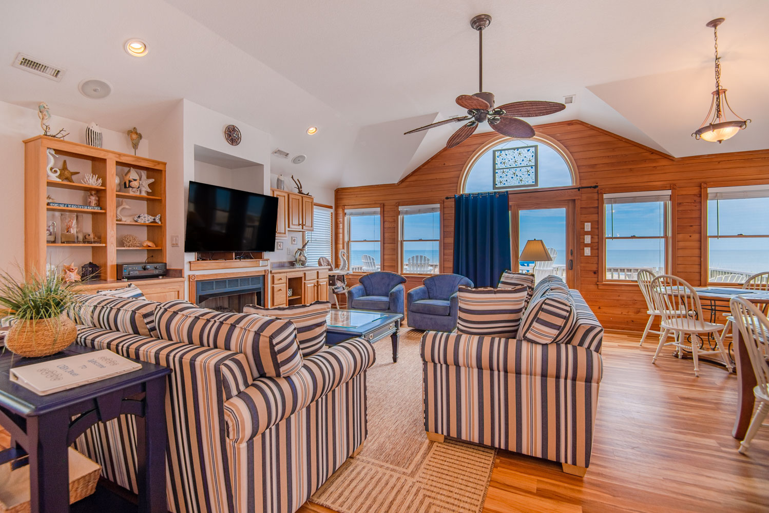 Top Level: Living Room, 58 Inch 4K Smart HDTV, Wet Bar, Dining Tables w/12 Chairs, Kitchen, Granite Counter Tops, Counter Seats for 4, 2 Dishwashers, Refrigerator w/Ice Maker, Half Bath, Private Suite w/King, Flat Screen HDTV, Full Bath w/Shower, West Facing Sun Deck, and Oceanfront Sun Deck w/Deck Furniture and Outstanding Ocean Views.