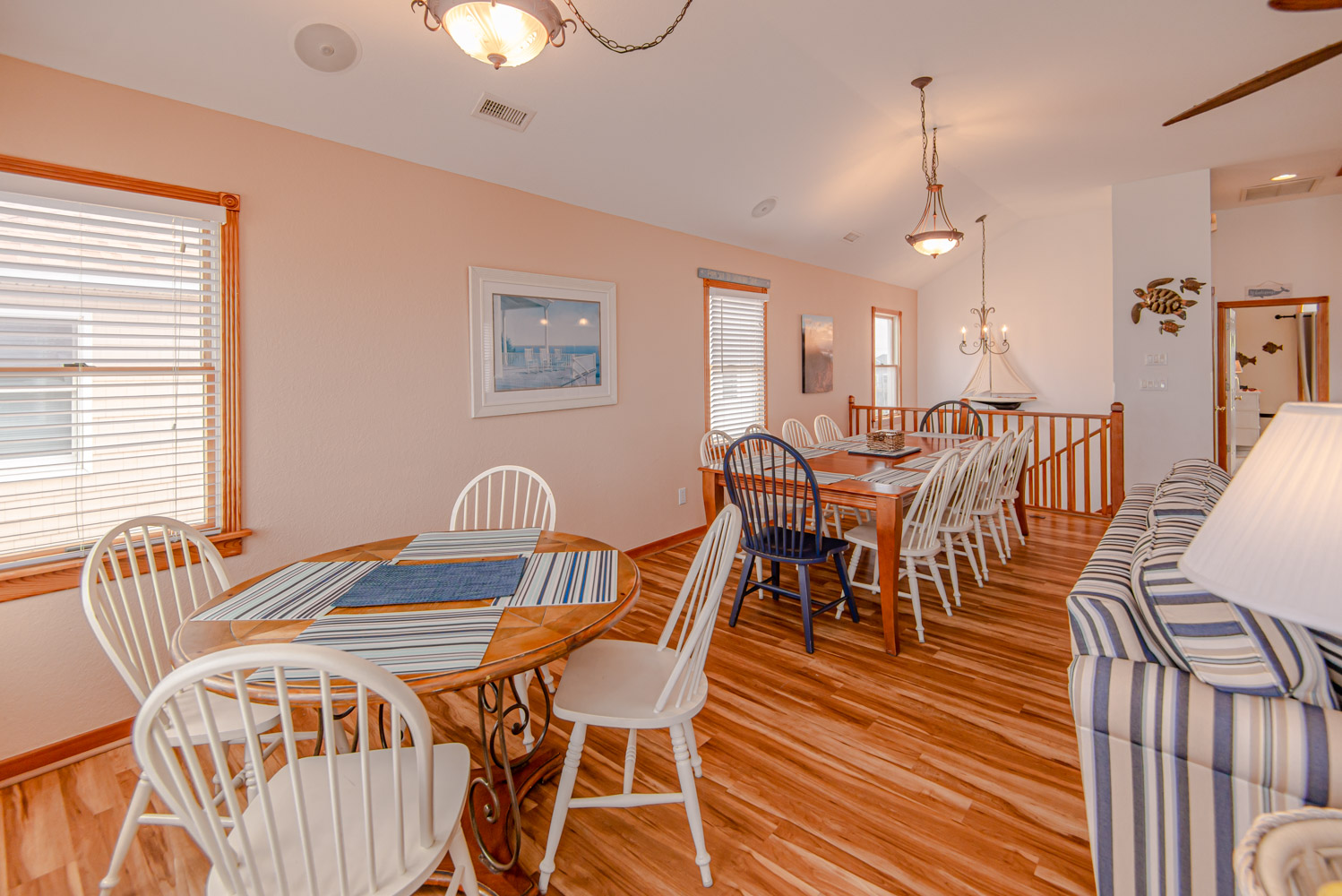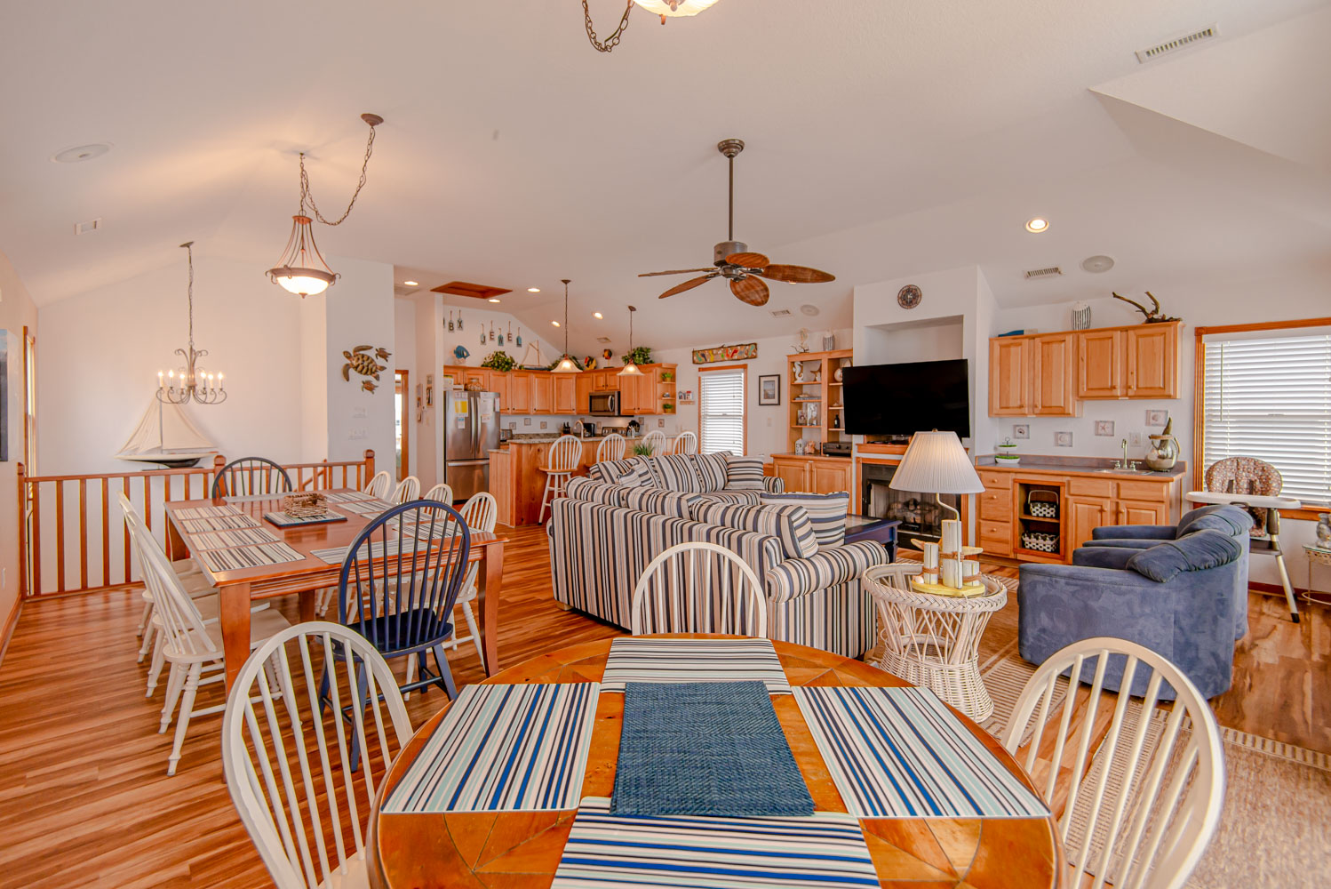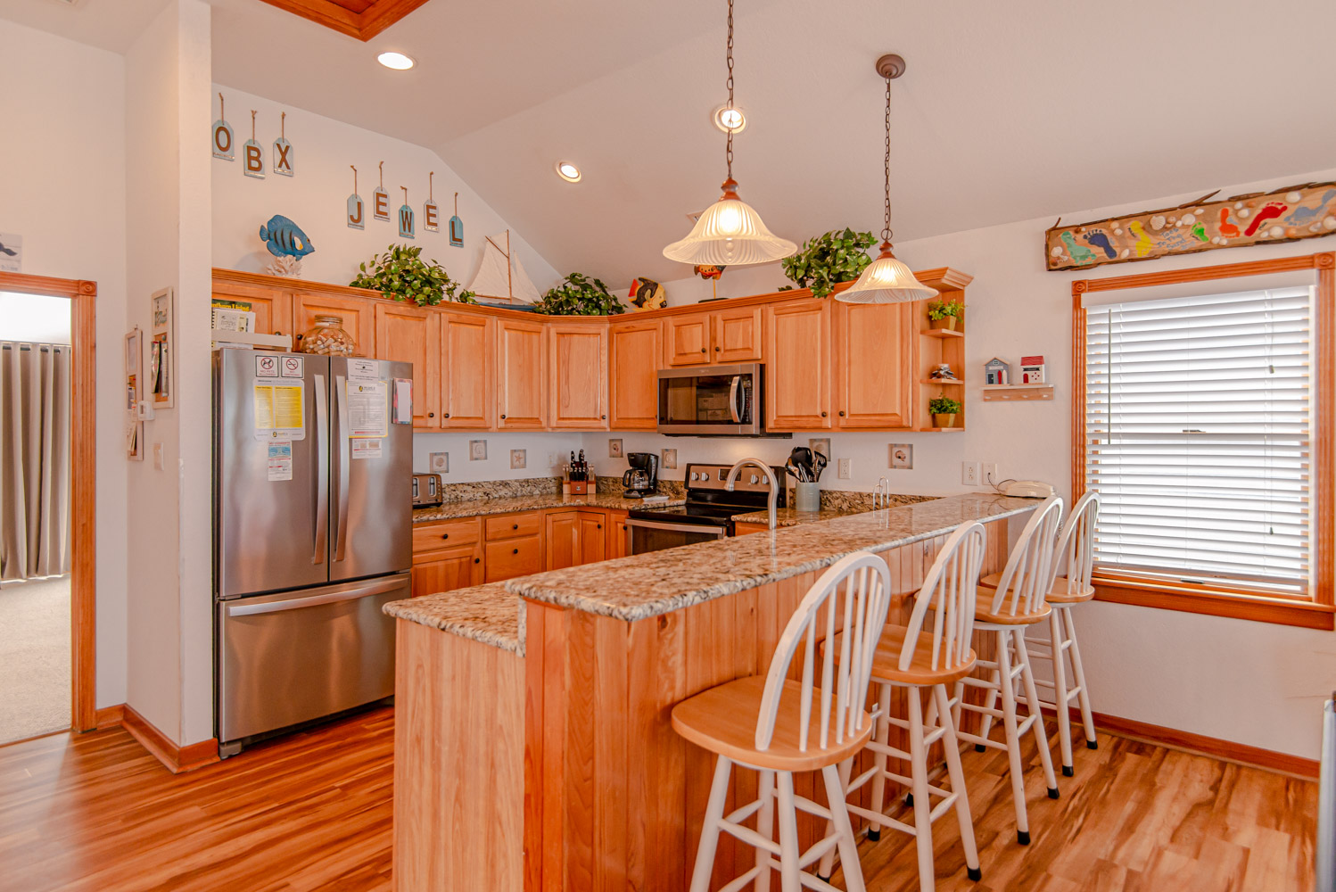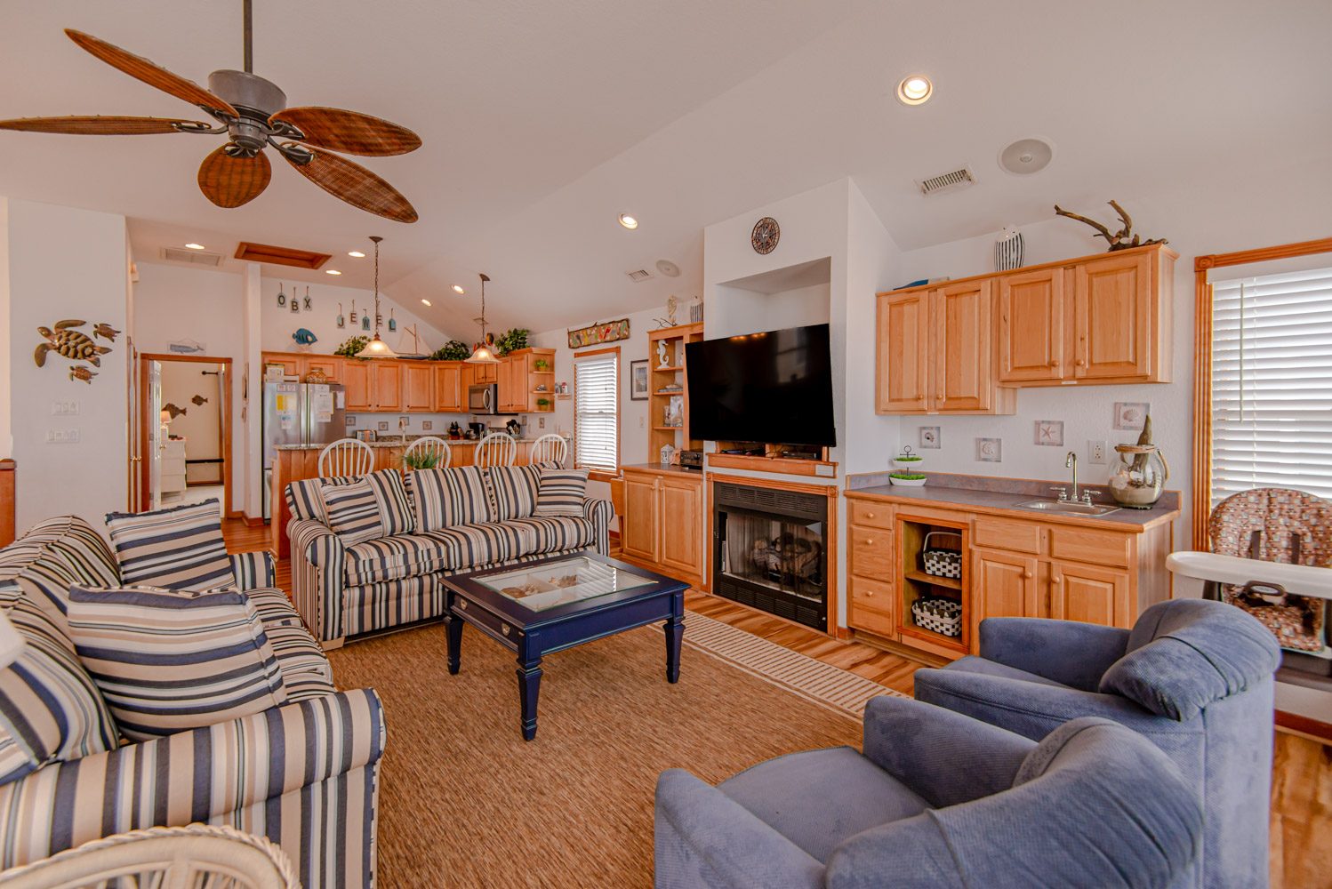 Top Level: Living Room, 58 Inch 4K Smart HDTV, Wet Bar, Dining Tables w/12 Chairs, Kitchen, Granite Counter Tops, Counter Seats for 4, 2 Dishwashers, Refrigerator w/Ice Maker, Half Bath, Private Suite w/King, Flat Screen HDTV, Full Bath w/Shower, West Facing Sun Deck, and Oceanfront Sun Deck w/Deck Furniture and Outstanding Ocean Views.