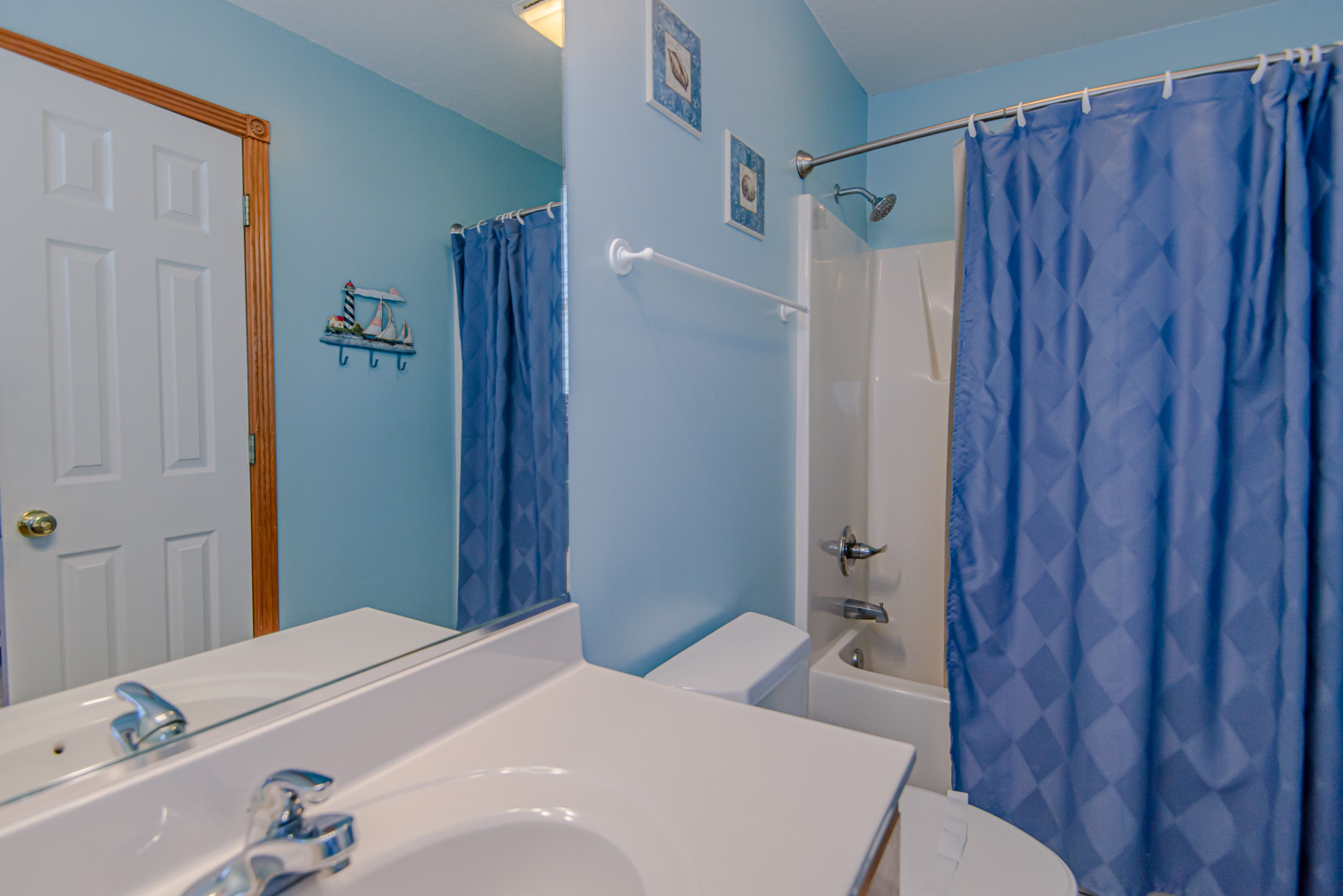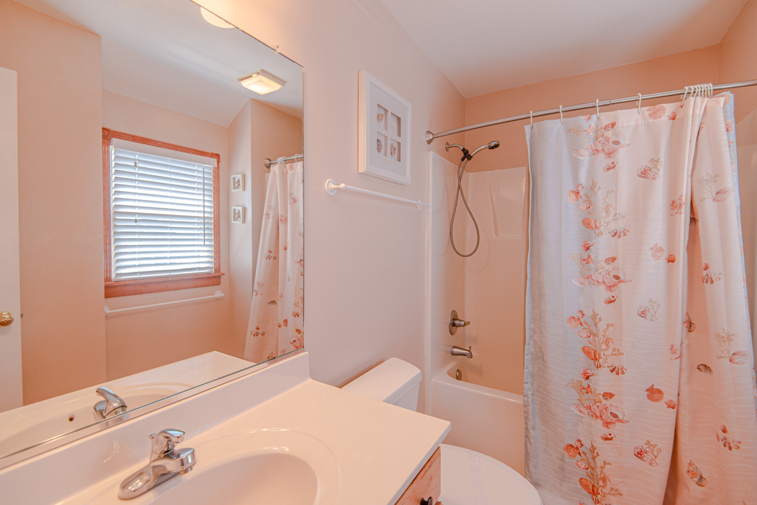 Mid Level: 4 Bedrooms (2 Private Suites w/Kings, Smart TVs, Full Baths w/Tub/Shower, Private Suite w/Queen, Smart TV, Full Bath w/Tub/Shower, 1 w/Duo Bunk, TV), Full Hall Bath w/Tub/Shower, Laundry Area, Oceanfront Covered Deck w/7 Person Hot Tub, and West Facing Covered Deck.