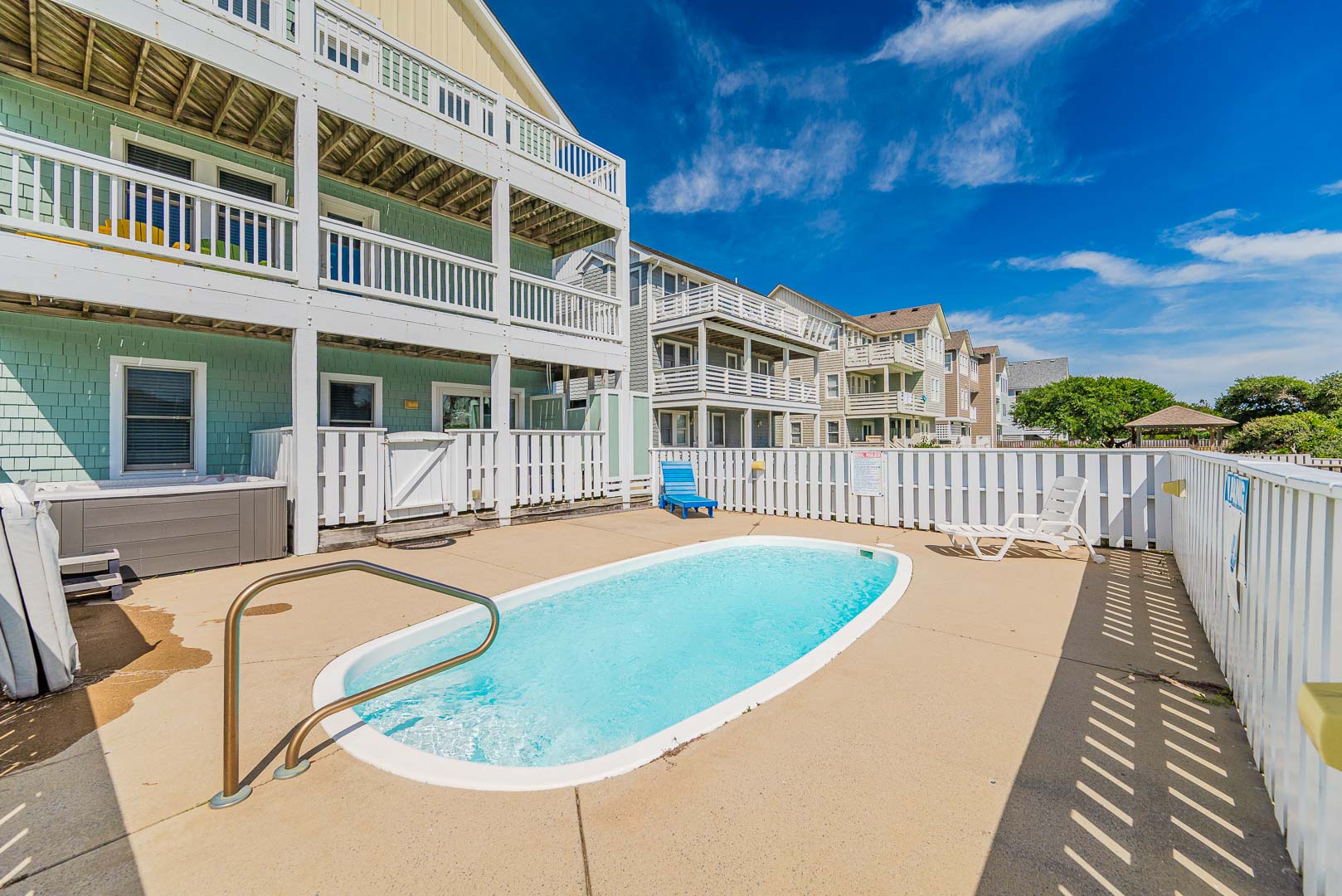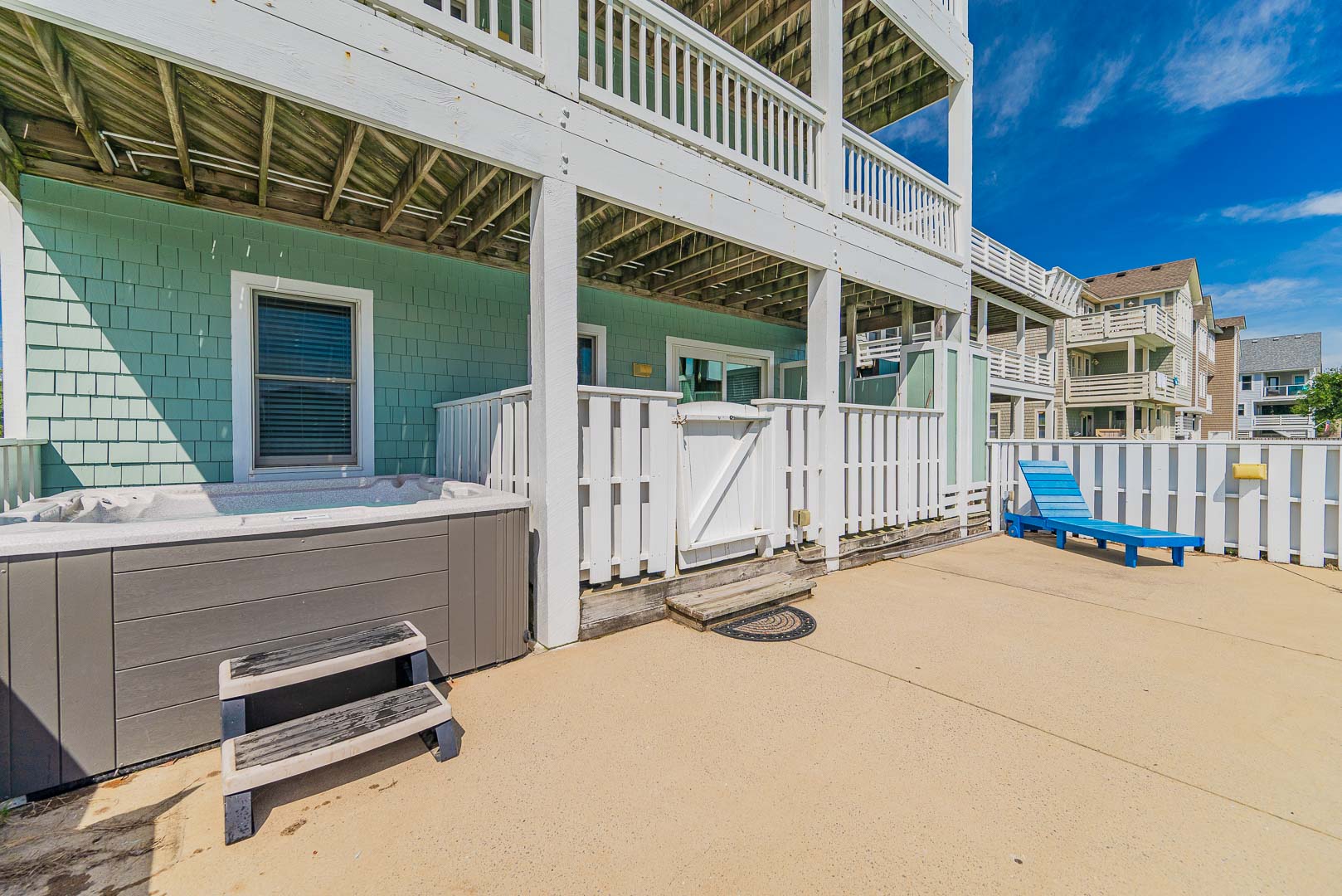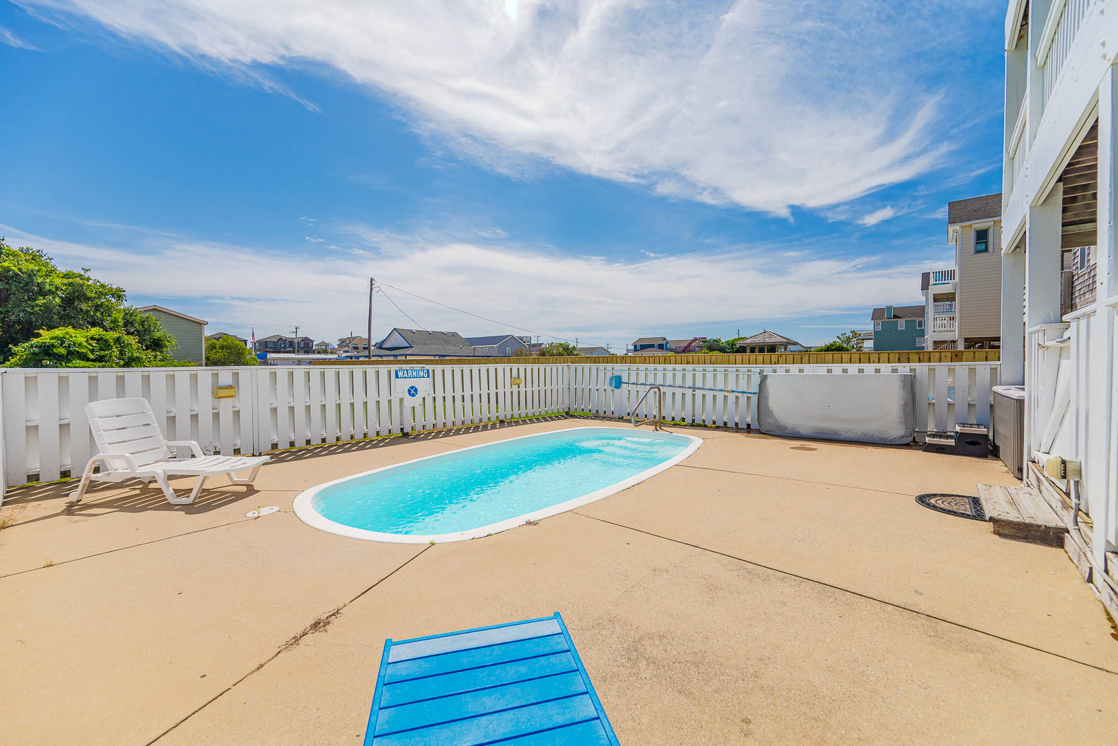 Ground Level: Parking for 4 Cars, Covered Entry, Rec. Room w/Foosball, Wet Bar w/Full Size Refrigerator, Private Suite w/2 Singles, TV, Full Bath w/Shower, Laundry Area, and Access Patio Area w/Hot Tub, Private 10x20 Swimming Pool, Charcoal Grill, and Enclosed Outside Shower.