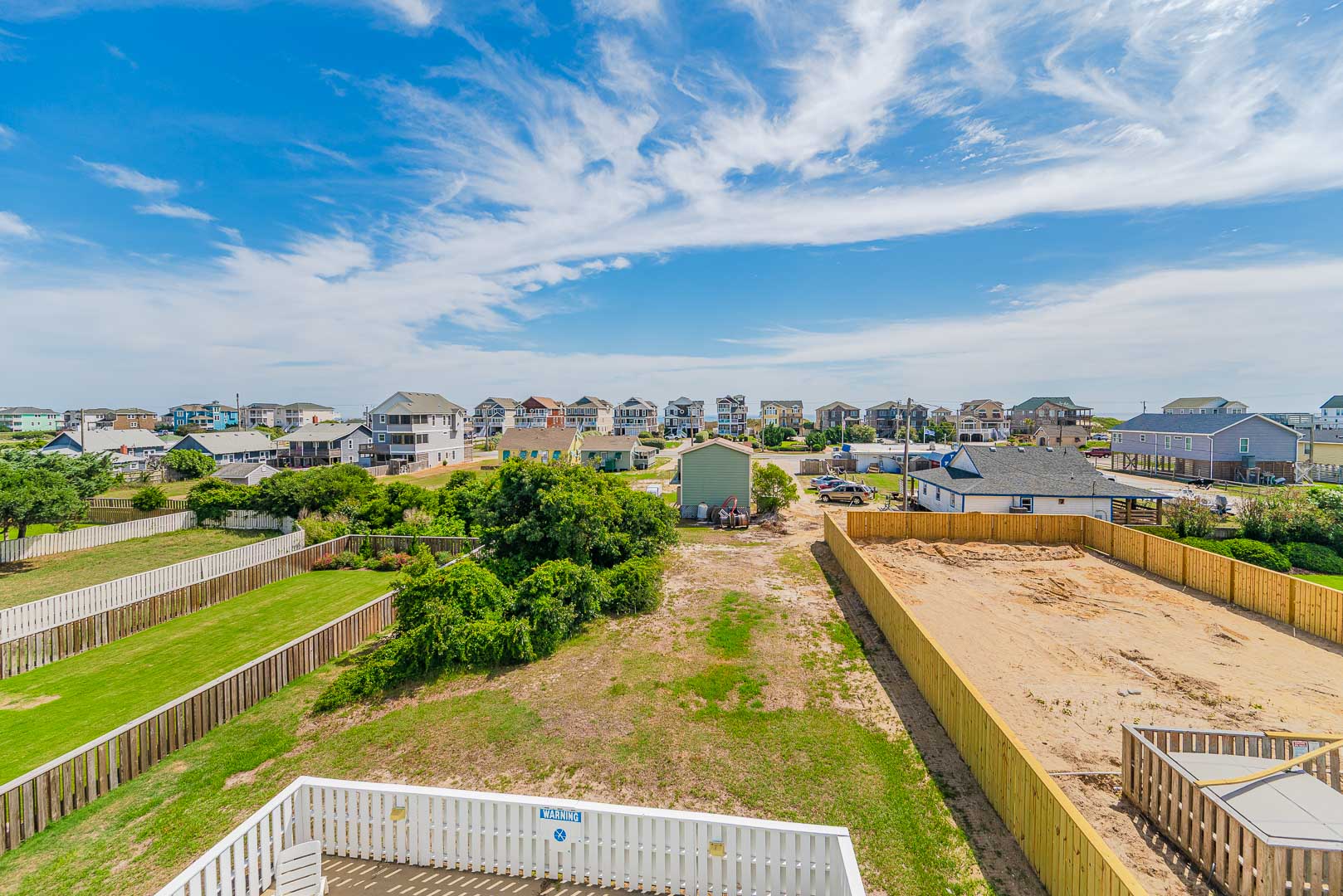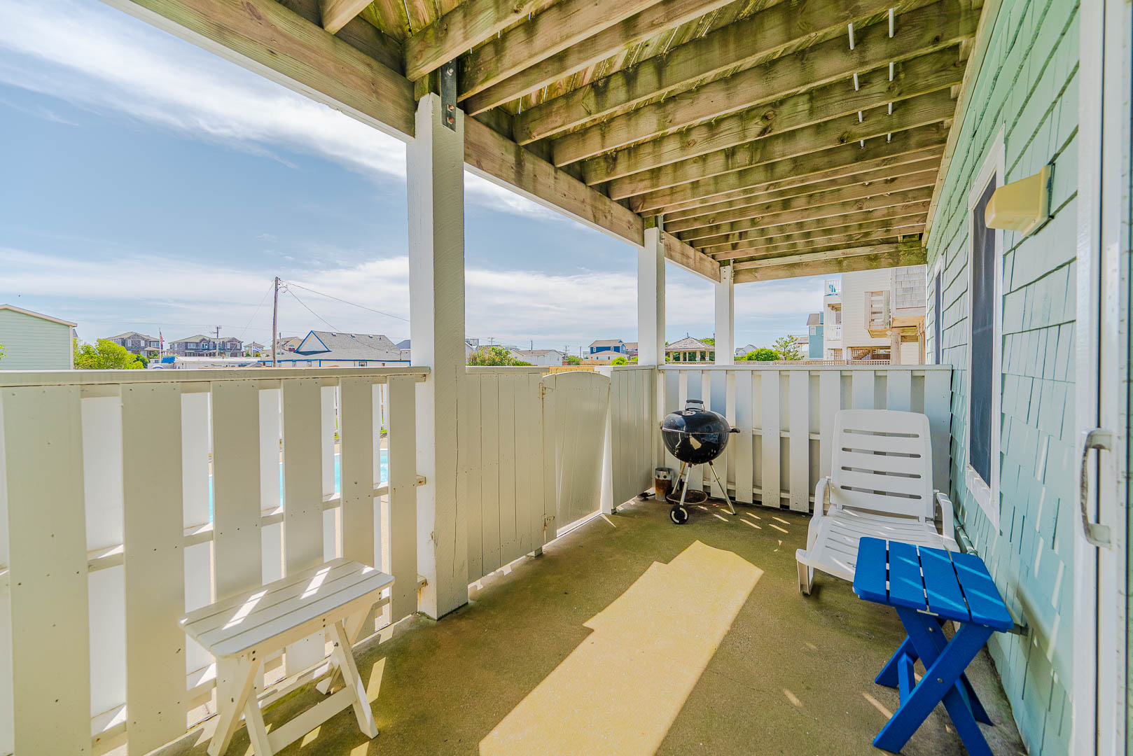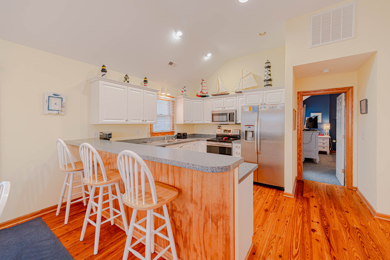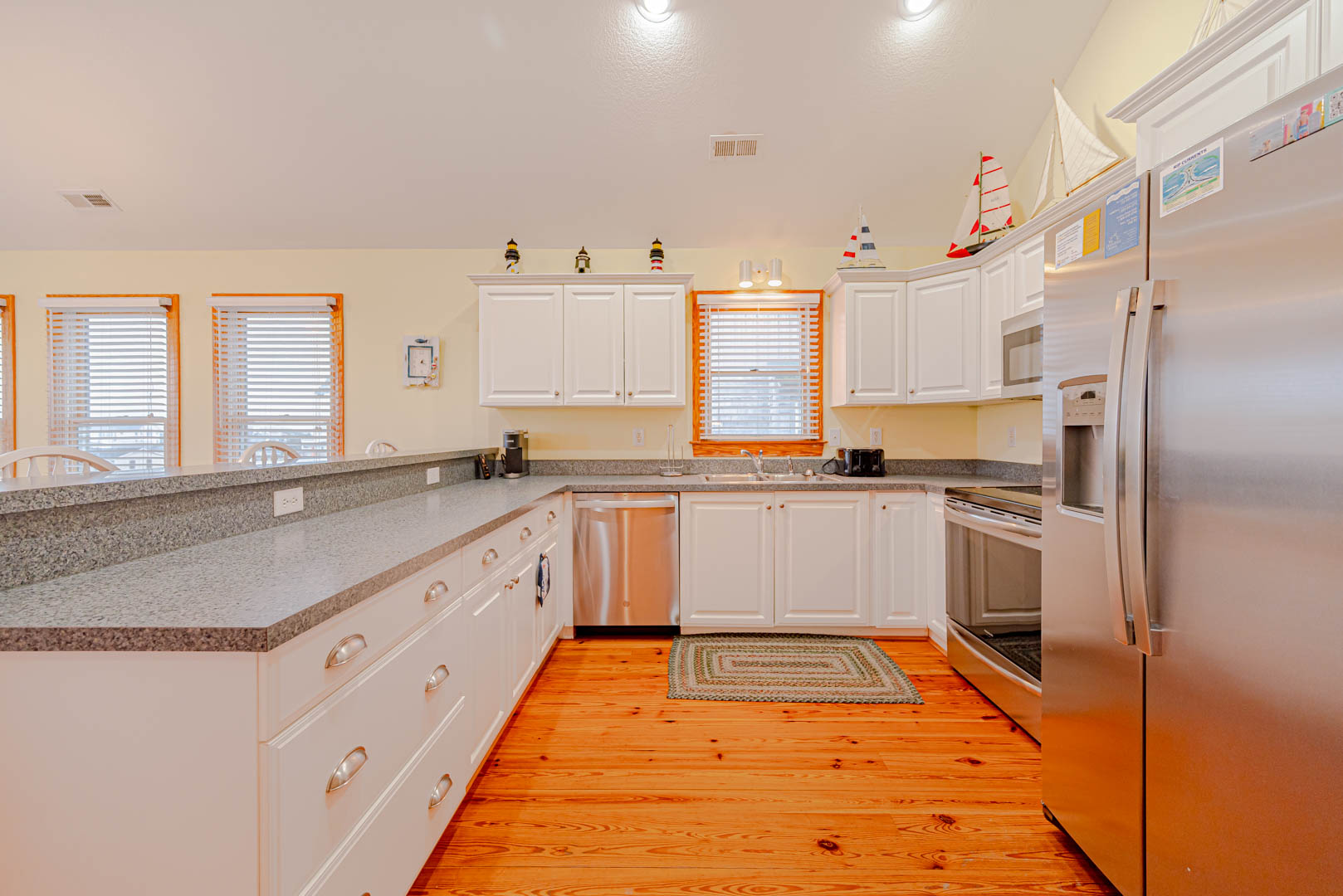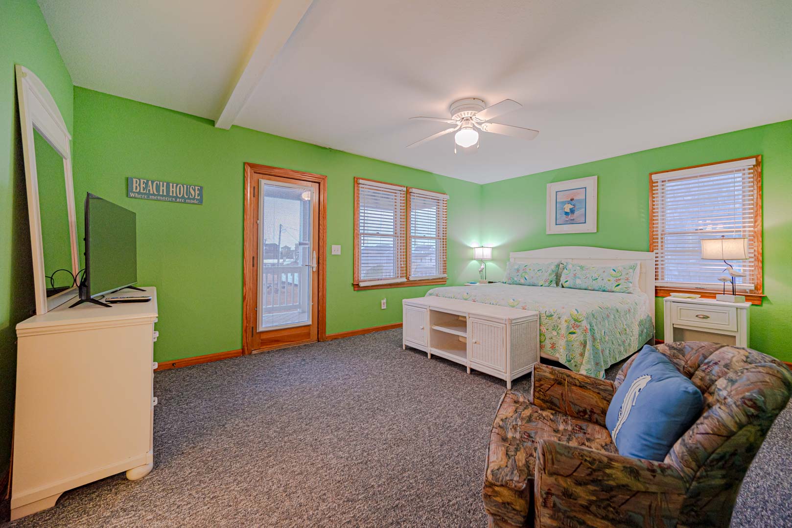 Top Level: Spacious Living Area, TV; Dining Area w/Seating for Ten (10); Fully Equipped Kitchen, Breakfast Bar; Ocean Views, Access to Sun Deck, Half Bath, and Private Suite w/King, TV, Full Bath.
