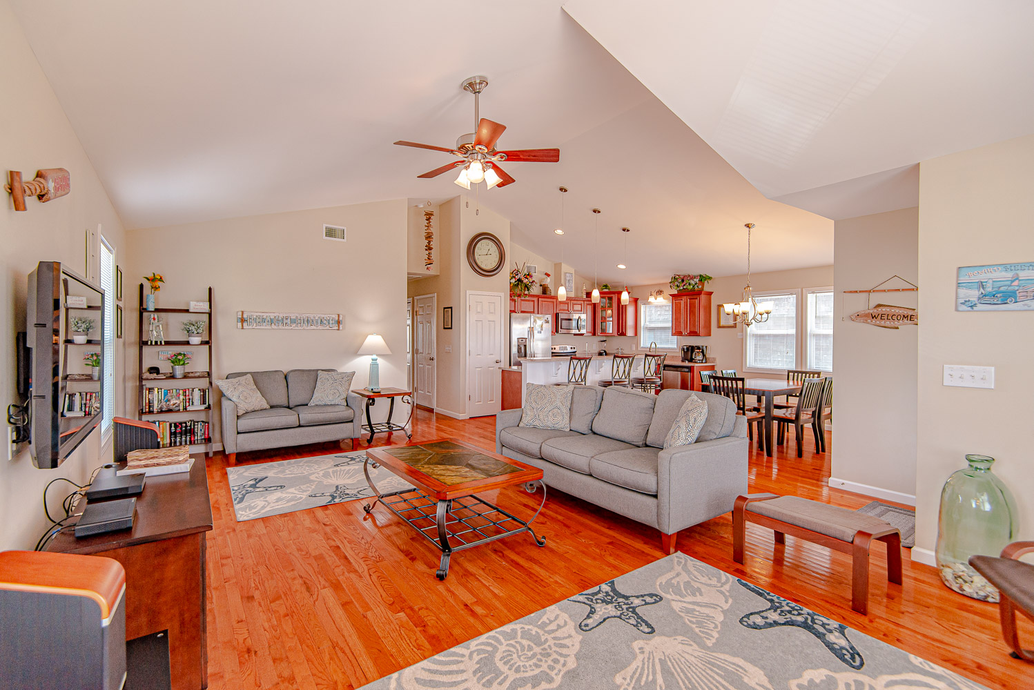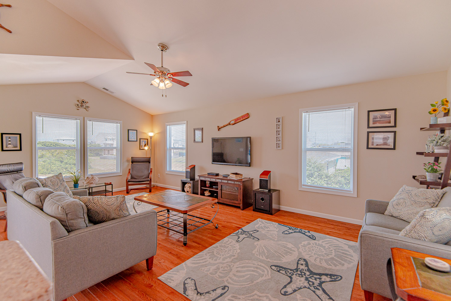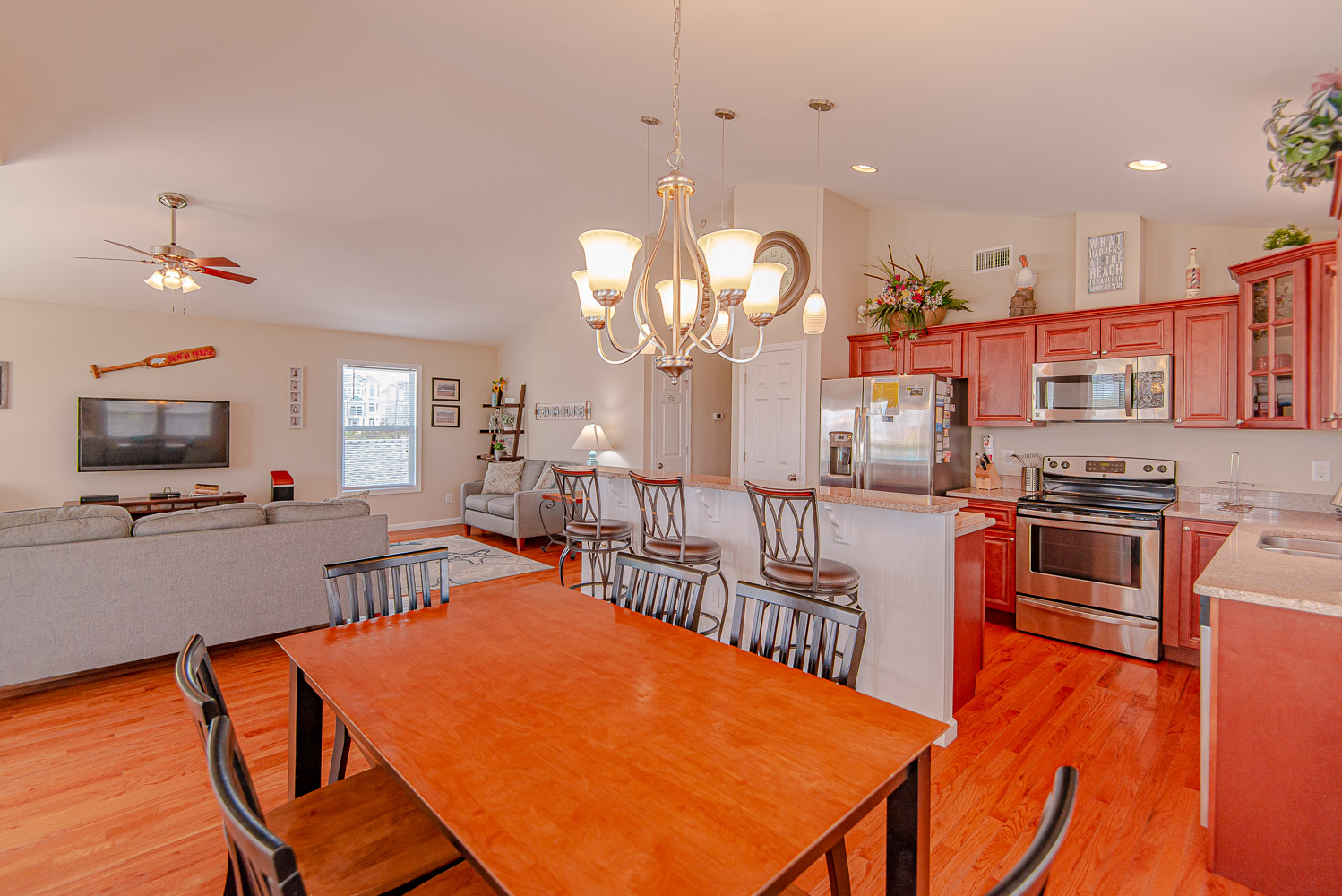 Main Level: Living Area, Hardwood Floors, Large Flat Panel TV, Dining Area, Hardwood Floors, Kitchen Area w/Stainless Appliances, Granite Counters, 3 Bedrooms (1 Private Suite w/King, TV, & Full Bath w/Tile, Granite, Shower w/6 Inch Step to Enter, 1 w/Queen & TV, 1 w/Duo Bunk, TV), Full Tile & Grantie Hall Bath Tub/Shower, & Covered Deck w/Deck Furniture.