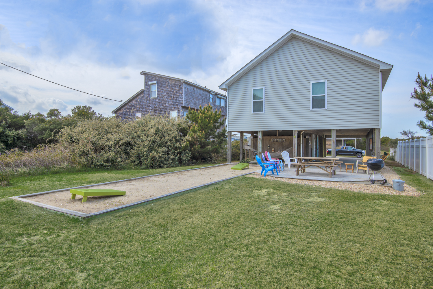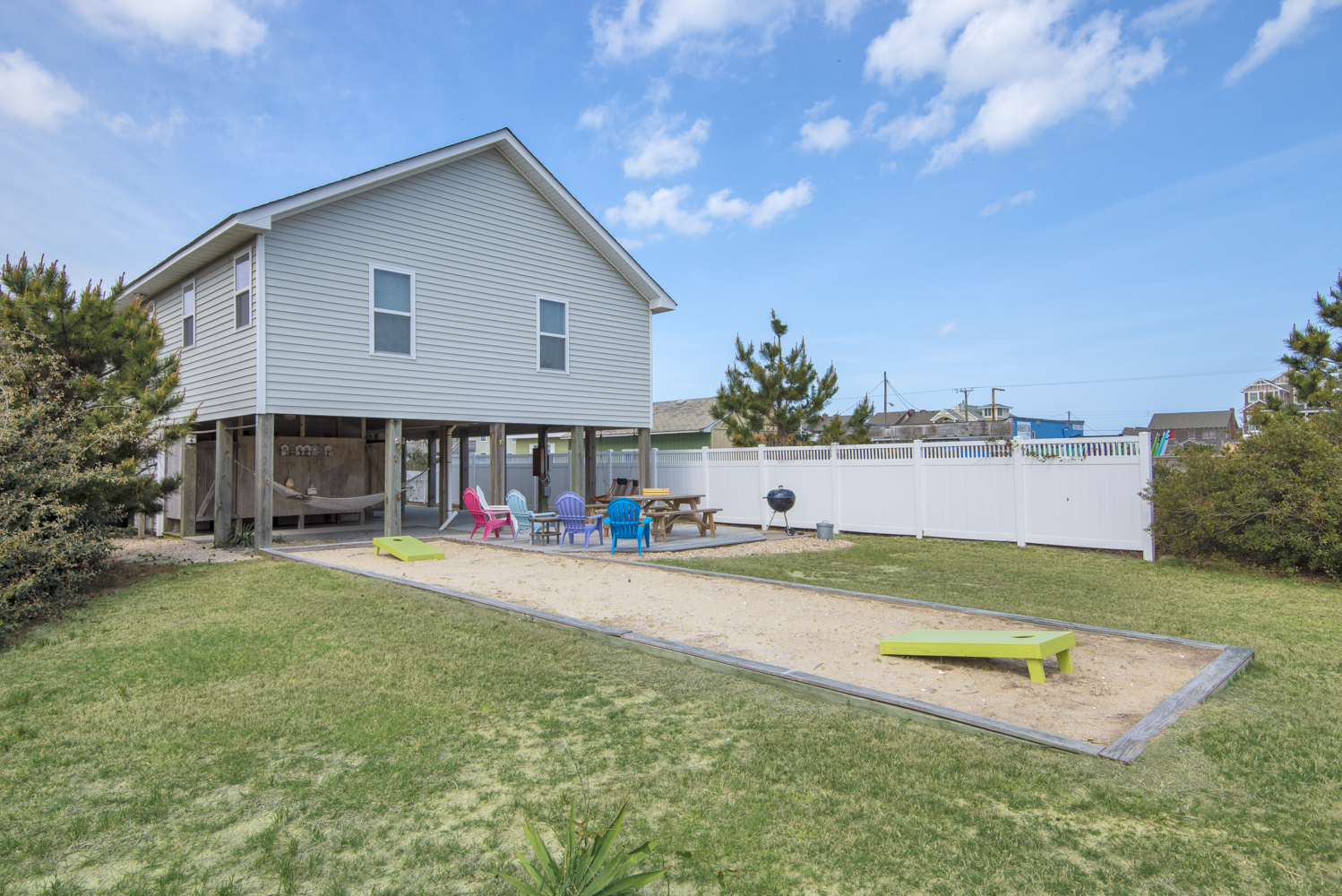 Ground Level: Parking for 3 Cars, Covered Entry, Storage, 2 Enclosed Outside Showers, Corn Hole Court, & Grilling Area w/Charcoal Grill.