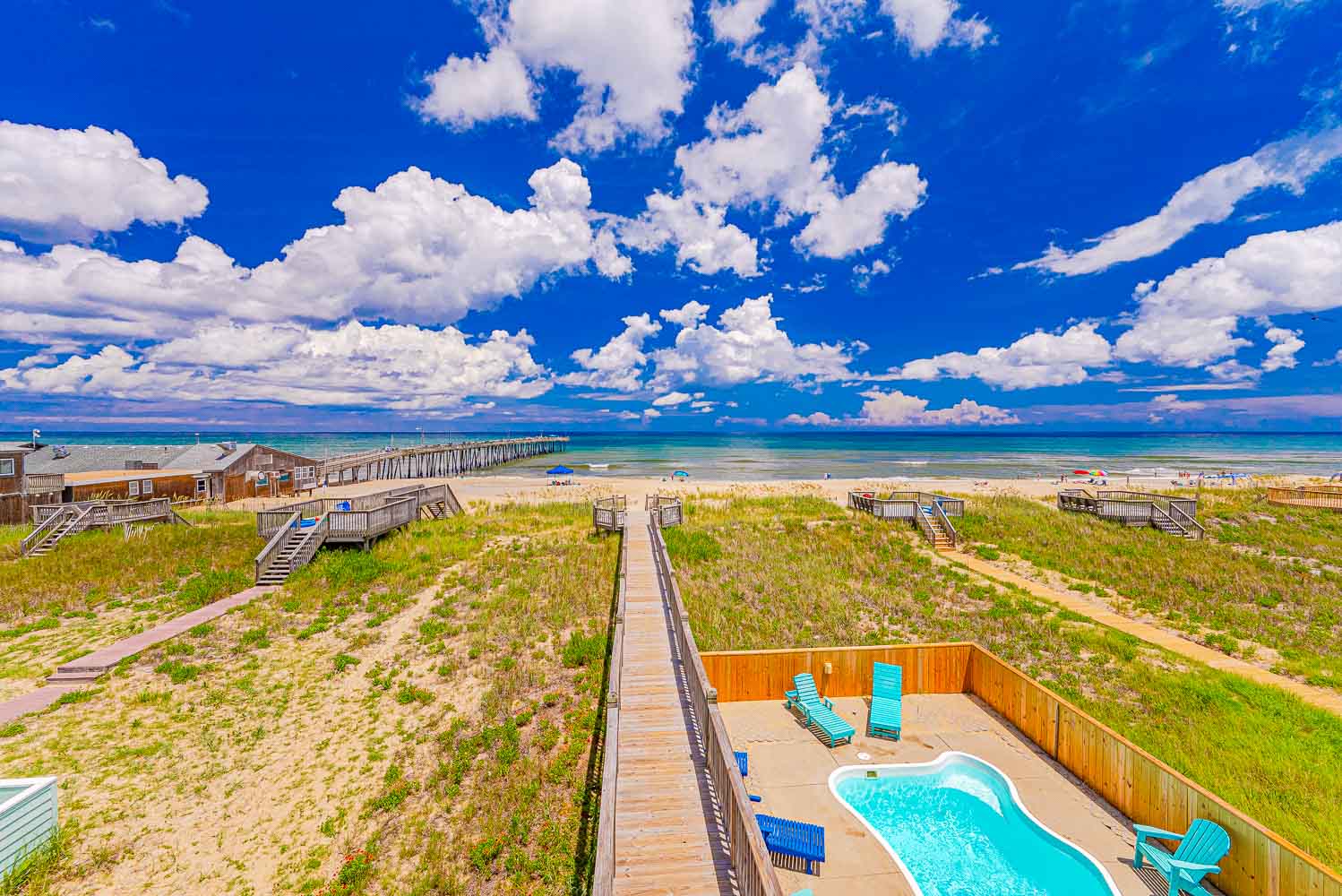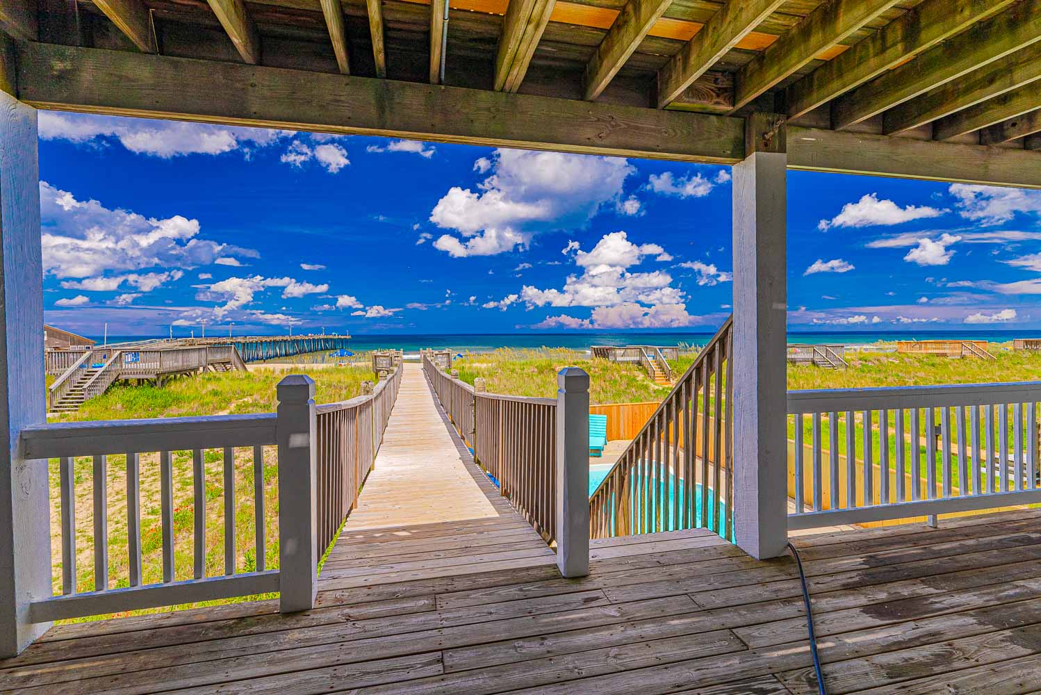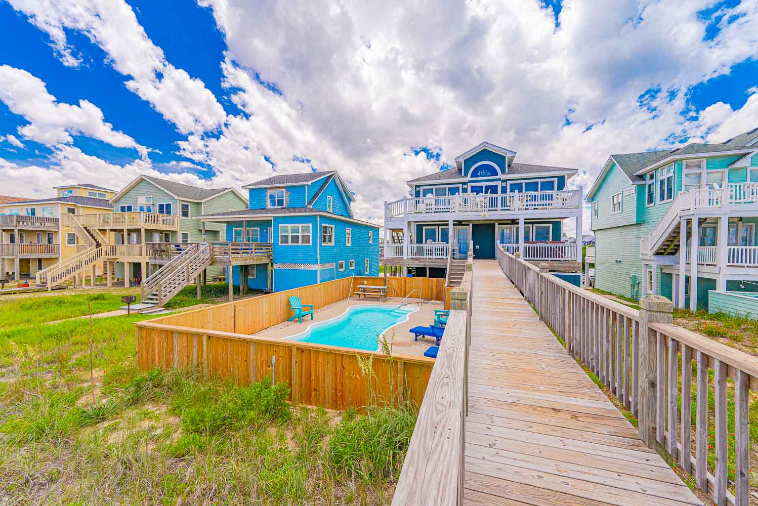 Ground Level: Parking for 8 Cars, Covered Entry, Elevator, Rec. Room w/Pool Table, Wet Bar, Refrigerator, Card Table, 2 Bedrooms (1 w/Queen & TV; 1/w/2 Doubles & TV), Laundry Area, Full Bath w/Tub/Shower, Access to Covered Area, 2 Enclosed Outdoor Showers, Private Swimming Pool ( Open Seasonally), Pool Furniture, Charcoal Grill, & Steps to Walkway w/Foot Wash to Dune Deck w/Steps to Beach.