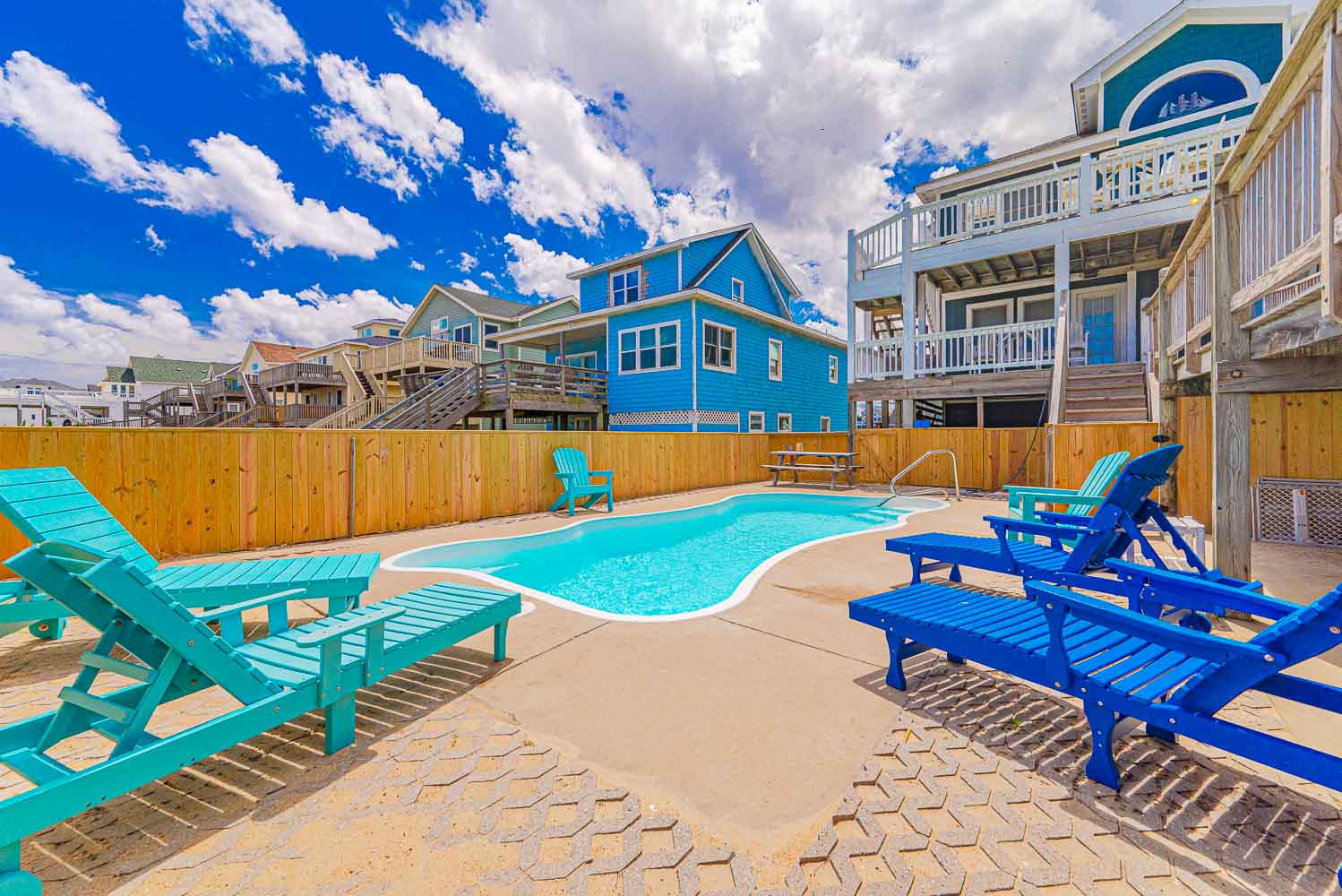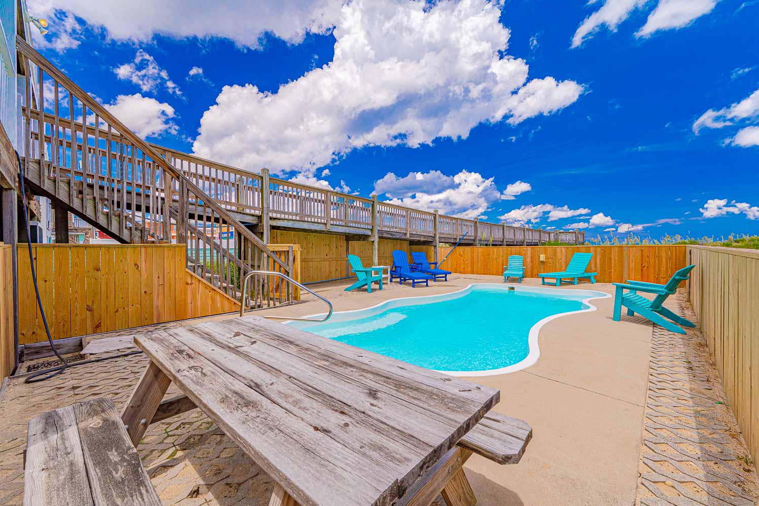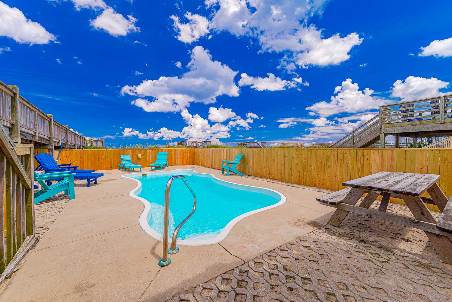 Ground Level: Parking for 8 Cars, Covered Entry, Elevator, Rec. Room w/Pool Table, Wet Bar, Refrigerator, Card Table, 2 Bedrooms (1 w/Queen & TV; 1/w/2 Doubles & TV), Laundry Area, Full Bath w/Tub/Shower, Access to Covered Area, 2 Enclosed Outdoor Showers, Private Swimming Pool ( Open Seasonally), Pool Furniture, Charcoal Grill, & Steps to Walkway w/Foot Wash to Dune Deck w/Steps to Beach.