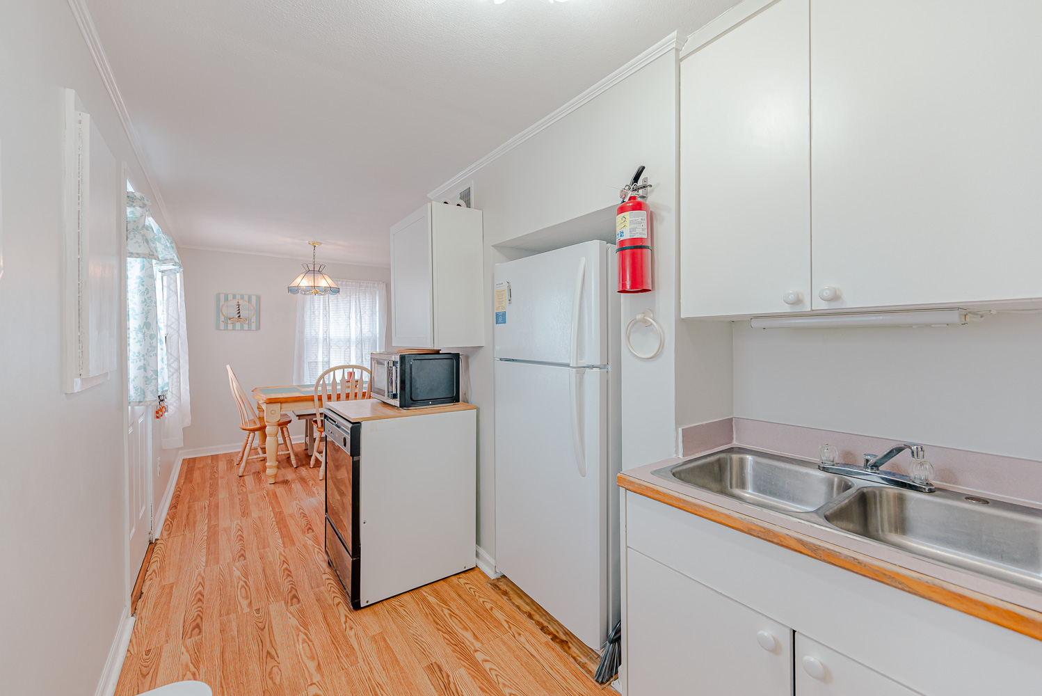 Main Level: Entry, Dining Area w/Seating for Six (6), Full Equipped Kitchen, Stove, Oven, Dishwasher, Microwave, Refrigerator w/Ice Maker, Sink, Cabinets, Cookware, Tableware; Closet (Broom, Dustpan, Vacuum), Living Room (Two (2) Sofas (One (1) Sleep Sofa), Entertainment Center, TV, Modem, Variety Games, Puzzles; Half Bath, and Locked Back Door.