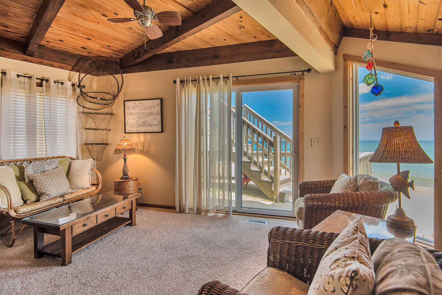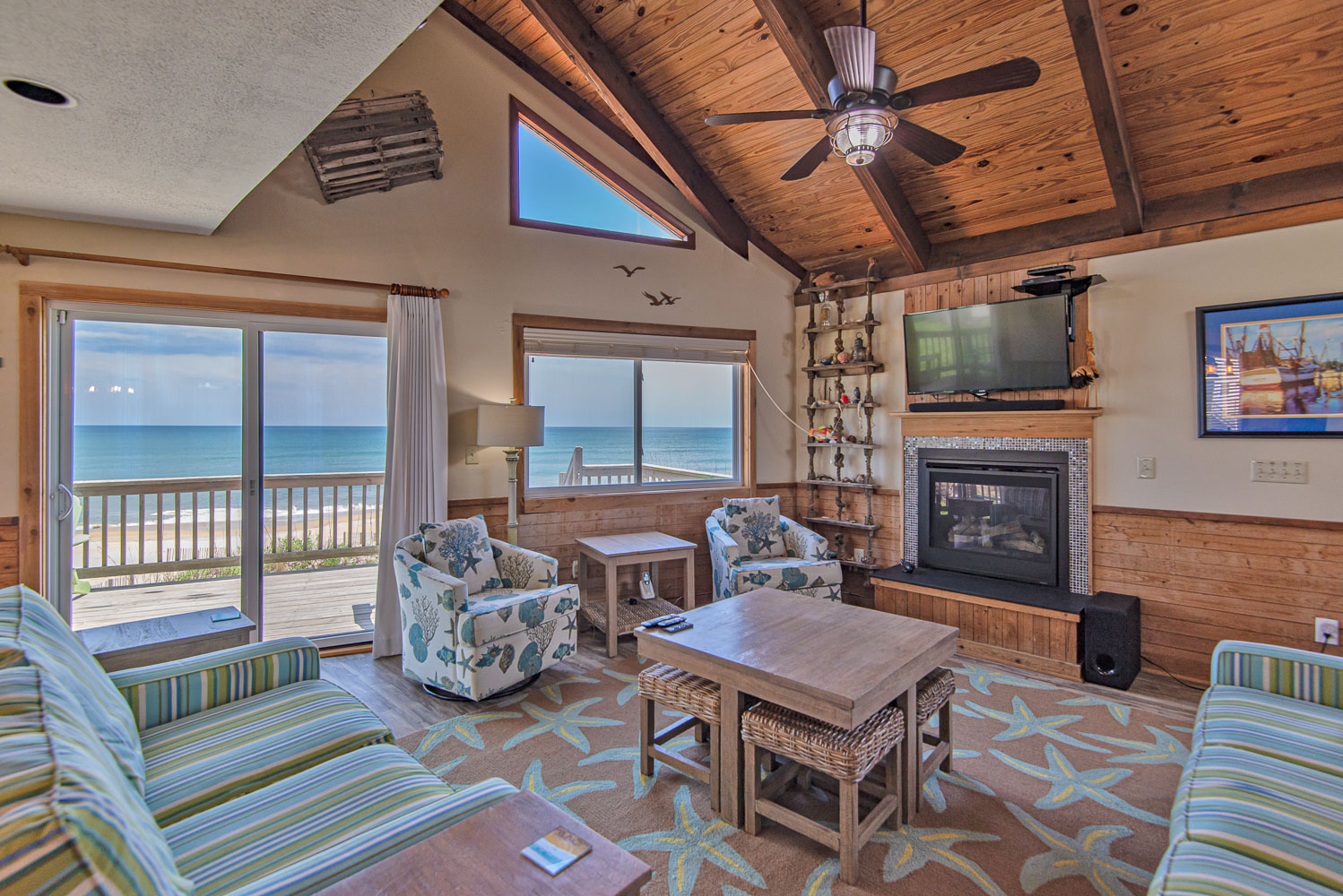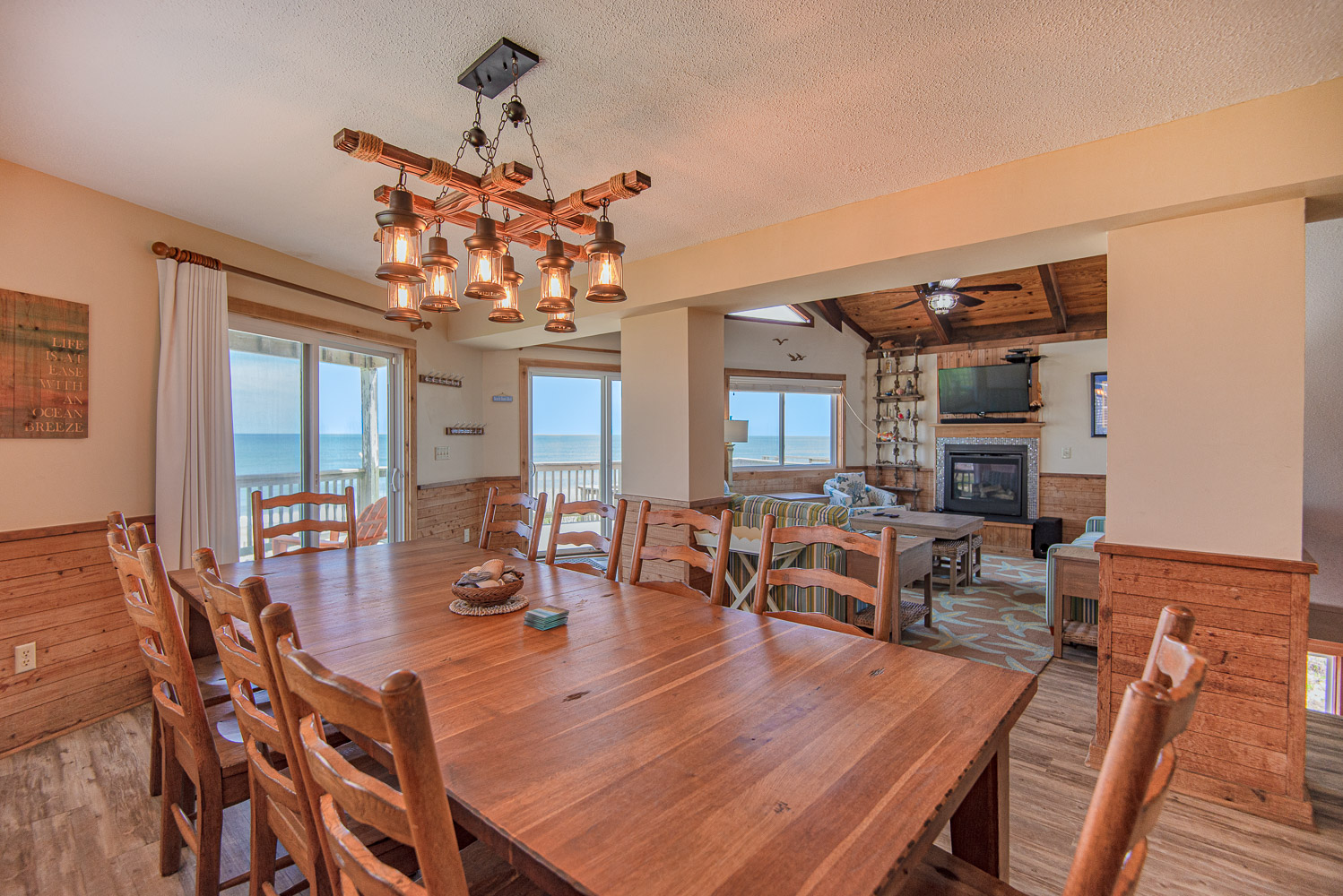Level 2: Living Area, TV, Gas Fireplace, Beautiful Ocean Views; Kitchen w/Stainless Steel Appliances, Bar Seating for Four (4); Dining Table w/Seating for 10; Half Bath; and Access to Sun Deck and Covered Deck w/Deck Furniture and Walkway to Beach w/Outstanding Ocean Views.