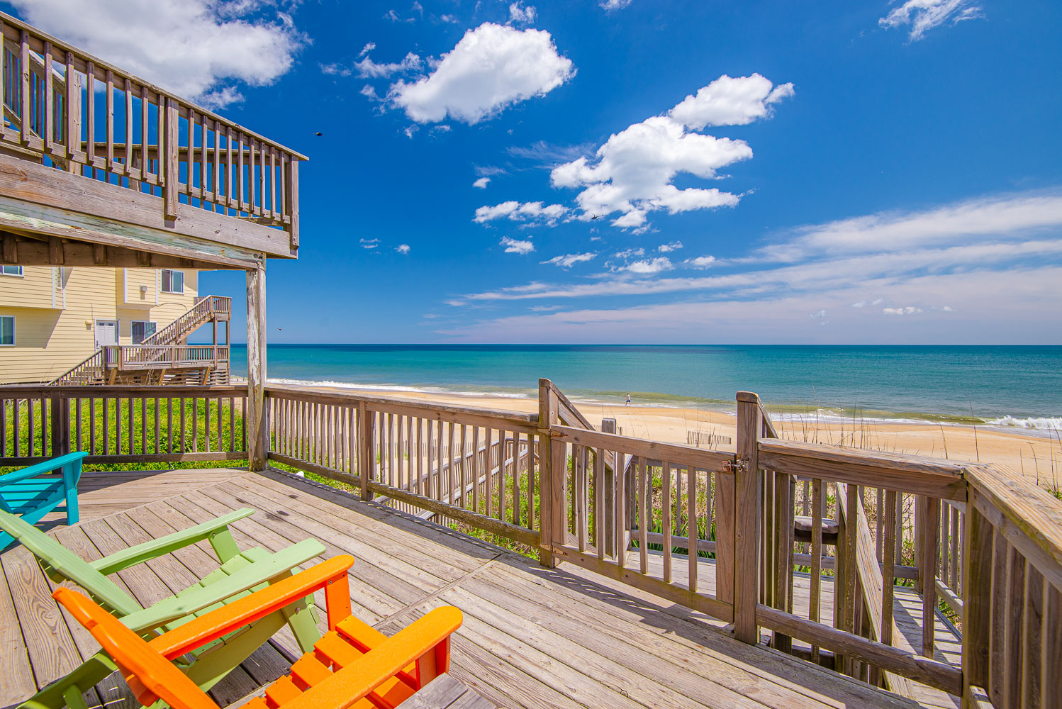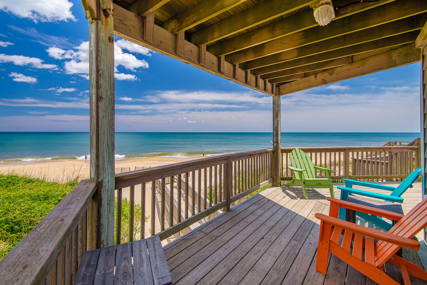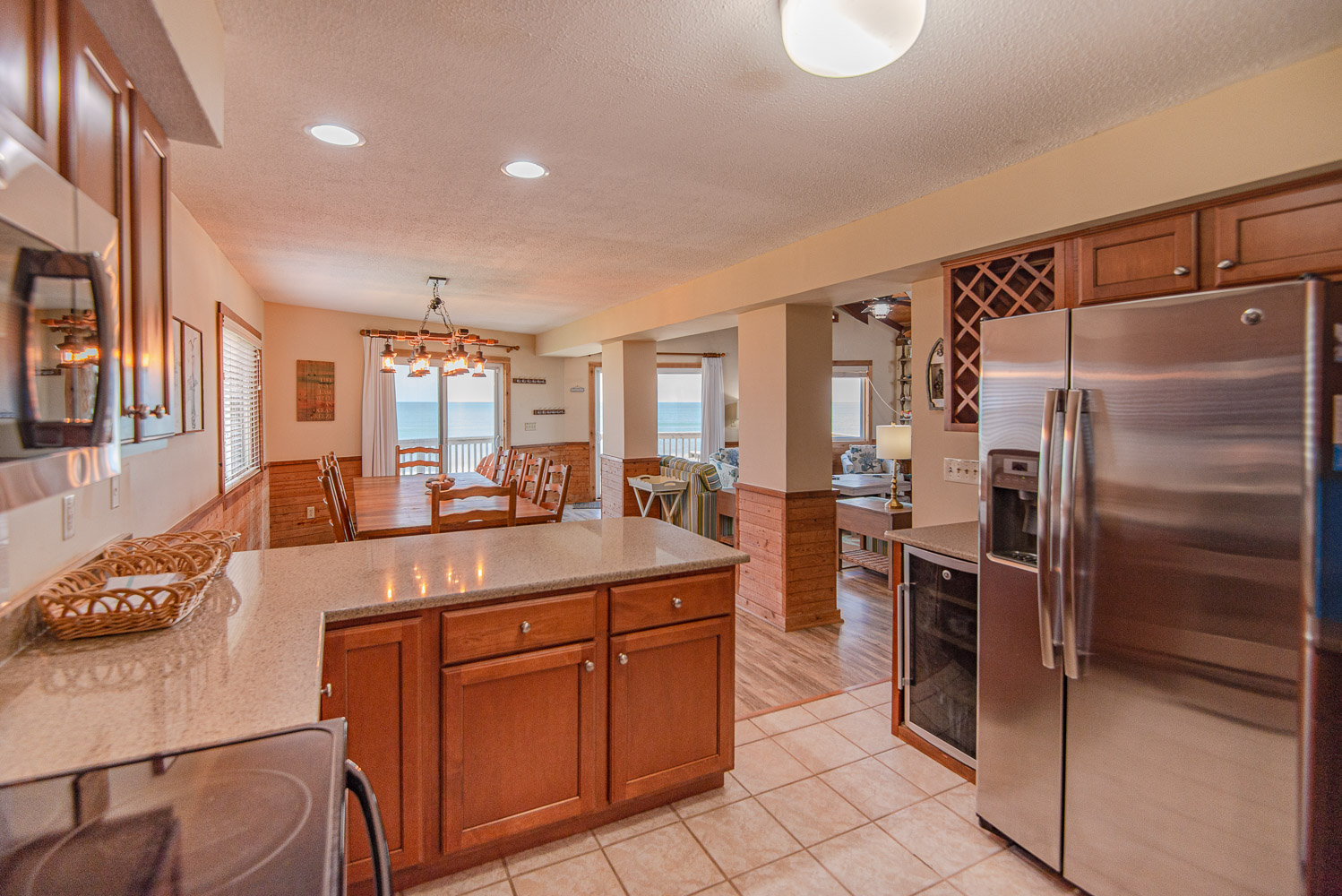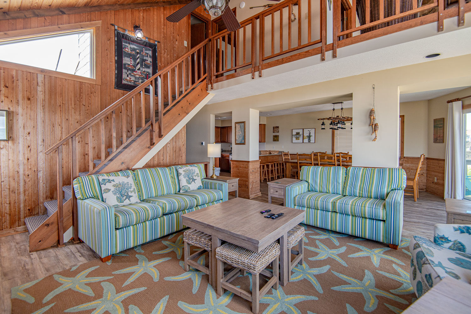 Level 2: Living Area, TV, Gas Fireplace, Beautiful Ocean Views; Kitchen w/Stainless Steel Appliances, Bar Seating for Four (4); Dining Table w/Seating for 10; Half Bath; and Access to Sun Deck and Covered Deck w/Deck Furniture and Walkway to Beach w/Outstanding Ocean Views.
