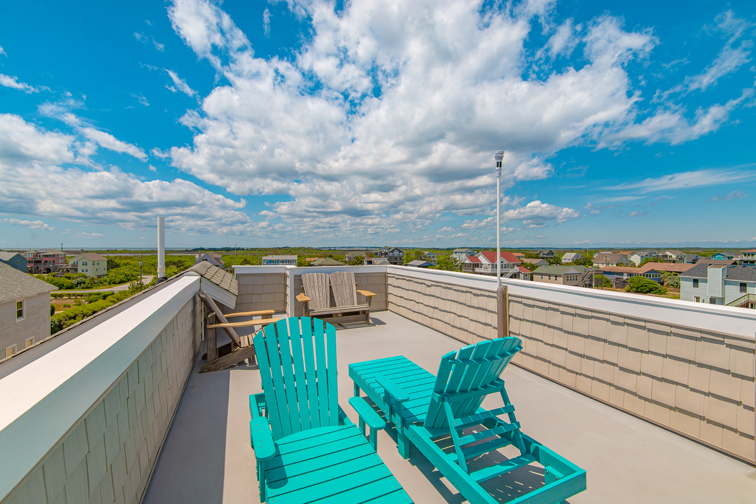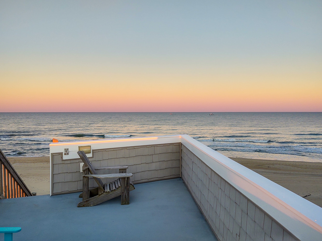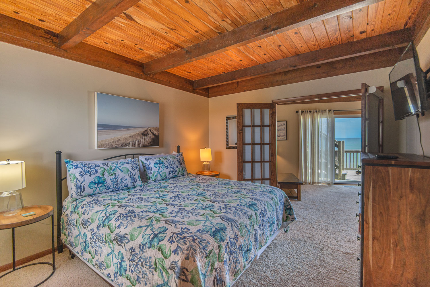 Top Level: Private Suite w/King, TV, Full Bath w/Tub; Seating Area; and Access to Sun Deck w/Steps to Observation Deck w/Deck Furniture and Endless Ocean and Sound Views.