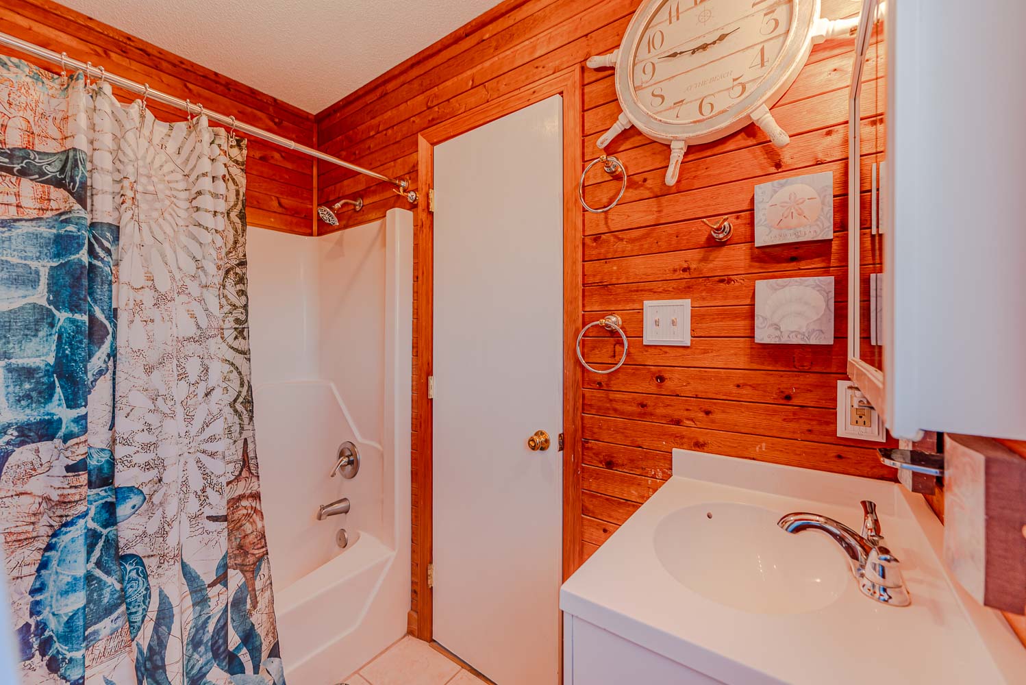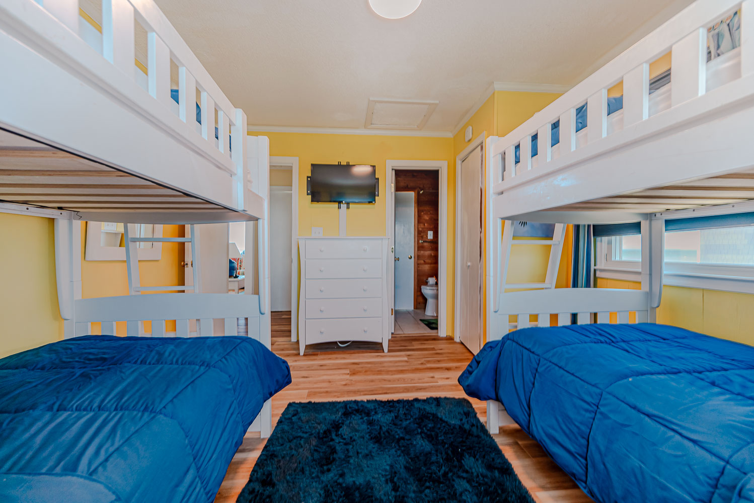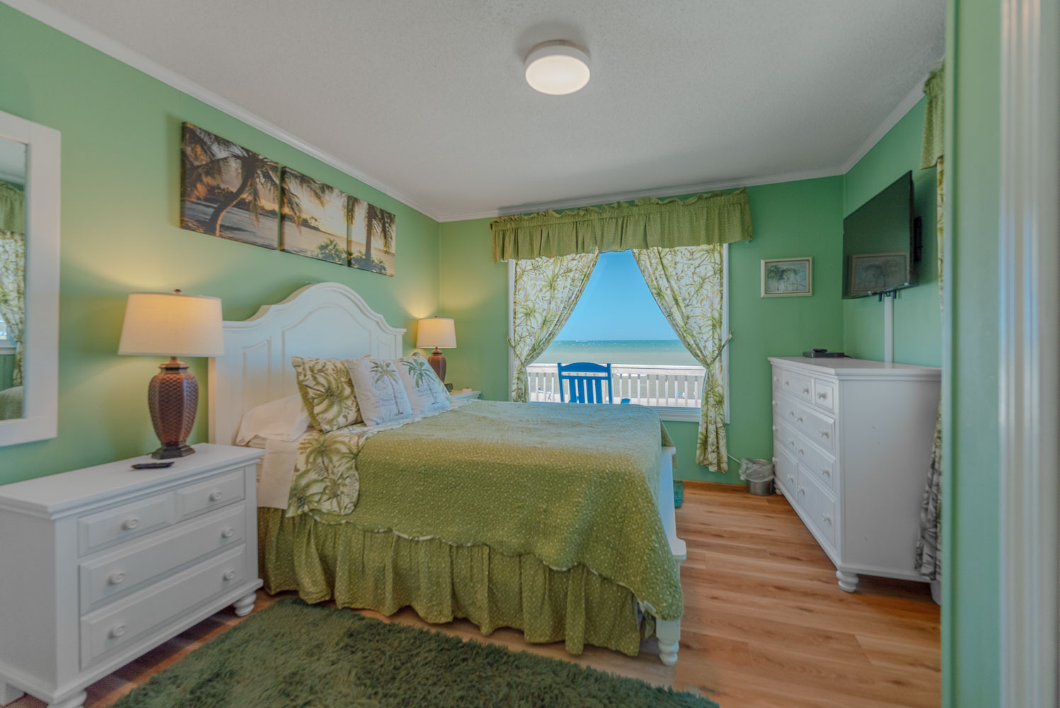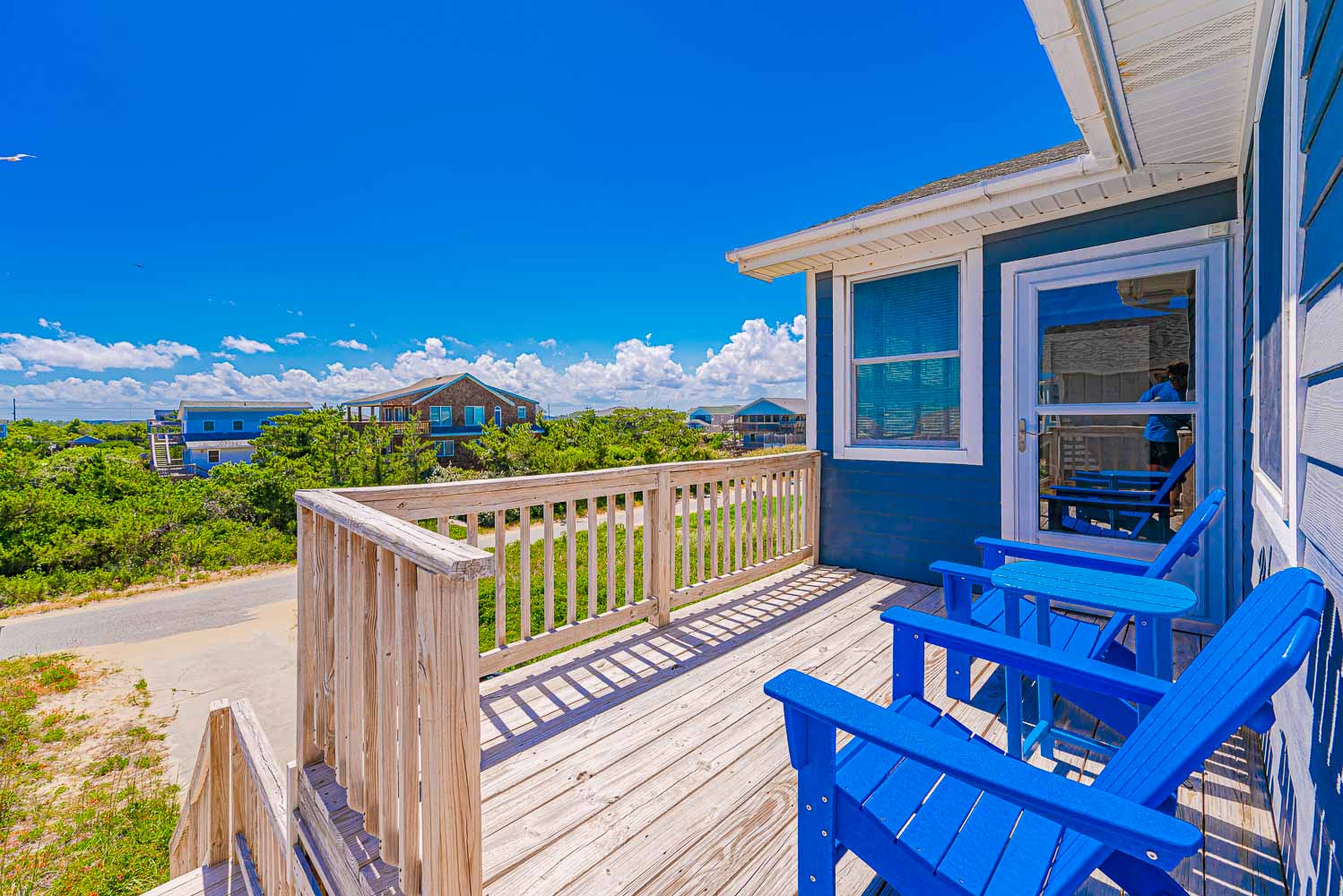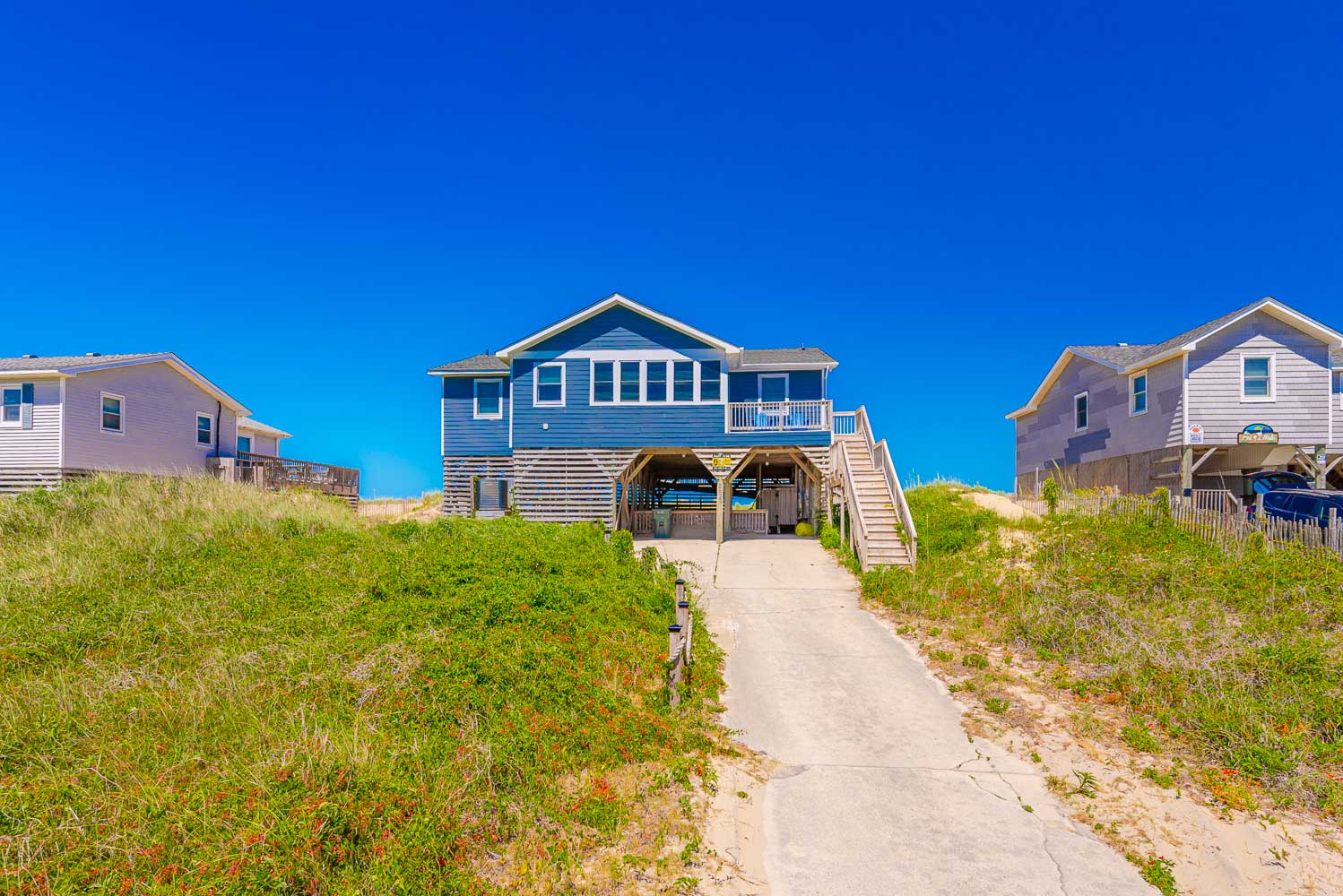 Main Level: Living Area w/Cathedral Ceilings, Flat Panel HDTV, DVD, Ocean & Beach Views, Full Equipped Kitchen w/Bar Seating for Four (4), Dining Table w/Seating for Four (4), 4 Bedrooms (2 w/Queens, Fantastic Ocean Views; 1 w/2 Singles; 1 w/2 Bunk Sets), 2 Full Hall Baths w/Tub/Shower, Florida Room w/Ceramic Floors, Furniture, Ceiling Fan, & Front Sun Deck w/Picnic Table.