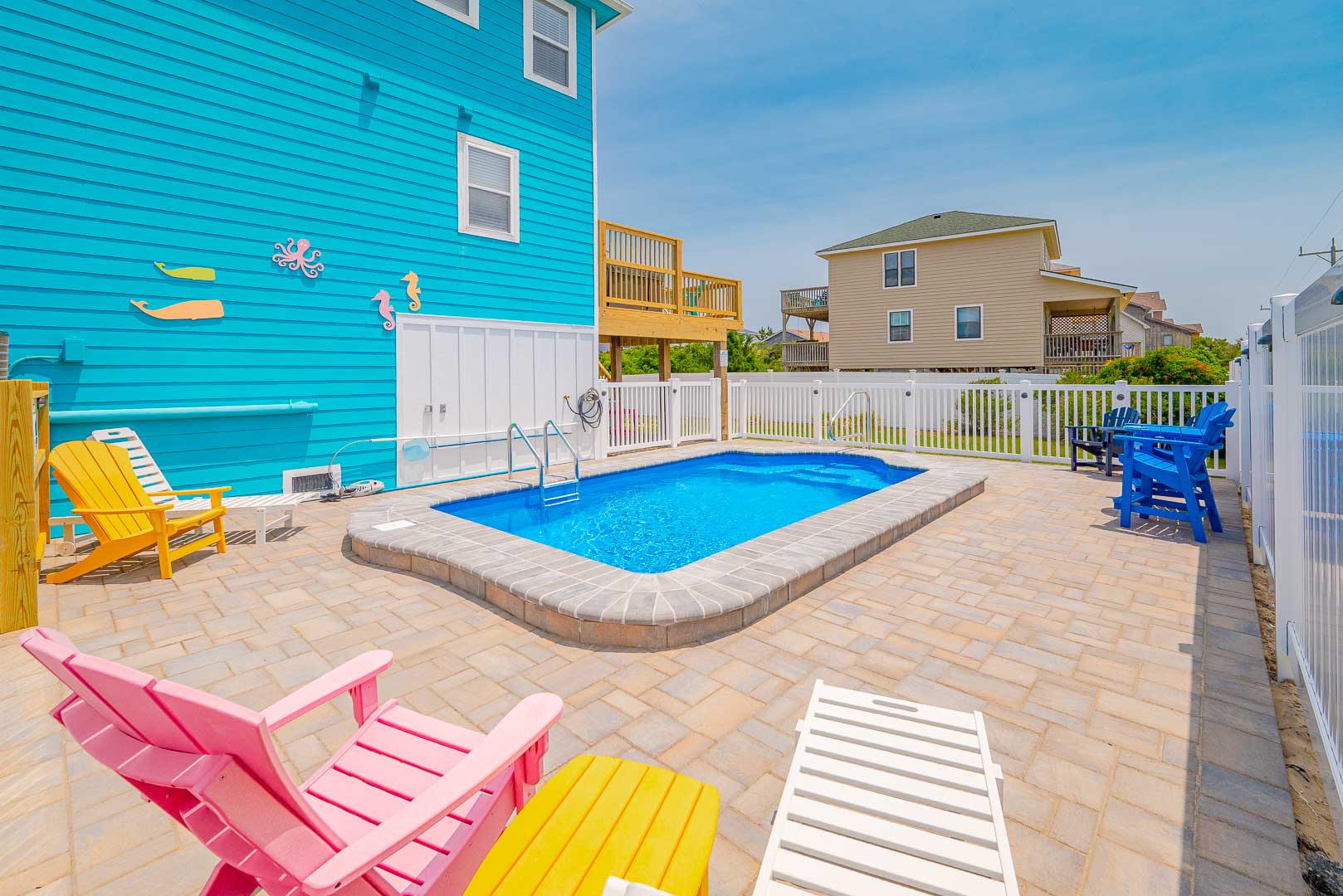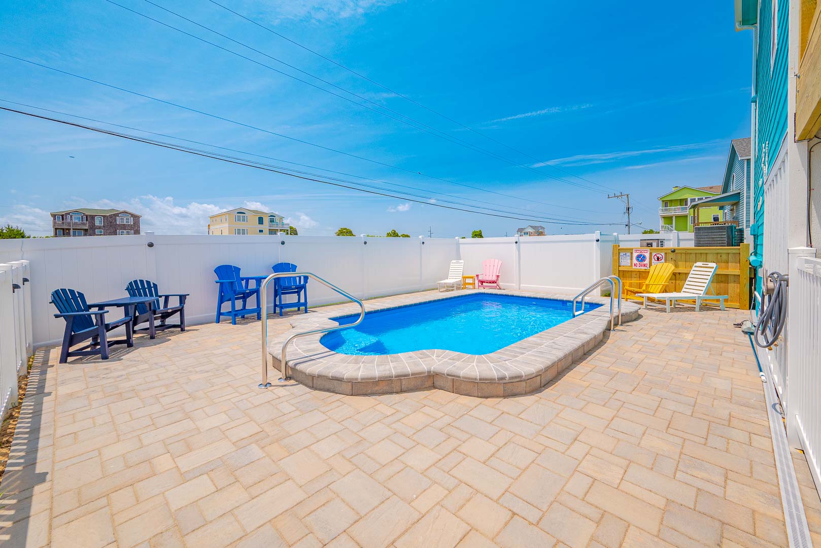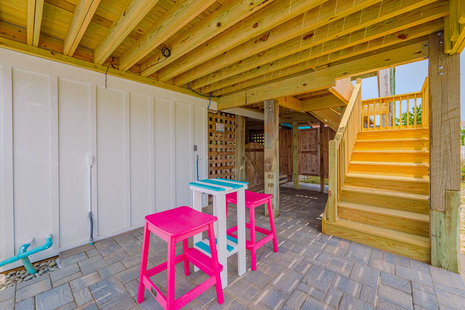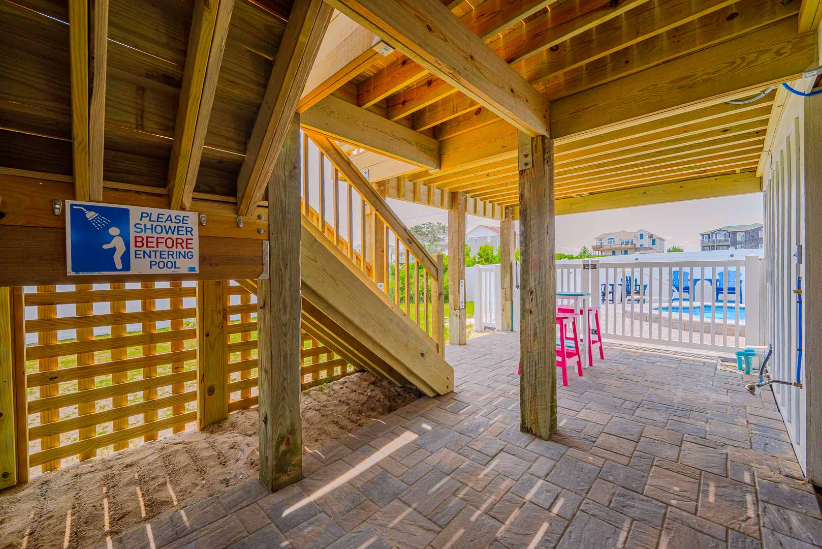Ground Level: Parking for 4 Cars, Steps to Mid Level Entry, Full Size Refrigerator, Sun Deck w/Steps to Deck w/7 Person Hot Tub, Steps to Large Area w/Fiber Optic Lighting, shaded Picnic Table/Grill Area w/Gas Grill, Private Heated Swimming Pool - Open Seasonally (Can be Heated for $250.00 Per Week, Plus Tax - Please Bear in Mind that Pool Temperature is Subject to Outside Temperatures and Conditions), Two (2) Pergola Sitting Areas, Foot Wash, and Enclosed Outside Shower.