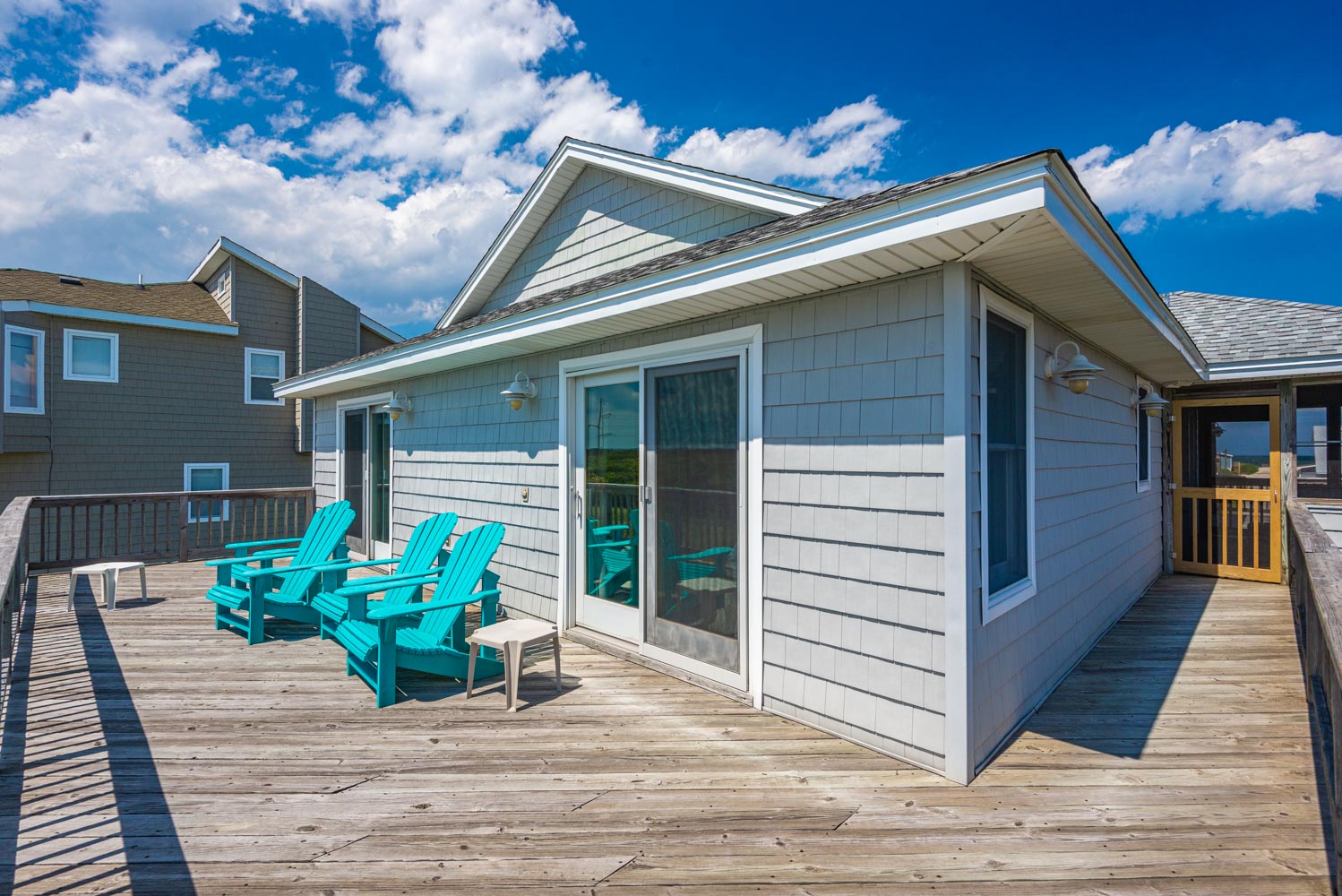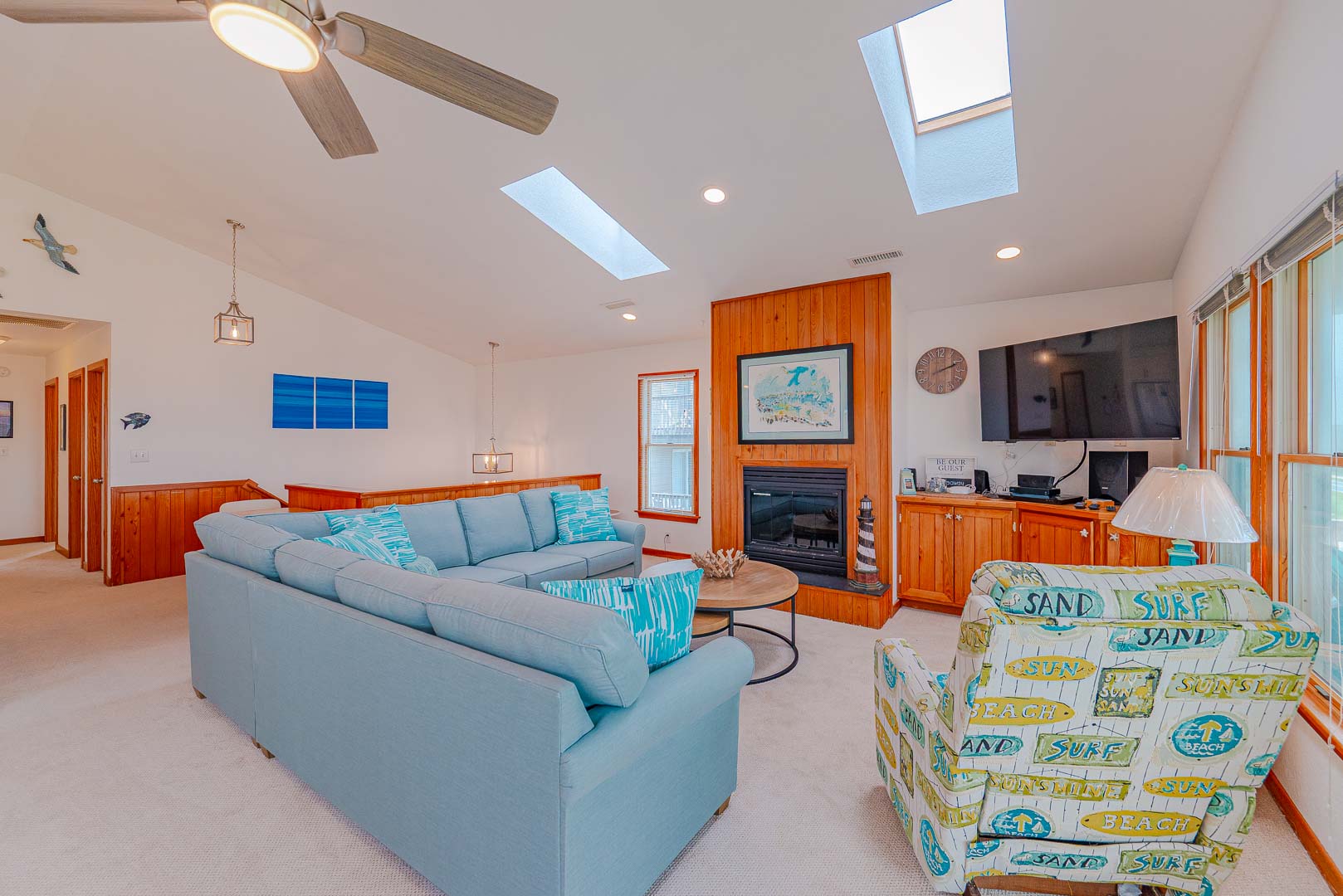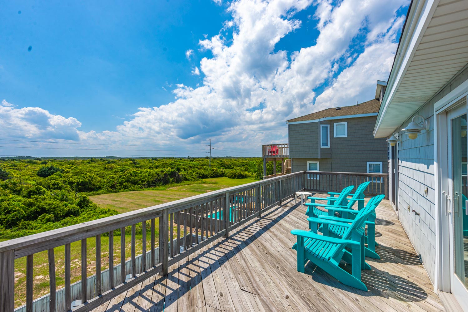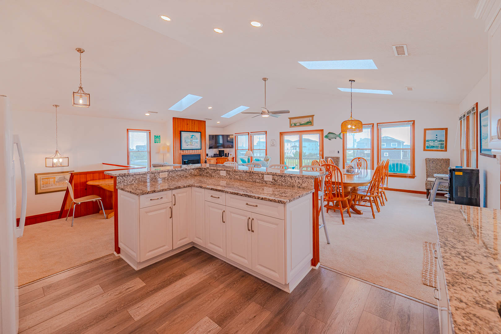Top Level: Living/Dining/Kitchen Area, TV, Gas Fireplace, Ocean to Sound Views, Full Bath, 2 Private Suites w/Kings, TVs, Full Baths w/Tub/Shower; Covered Deck w/Deck Furniture and Ocean Views, and Sun Deck w/Deck Furniture and Sound Views.
