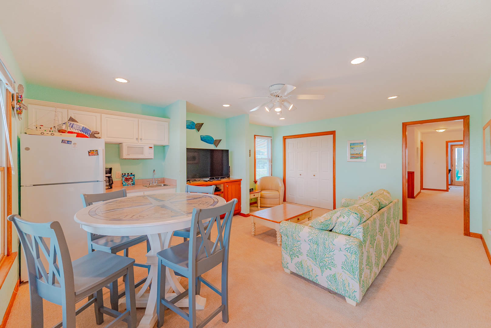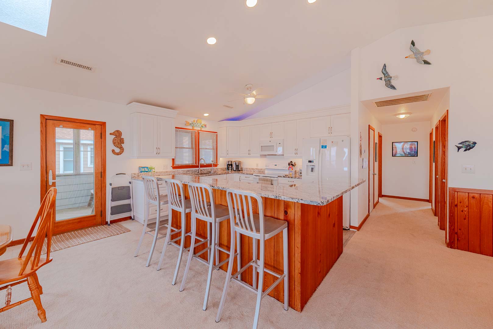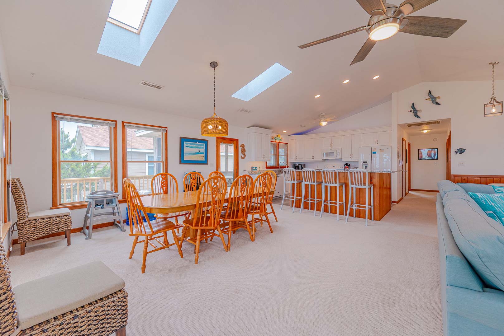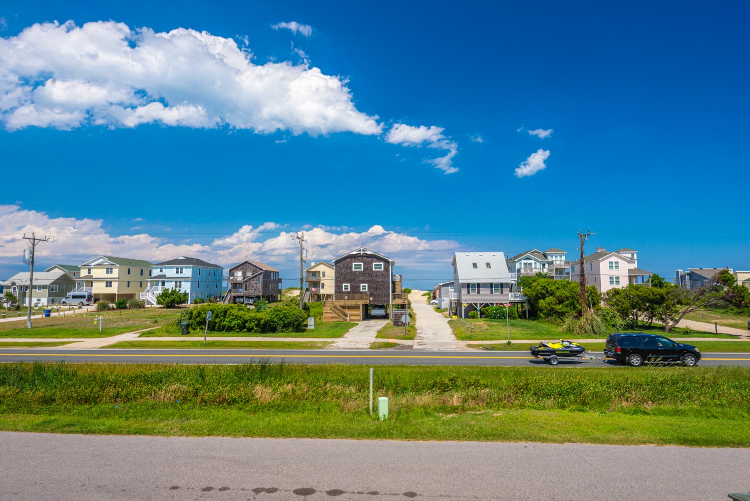 Top Level: Living/Dining/Kitchen Area, TV, Gas Fireplace, Ocean to Sound Views, Full Bath, 2 Private Suites w/Kings, TVs, Full Baths w/Tub/Shower; Covered Deck w/Deck Furniture and Ocean Views, and Sun Deck w/Deck Furniture and Sound Views.