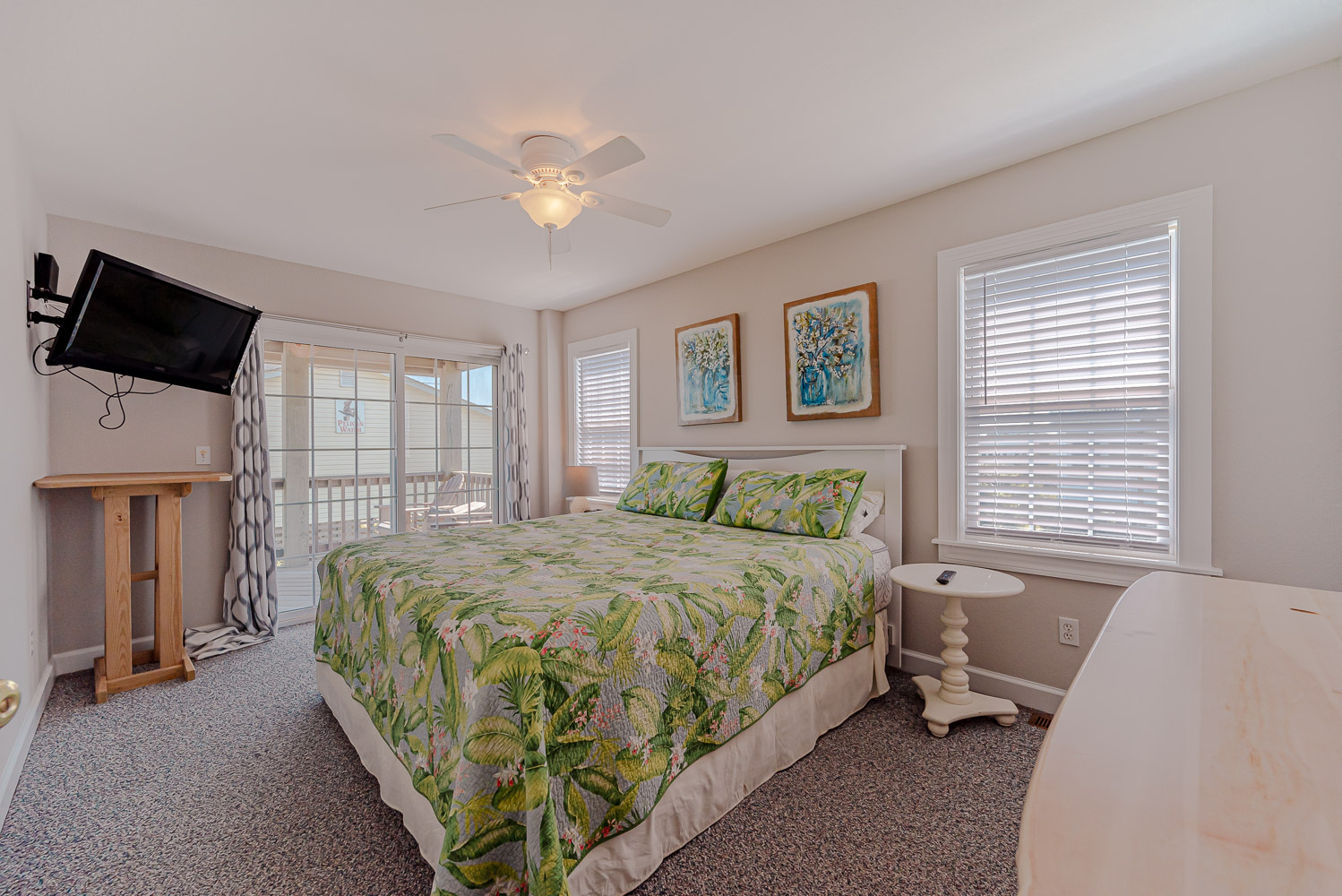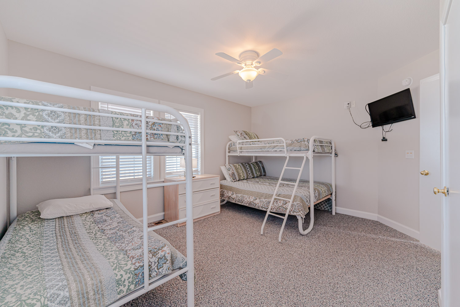 Mid Level: 3 Bedrooms (Private Suite w/Queen, TV, Full Bath w/Walk-In Shower; 1 w/King, 36 Inch TV; Duo Bunk, 29 Inch TV; 1 w/2 Bunk Sets, 29 Inch TV), Full Hall Bath w/Tub/Shower, and Wrap Around Covered Deck w/Deck Furniture.
