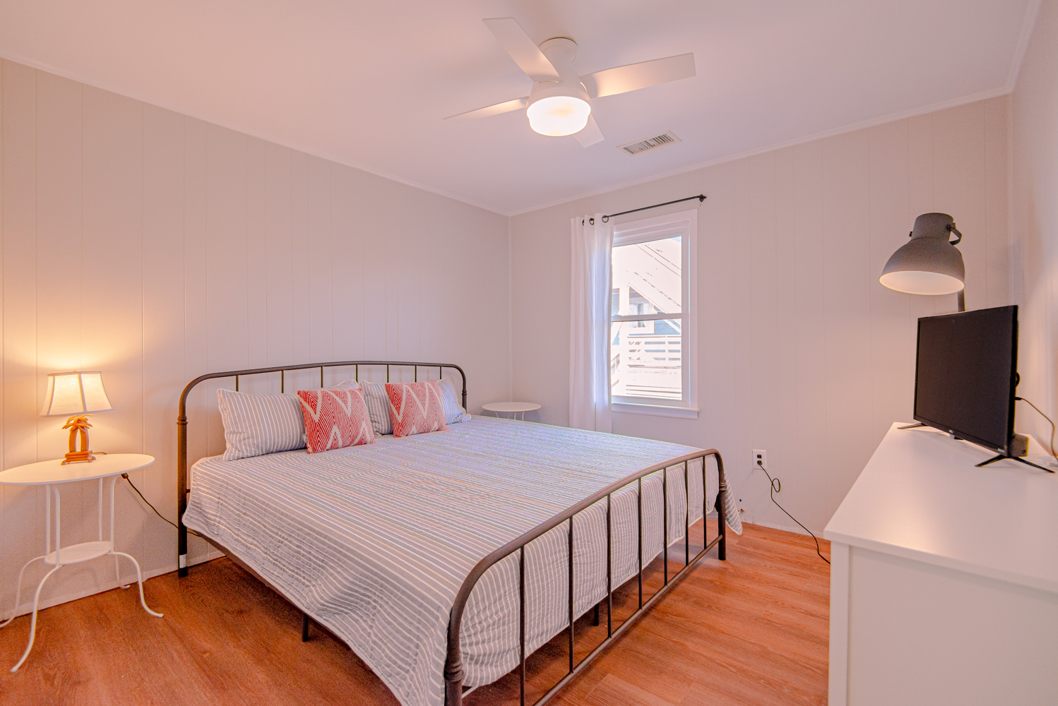Main Level: Spacious H-Floor Plan w/Living Area w/TV, Ceiling Fan, Eat-In Kitchen Area w/Seating for Six (6), 4 Bedrooms (2 w/Kings, TVs; 1 w/Queen, TV; 1 w/2 Bunk Sets, TV), Full Hall Bath w/Tub/Shower, Full Hall Bath w/Shower, & Sun Deck w/Furniture.