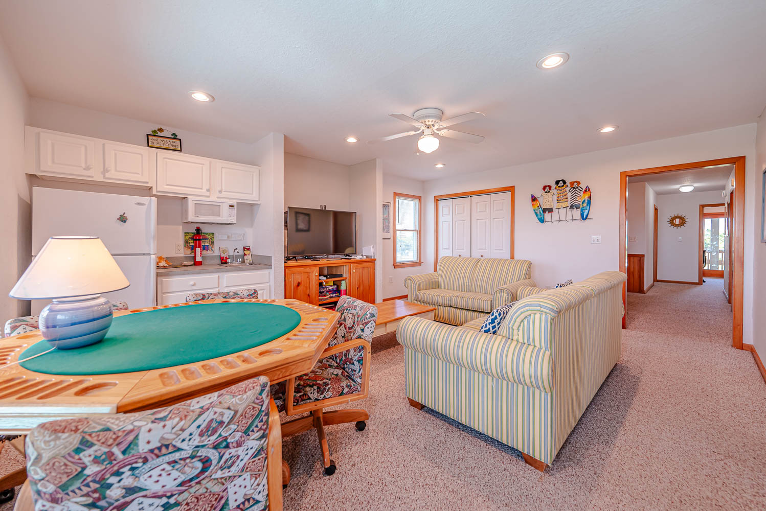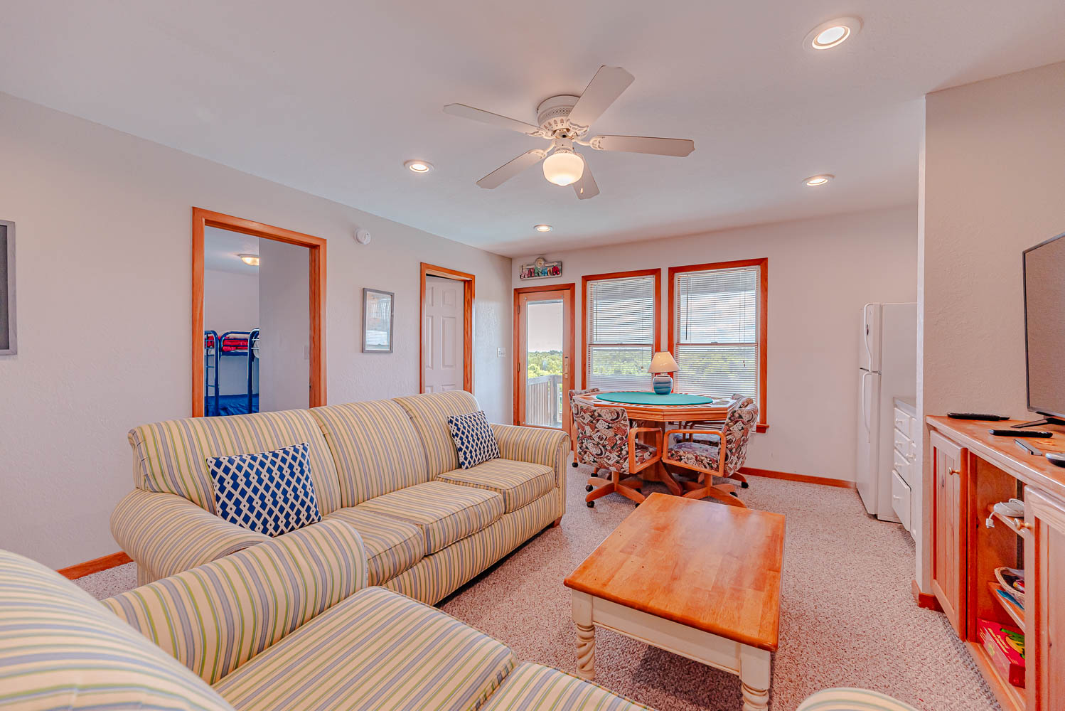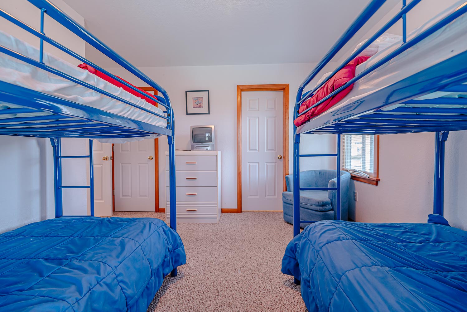 Mid Level: 4 Bedrooms (2 Private Suites w/Queens, TVs, Access to Covered Deck, Full Baths w/Tub/Shower; 1 w/2 Singles; 1 w/2 Bunk Sets), Share Jack-n-Jill Bath w/Tub/Shower; Rec. Room w/TV, Movies, Games, Wet Bar, Refrigerator, Laundry Area, Half Bath, and Covered Deck,