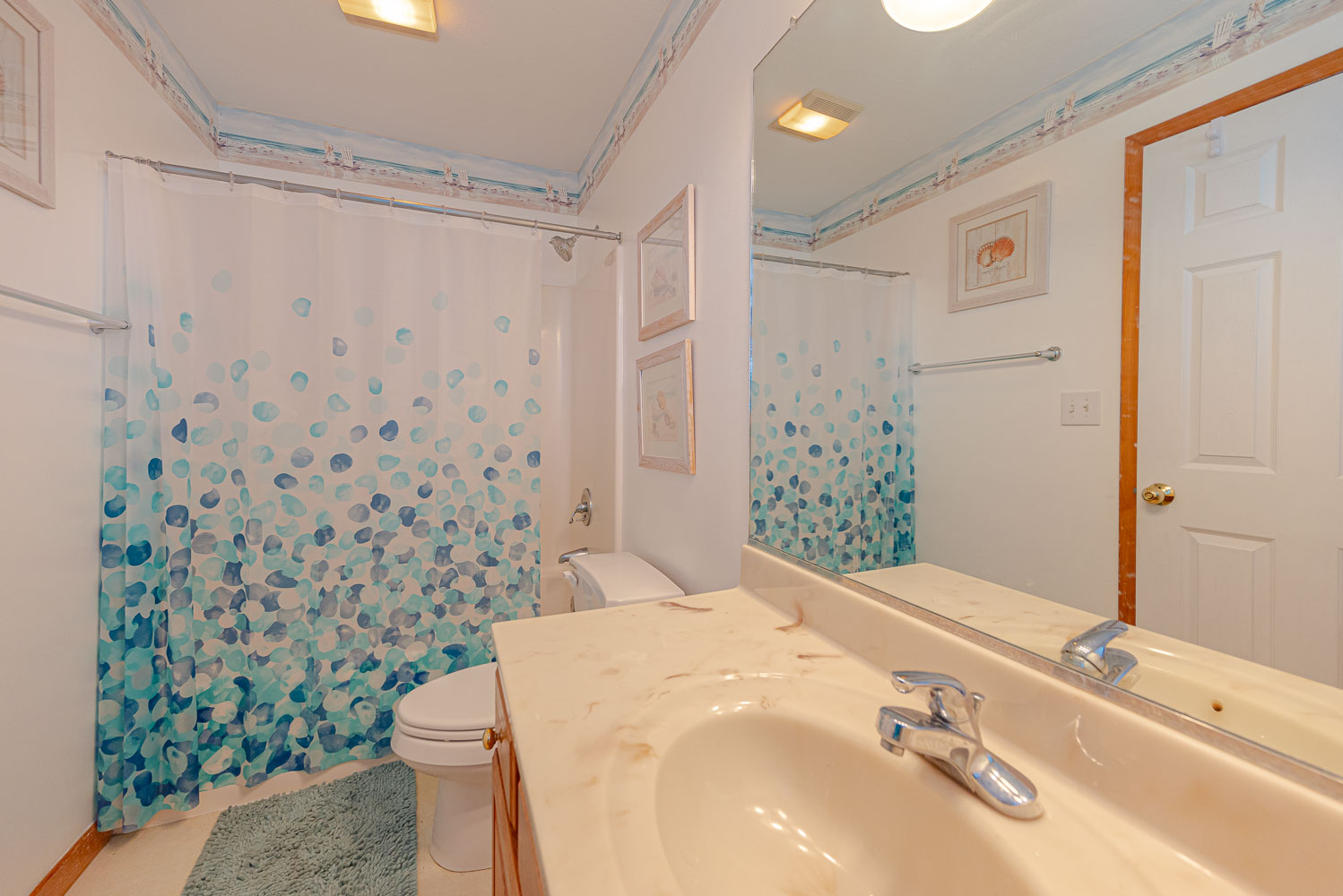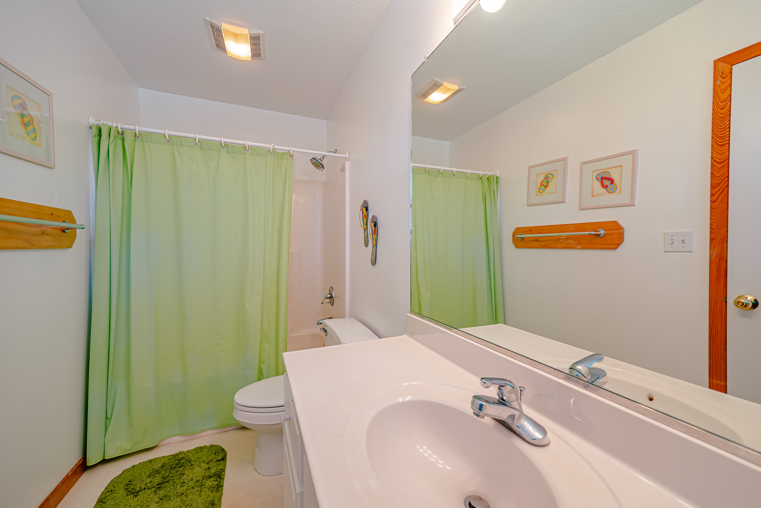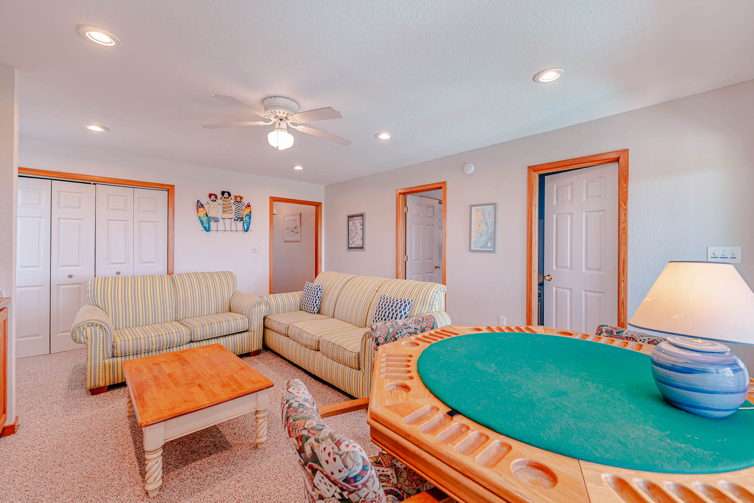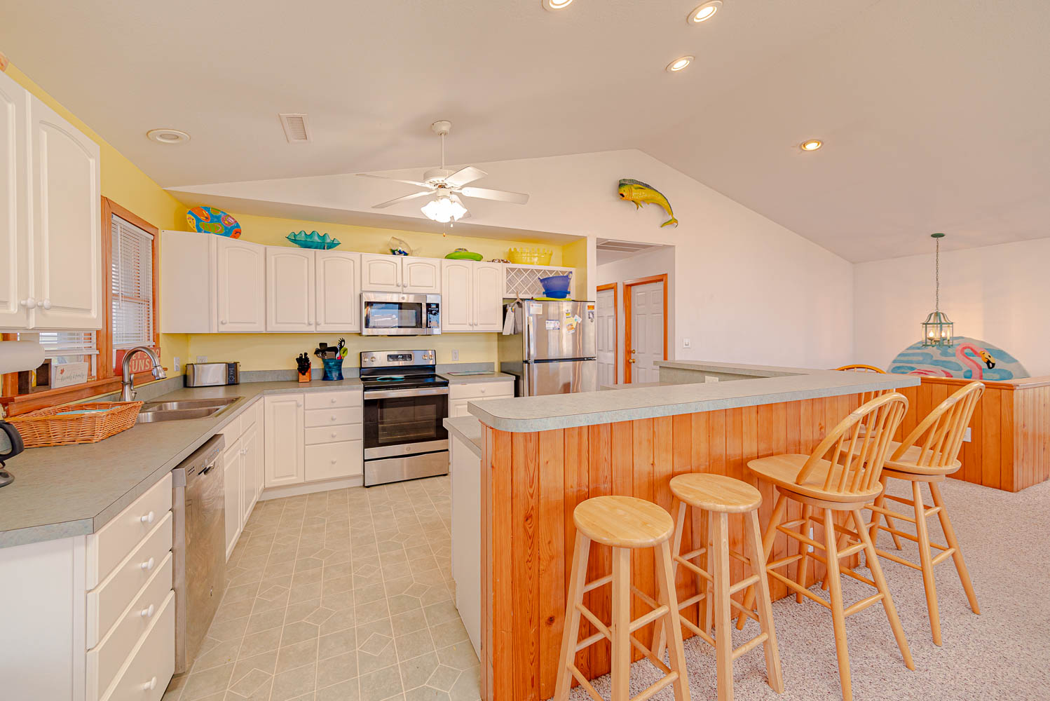 Mid Level: 4 Bedrooms (2 Private Suites w/Queens, TVs, Access to Covered Deck, Full Baths w/Tub/Shower; 1 w/2 Singles; 1 w/2 Bunk Sets), Share Jack-n-Jill Bath w/Tub/Shower; Rec. Room w/TV, Movies, Games, Wet Bar, Refrigerator, Laundry Area, Half Bath, and Covered Deck,