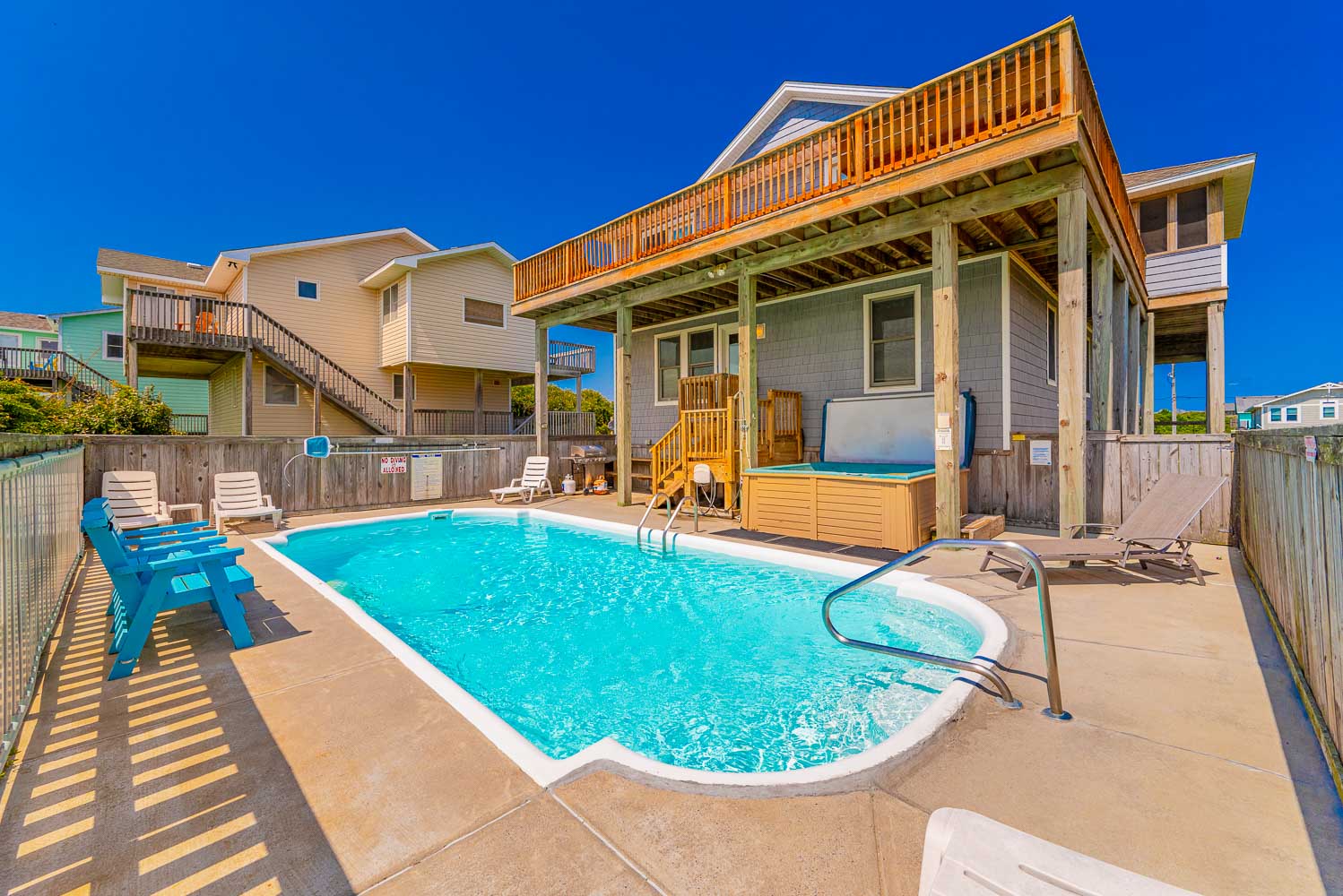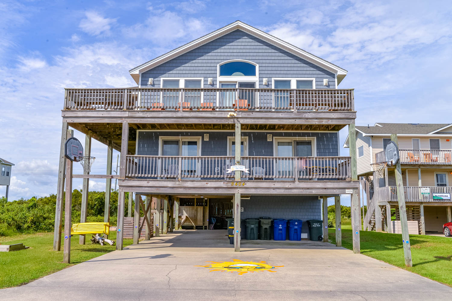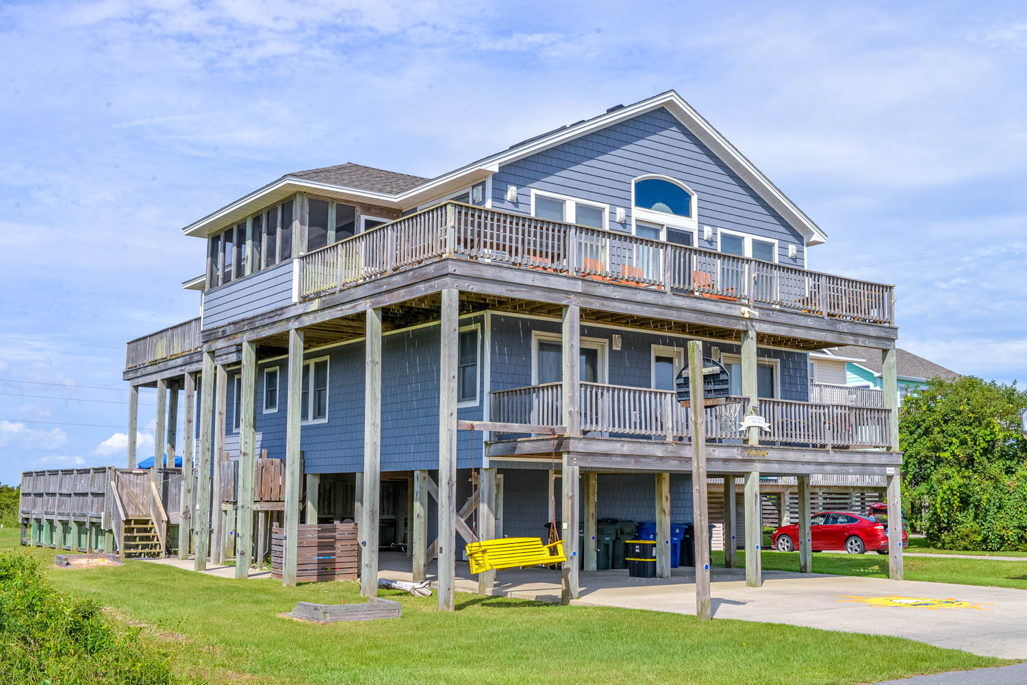 Ground Level: Parking for 5, Basketball Hoop, Covered Entry, Fish Cleaning Station, Enclosed Outside Shower, Access to Patio Area w/Hot Tub, Private Swimming Pool - Open Seasonally, and Gas Grill.