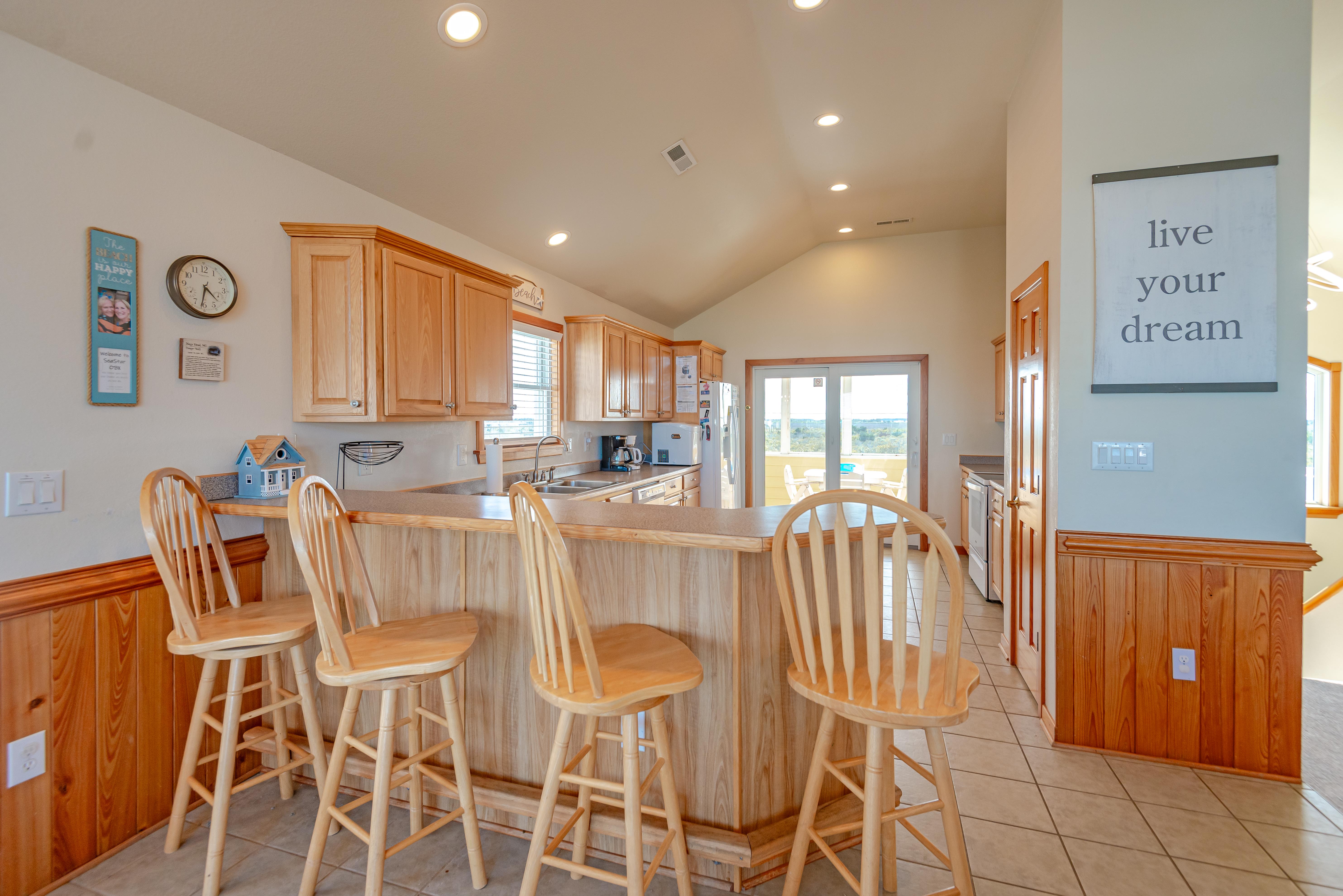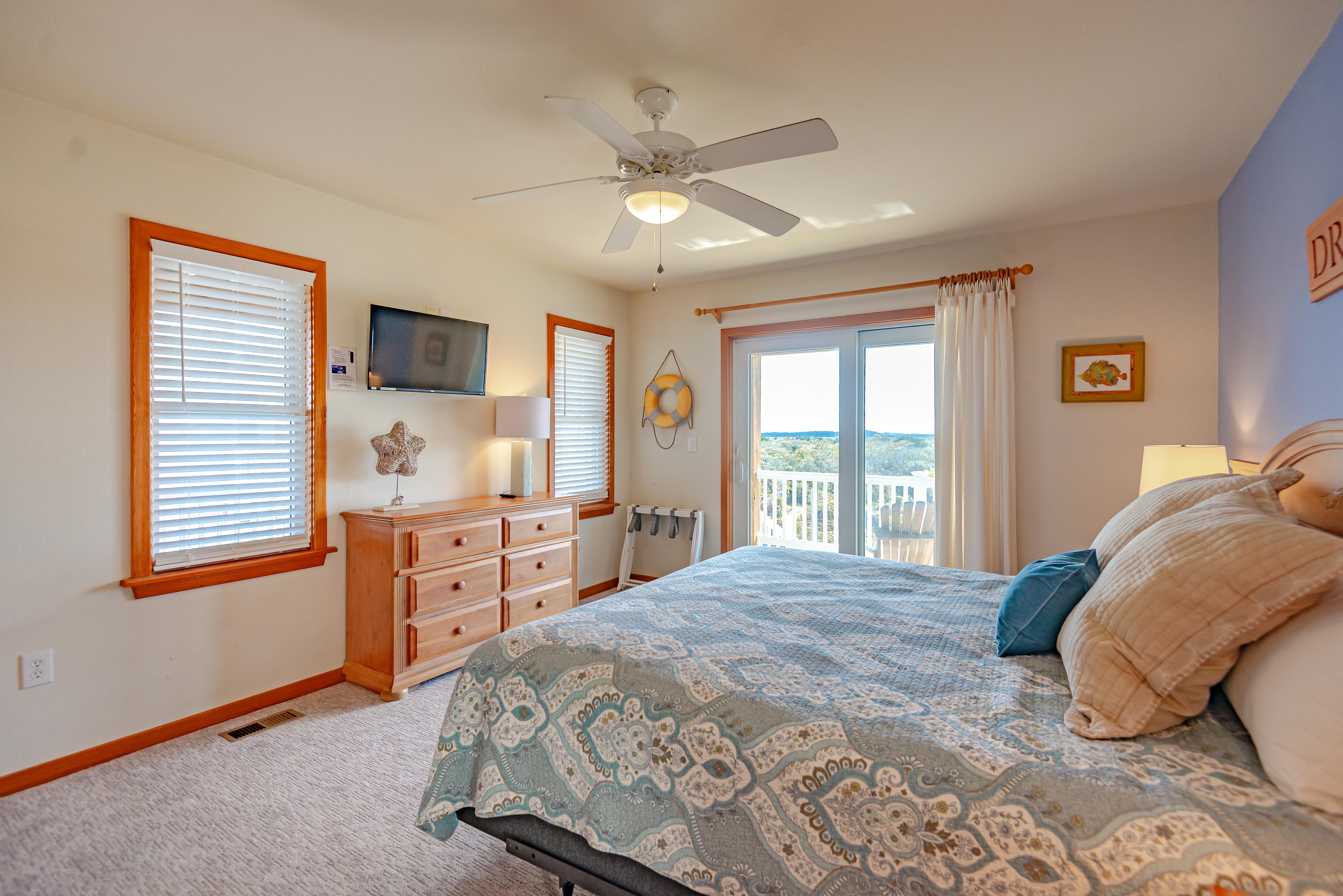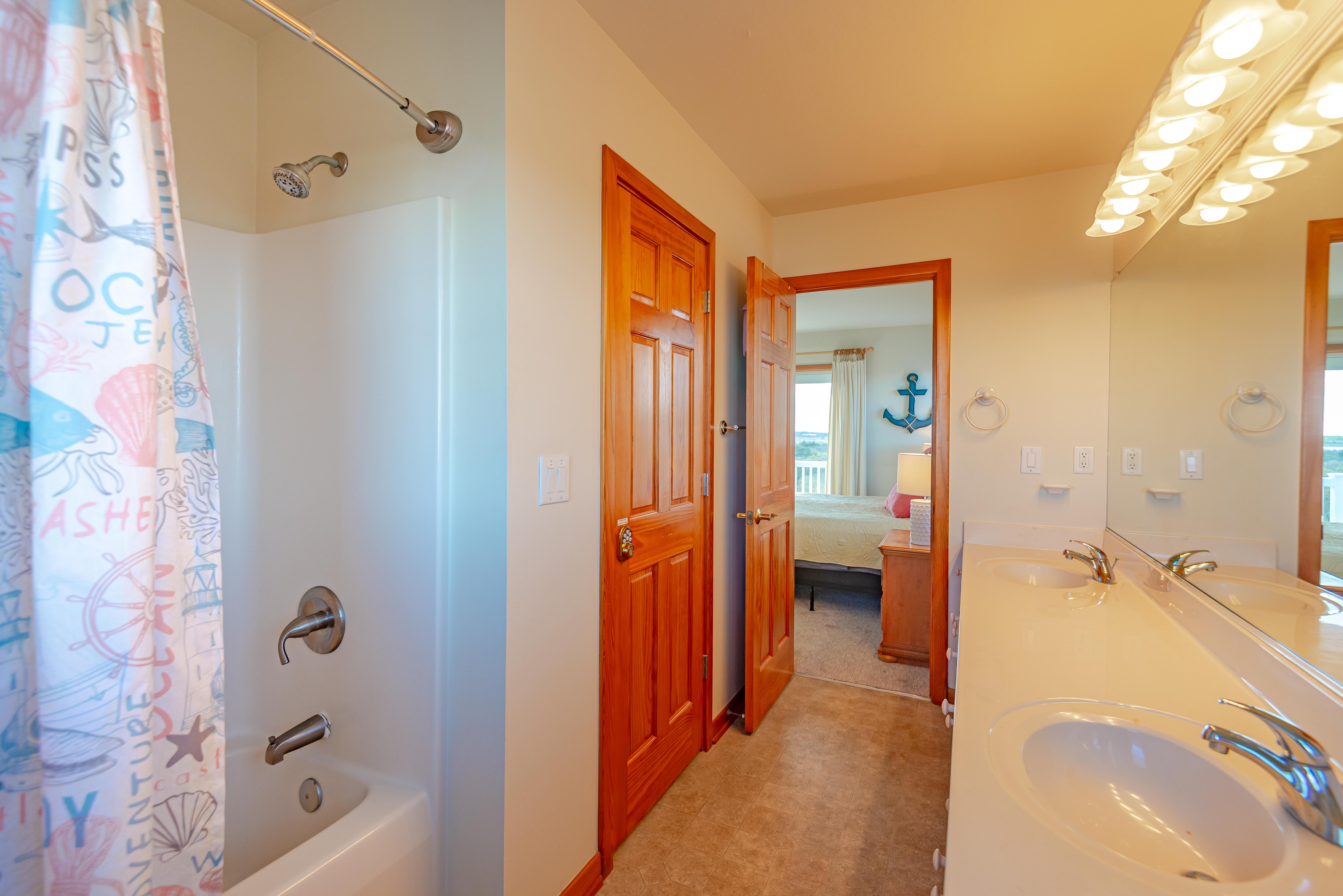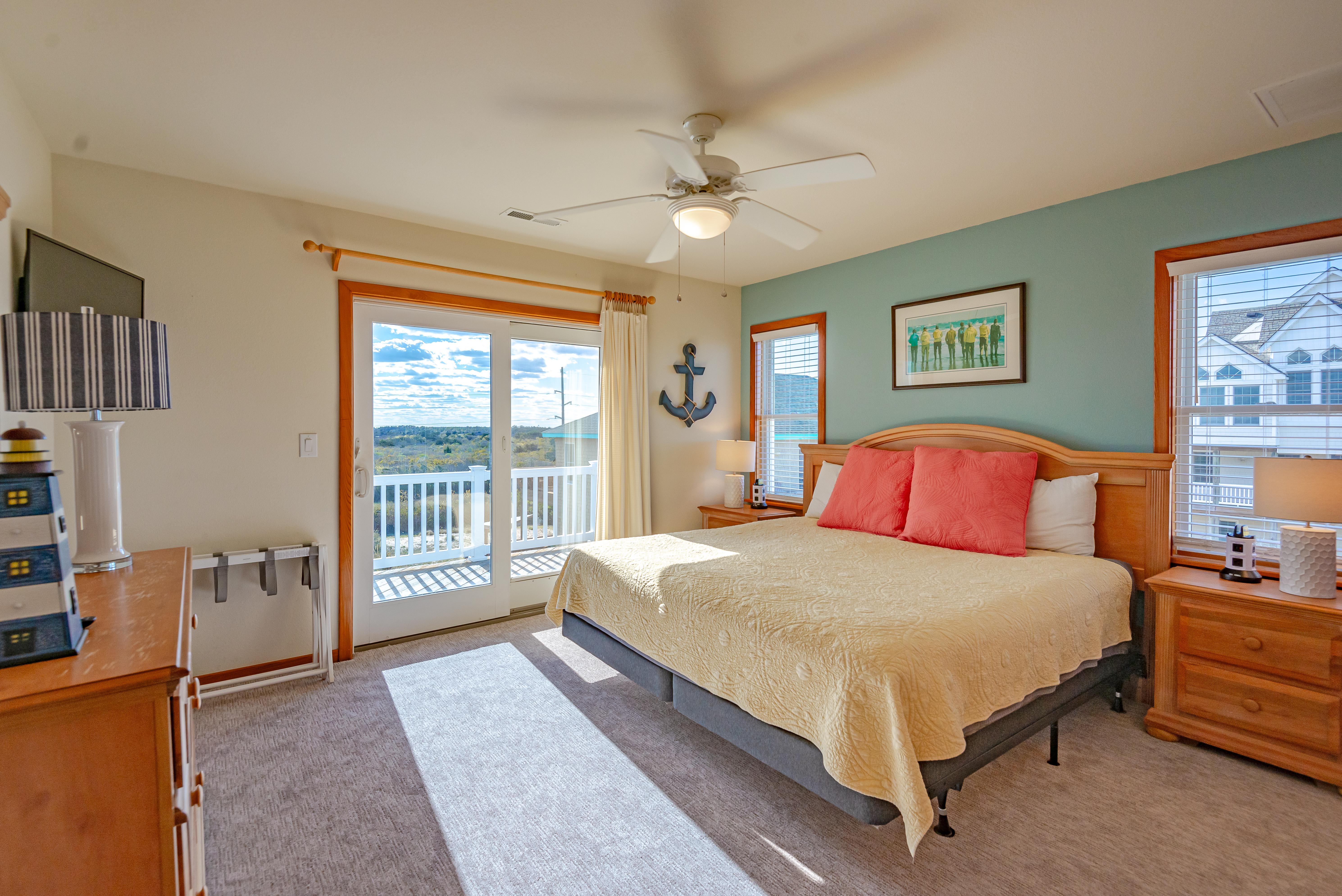 Top Level: Spacious, Beautifully Decorated, Well-Equipped Living/Dining/Kitchen Area featuring Fabulous Ocean to Sound Views, 65 Inch Smart TV with Roku with Cable Access, Half Bath, Screened Porch, Large Wrap-Around Sun Deck, and Private Suite w/King, Flat Screen TV w/Roku with Cable Access, and Full Bath.