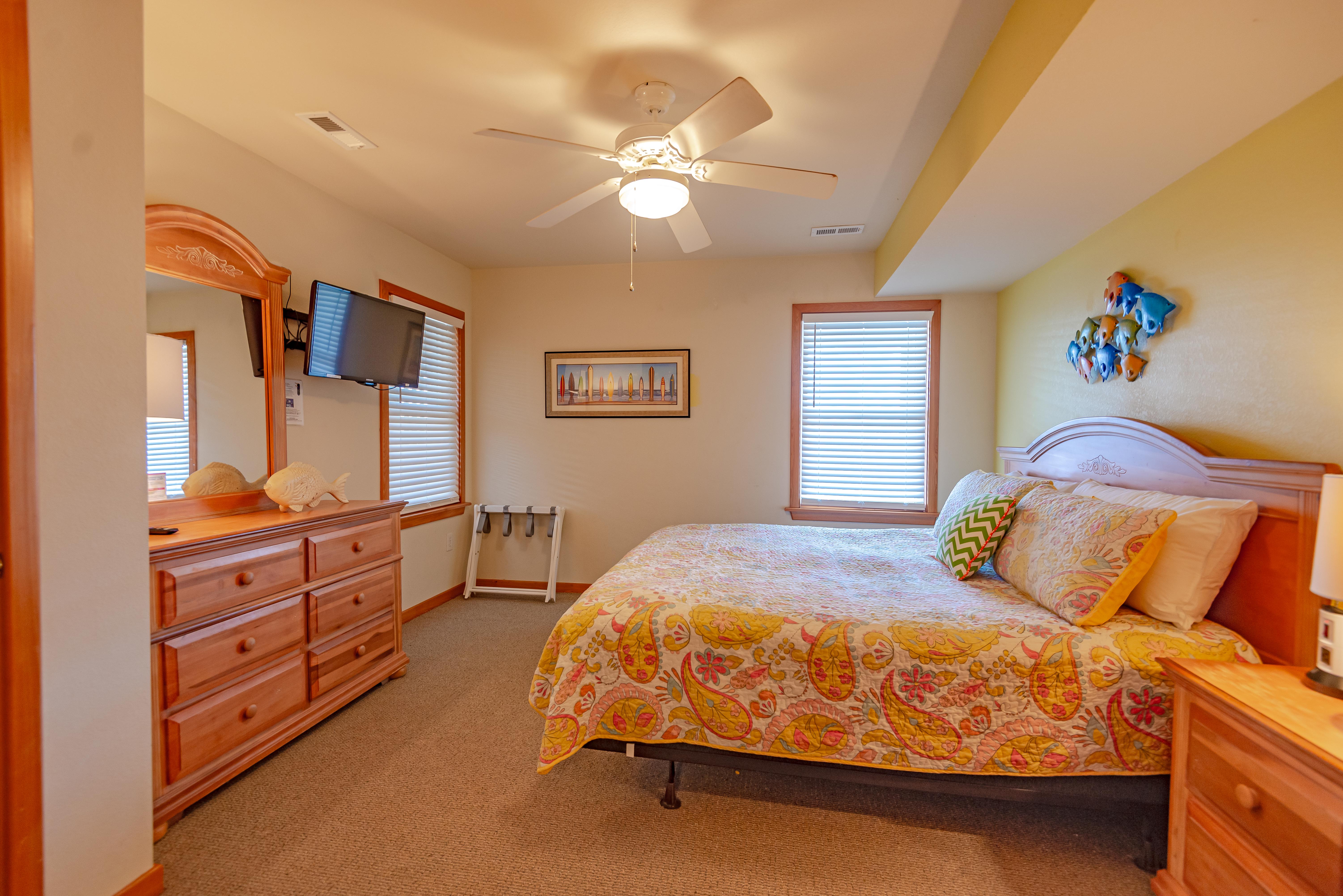 Mid Level: 4 Bedrooms (2 Private Suites w/Kings, Flat Screen TVs w/Roku with Cable Access, Full Baths; 1 w/Queen, Flat Screen TV w/Roku with Cable Access; 1 w/2 Bunk Sets, Flat Screen TV w/Roku with Cable Access;) Shared Full Bath, Huge Wrap-Around Covered Deck w/Furniture, and Sun Deck.