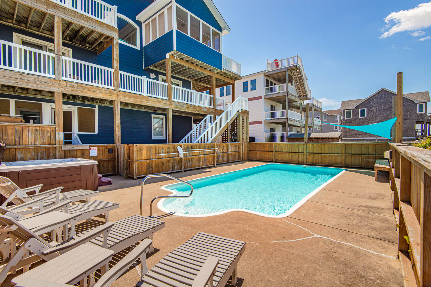BEACH ACCESS IS DIRECTLY ACROSS THE STREET along with the Outer Banks Fishing Pier with popular Fish Head's Grill. This spacious semi-oceanfront home has been updated and upgraded with improvements galore! New 65 Inch Smart TV in Great Room, Roku with Cable Access in every bedroom plus Rec Room, premium upgraded high-speed Internet, new great room furniture including two new couches, upgraded lighting, interior paint, upgraded shower heads, luggage racks, and updated decor throughout. Well stocked kitchen is a cook's dream (including a huge crab steamer and extra-large griddle), and for those rainy days enjoy the large Rec Room w/Pool Table, poker/blackjack tabletop, Bluetooth karaoke machine, a plethora of new board and card games, puzzles, and books! Later play corn hole or croquet in the yard or relax on one of two screened porches for even more happy memories. At SeaStar OBX there's something for everyone.