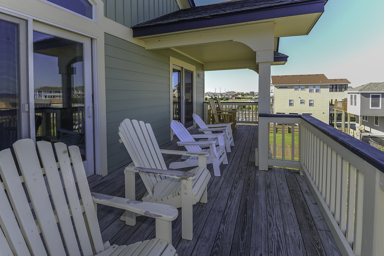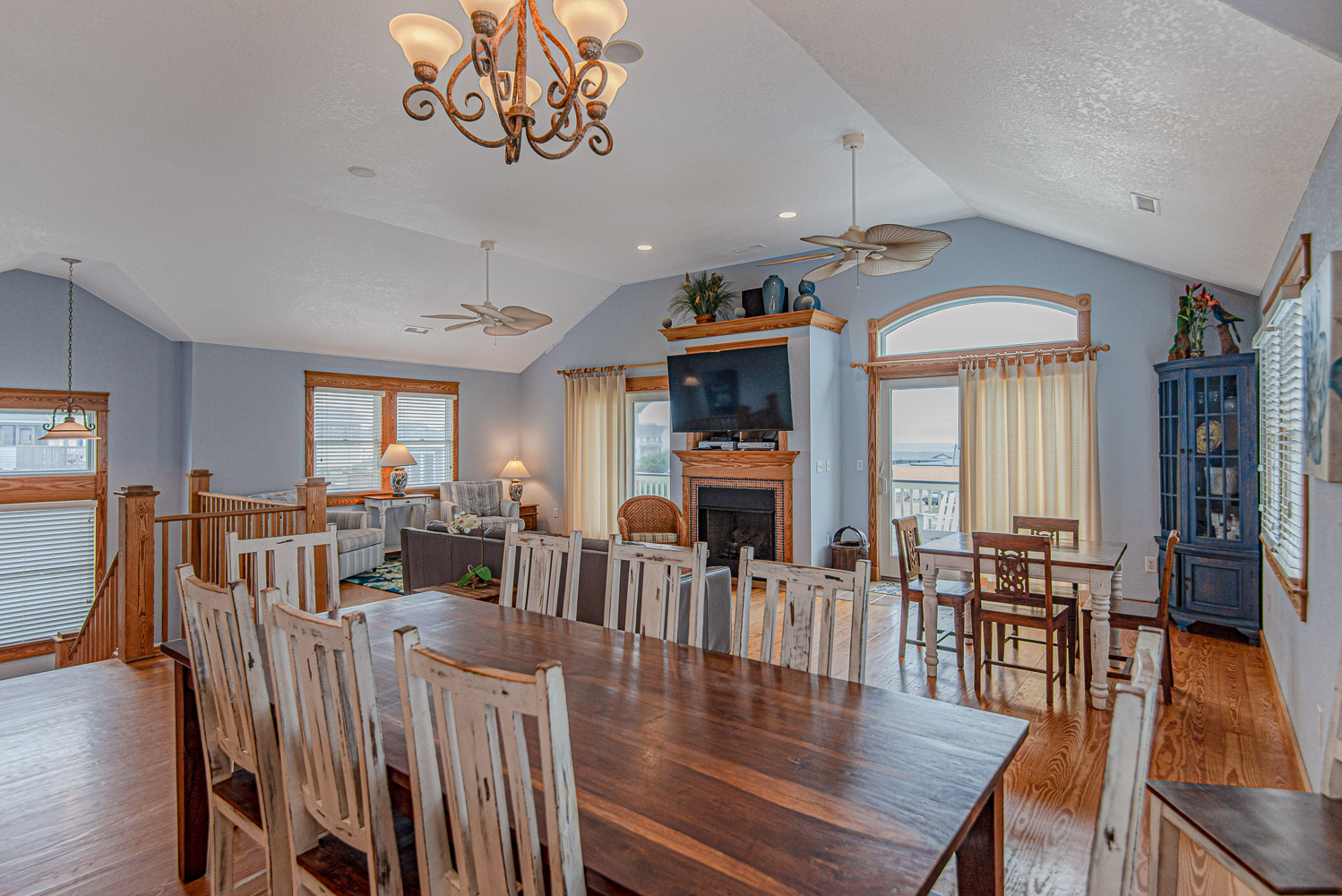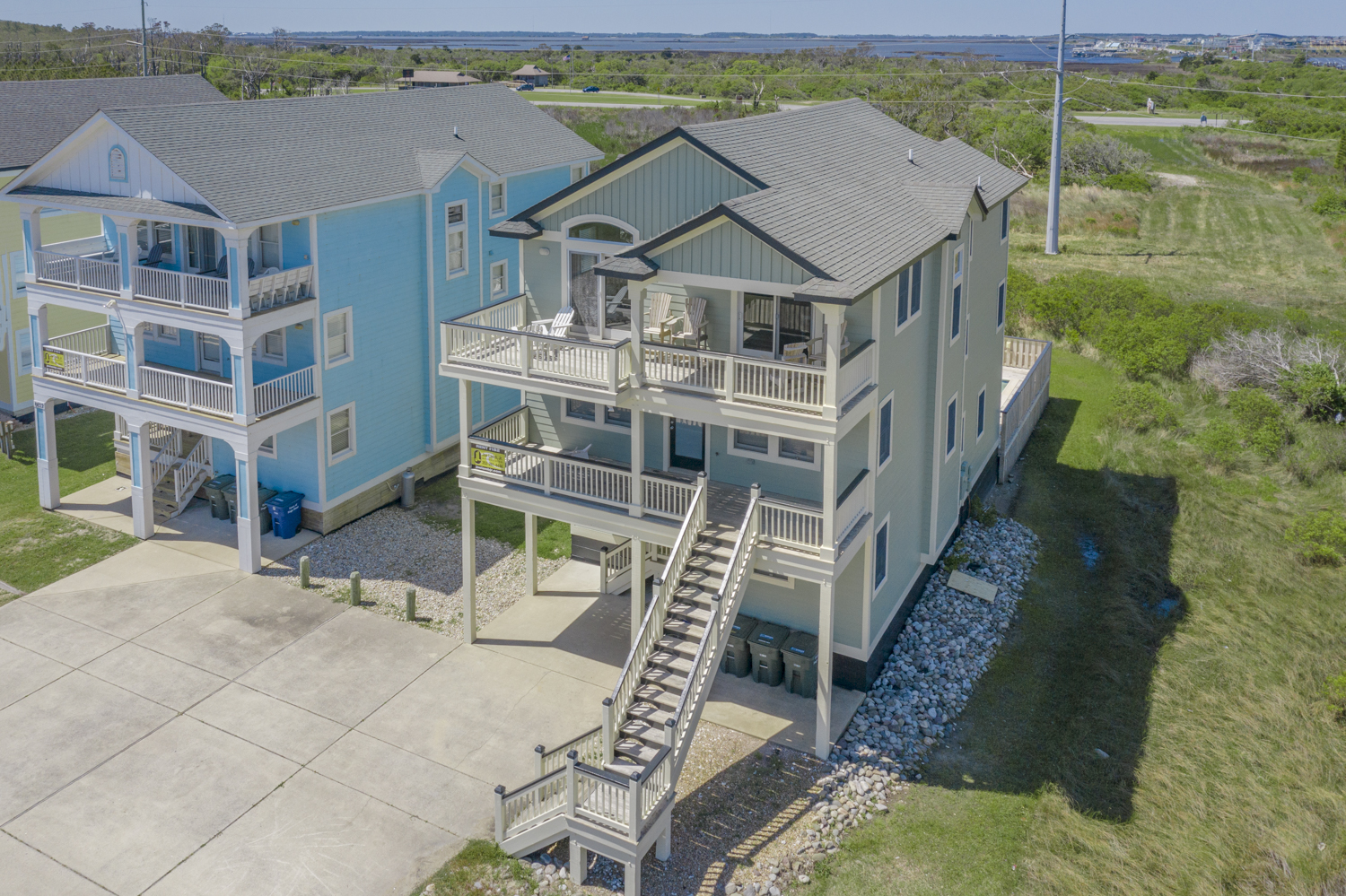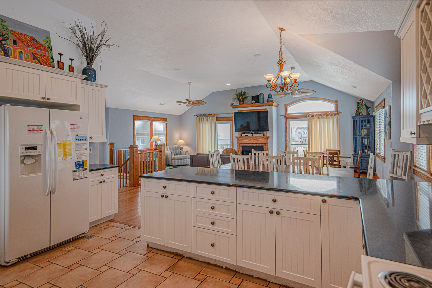 Top Level: Spacious Living/Dining/Kitchen Area, HDTV, Entertainment Area, Half Bath, Access to Front Covered & Sun Deck w/Deck Furniture & Ocean Views, Access to Back Covered Deck Overlooking Pool Area w/Sound Views & Deck Furniture, & Private Suite w/King, Flat Screen TV, & Full Bath w/Shower.