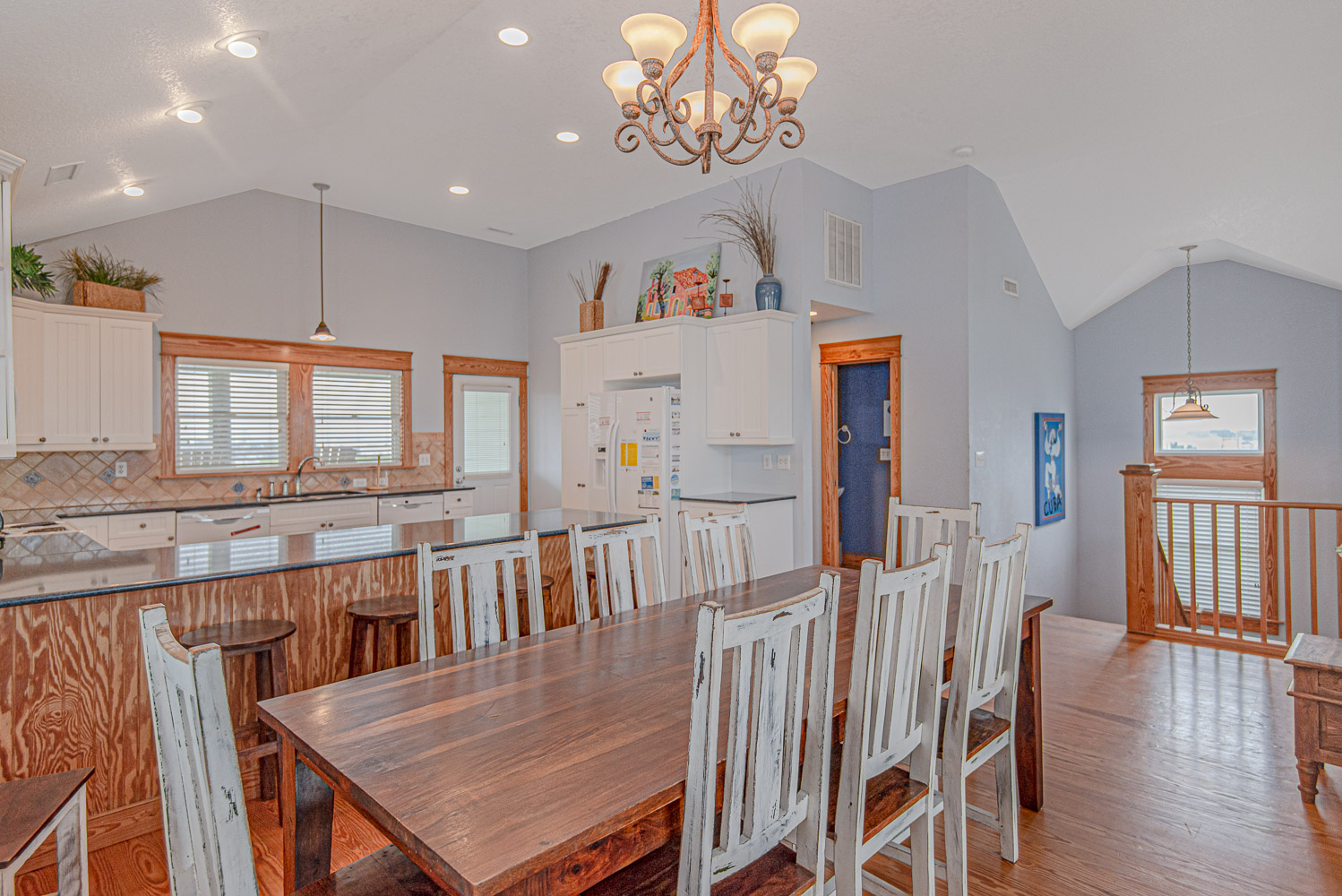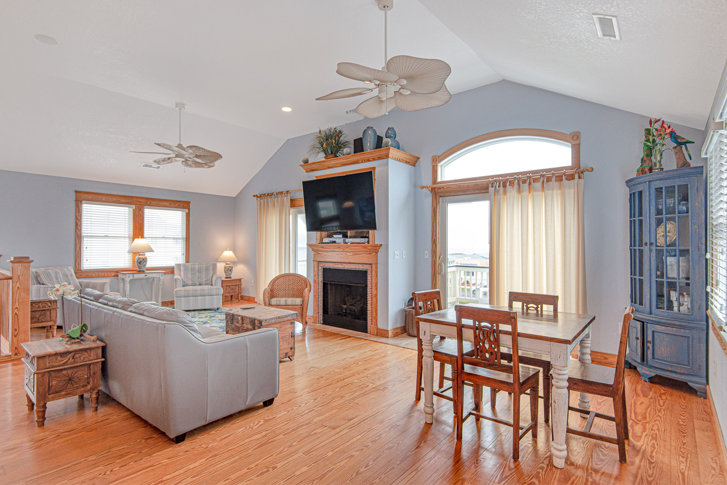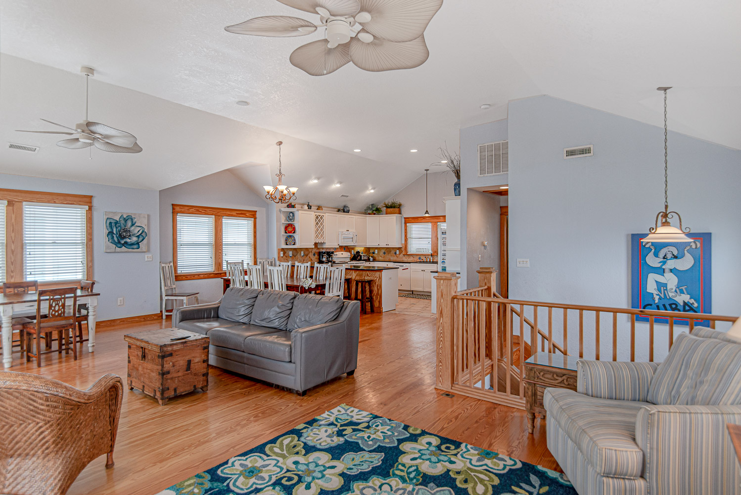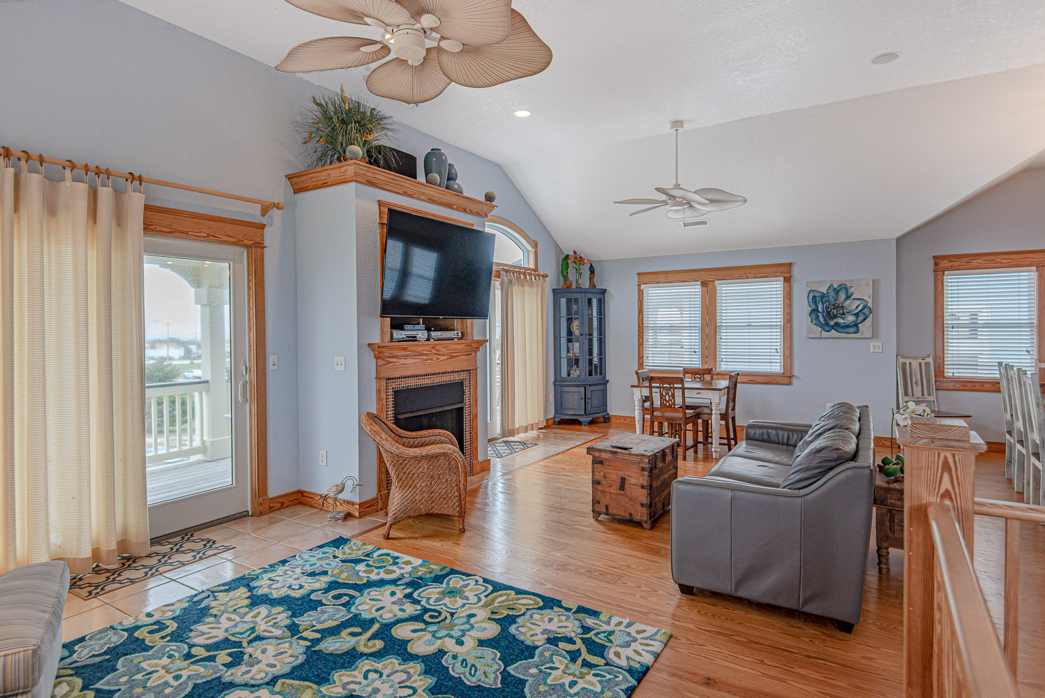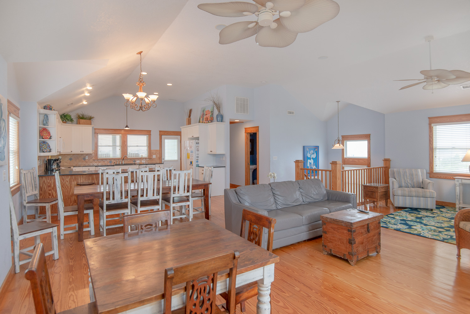 Top Level: Spacious Living/Dining/Kitchen Area, HDTV, Entertainment Area, Half Bath, Access to Front Covered & Sun Deck w/Deck Furniture & Ocean Views, Access to Back Covered Deck Overlooking Pool Area w/Sound Views & Deck Furniture, & Private Suite w/King, Flat Screen TV, & Full Bath w/Shower.