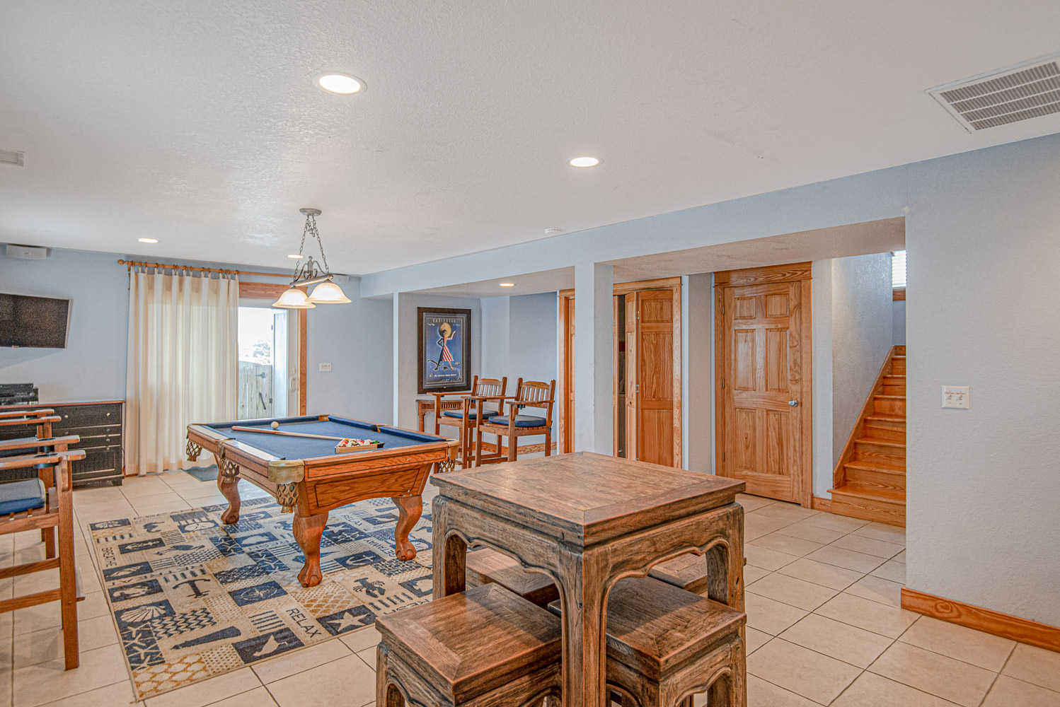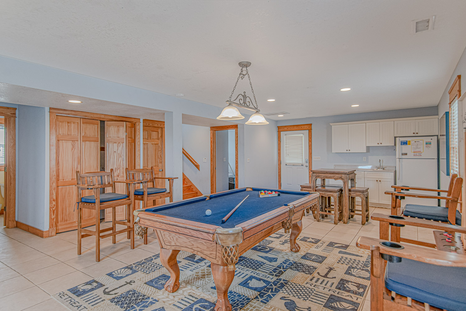 Ground Level: Parking for 6 Cars, Covered Entry, Spacious Rec. Room w/Pool Table, Wet Bar, TV; 2 Bedrooms (1 w/2 Duo Bunks; 1 Queen), Full Hall Bath w/Tub/Shower; & Access to Private 14x24 Swimming Pool - Open Seasonally, Hot Tub, Enclosed Outside Shower, & Gas Grill.