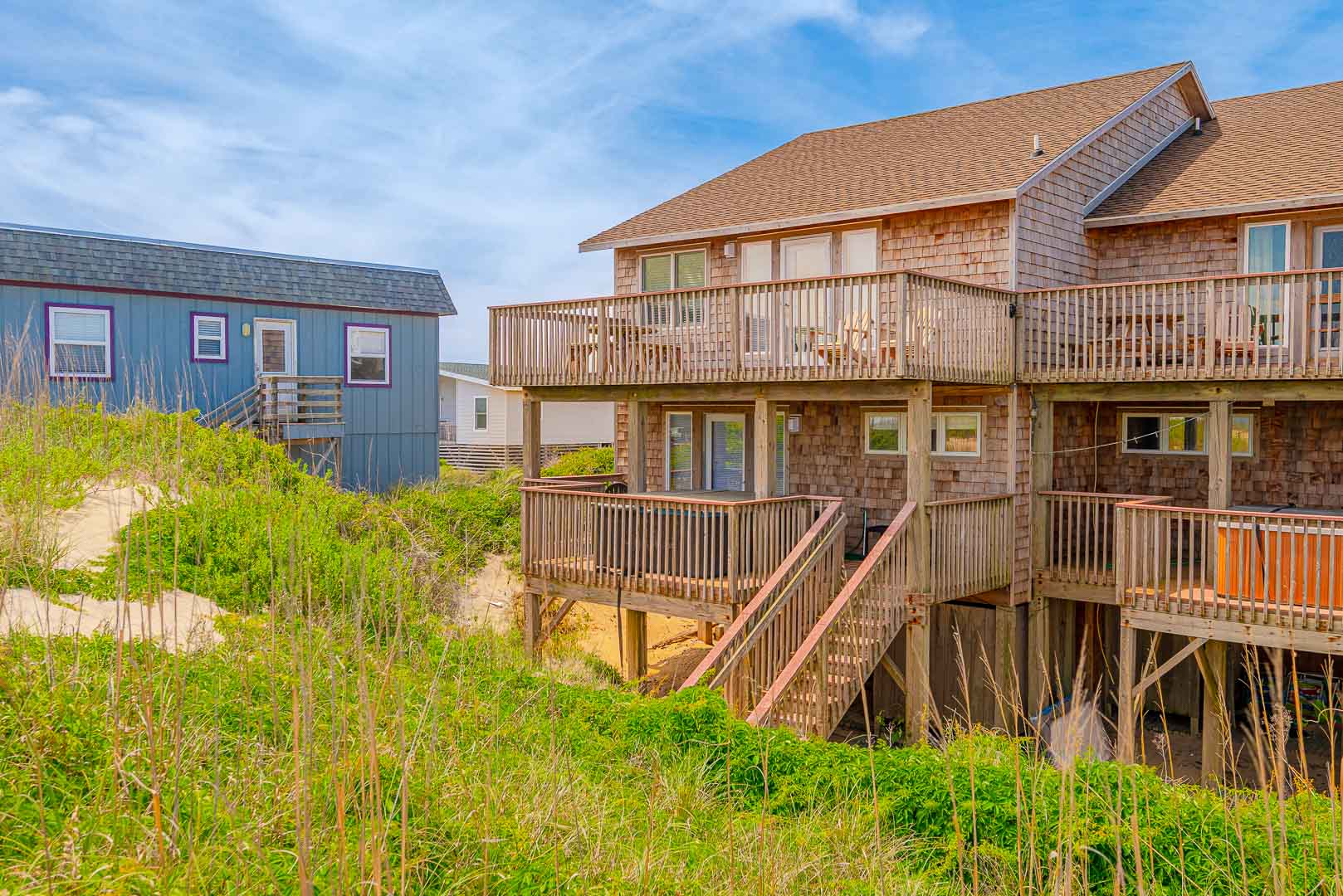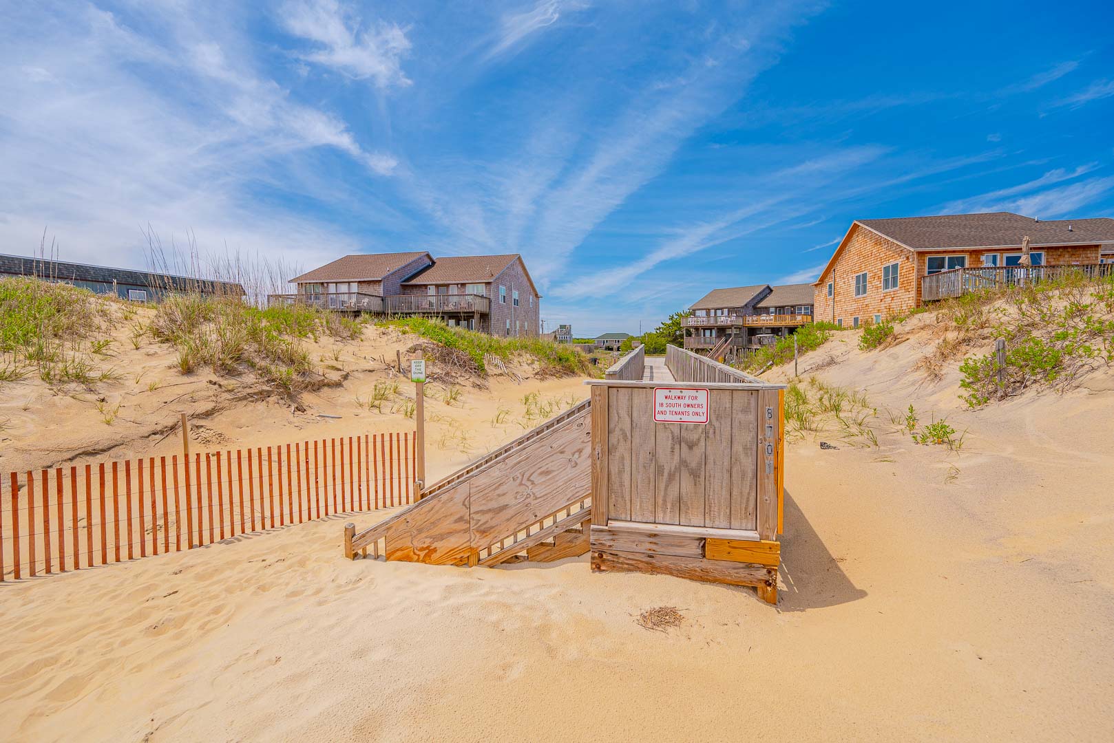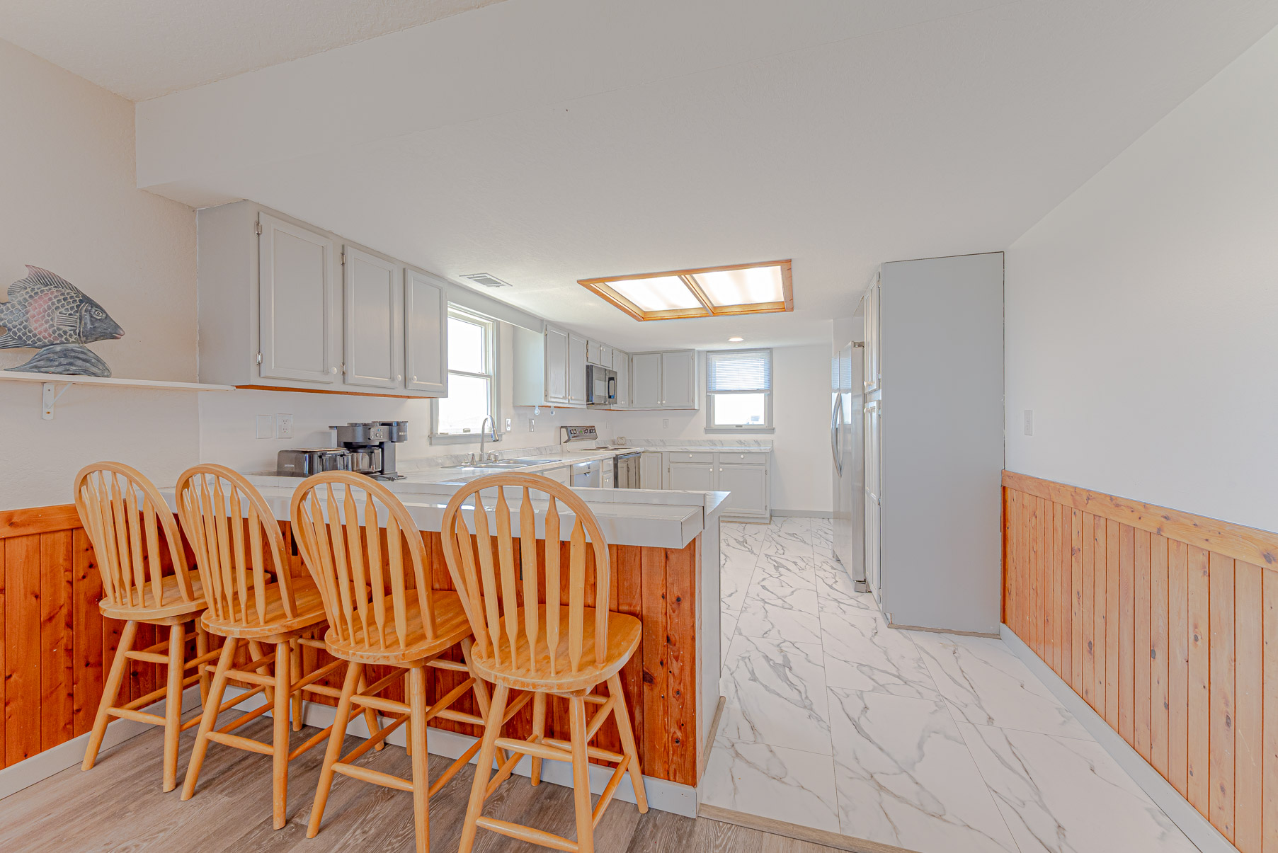 Top Level: Living/Dining/Kitchen Area, TV, VCR, DVD, Stereo, Wet Bar, Mini Refrigerator, Bedroom w/Queen, Full Bath, Sun Deck, Covered Deck, and Wonderful Ocean and Beach Views.