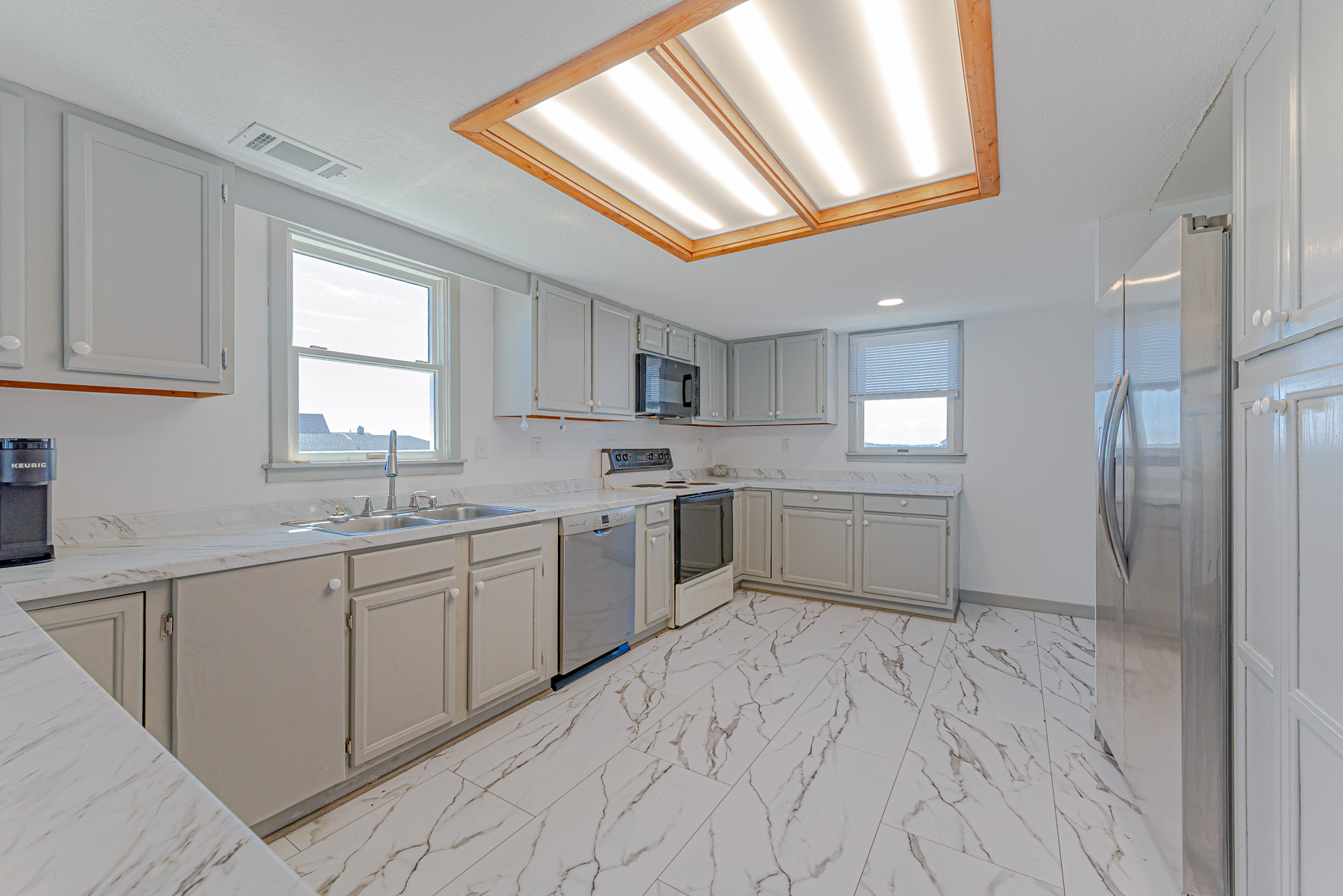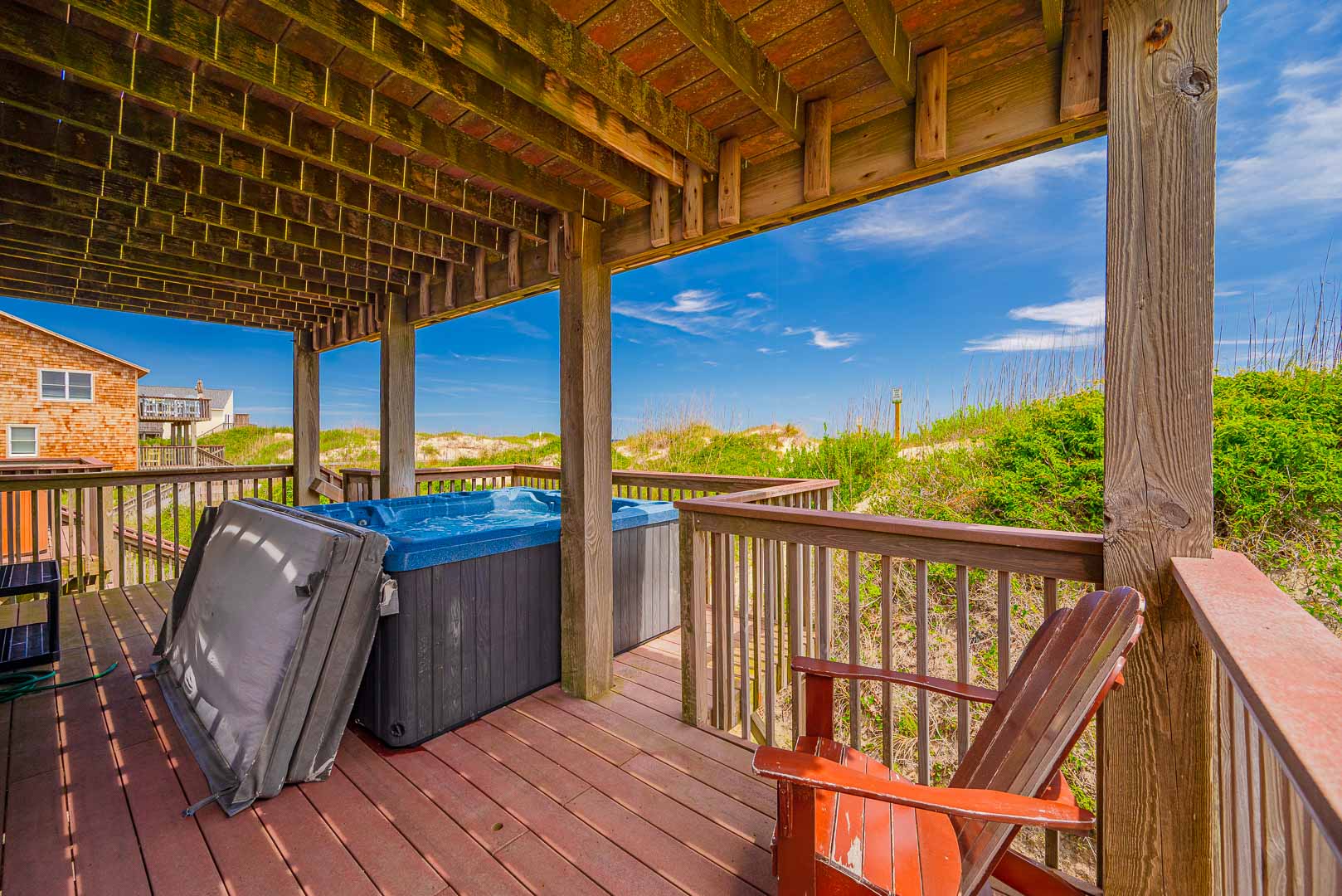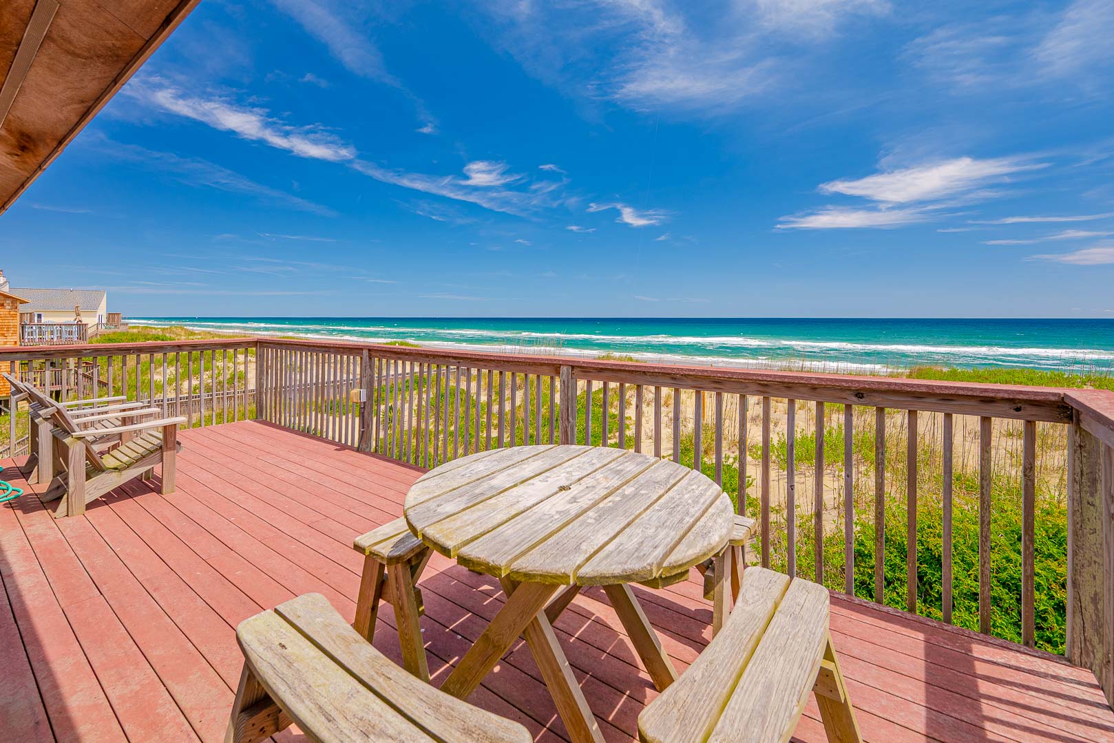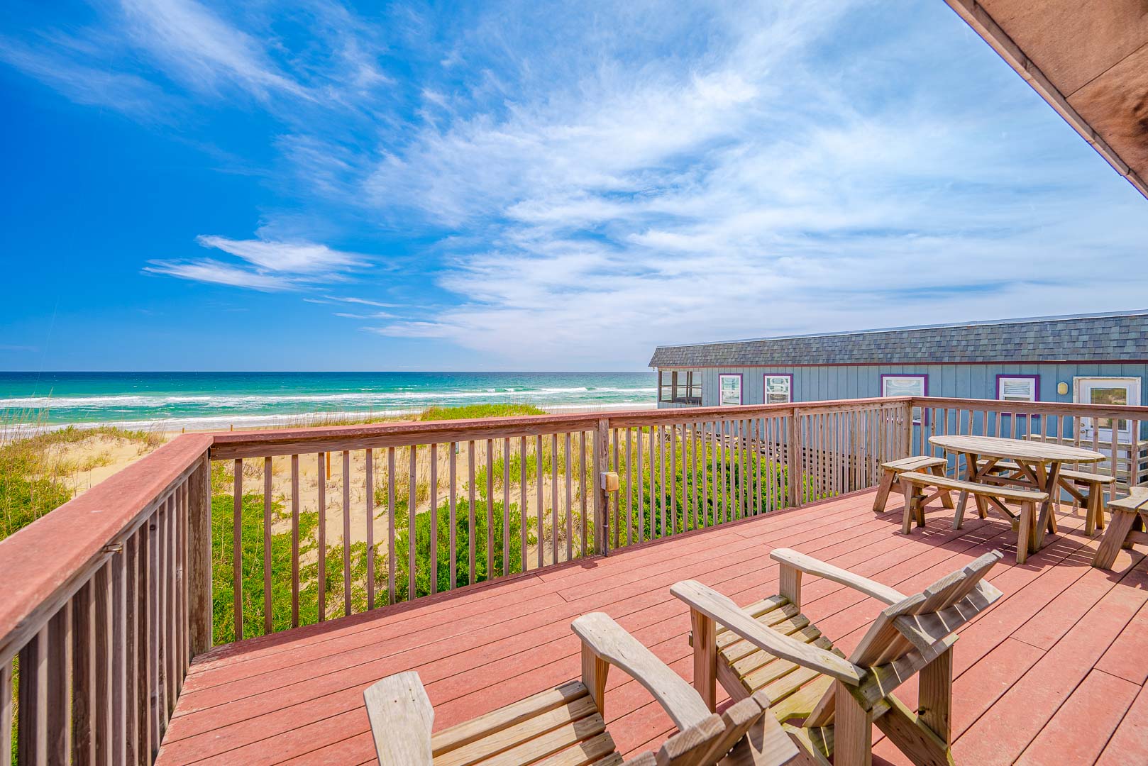 Top Level: Living/Dining/Kitchen Area, TV, VCR, DVD, Stereo, Wet Bar, Mini Refrigerator, Bedroom w/Queen, Full Bath, Sun Deck, Covered Deck, and Wonderful Ocean and Beach Views.