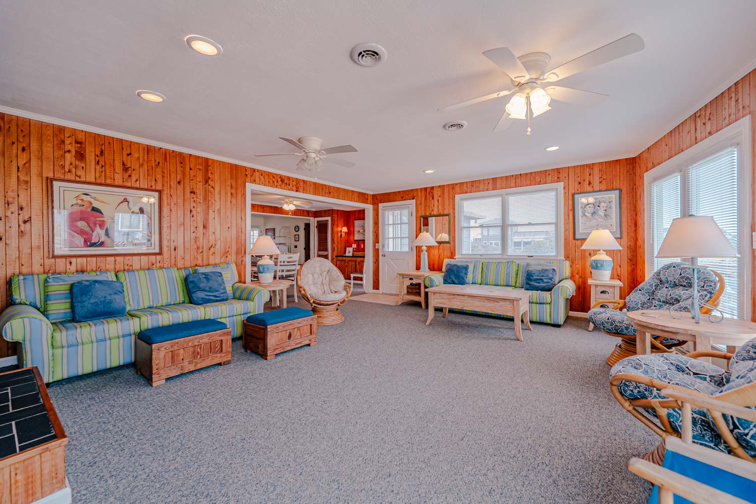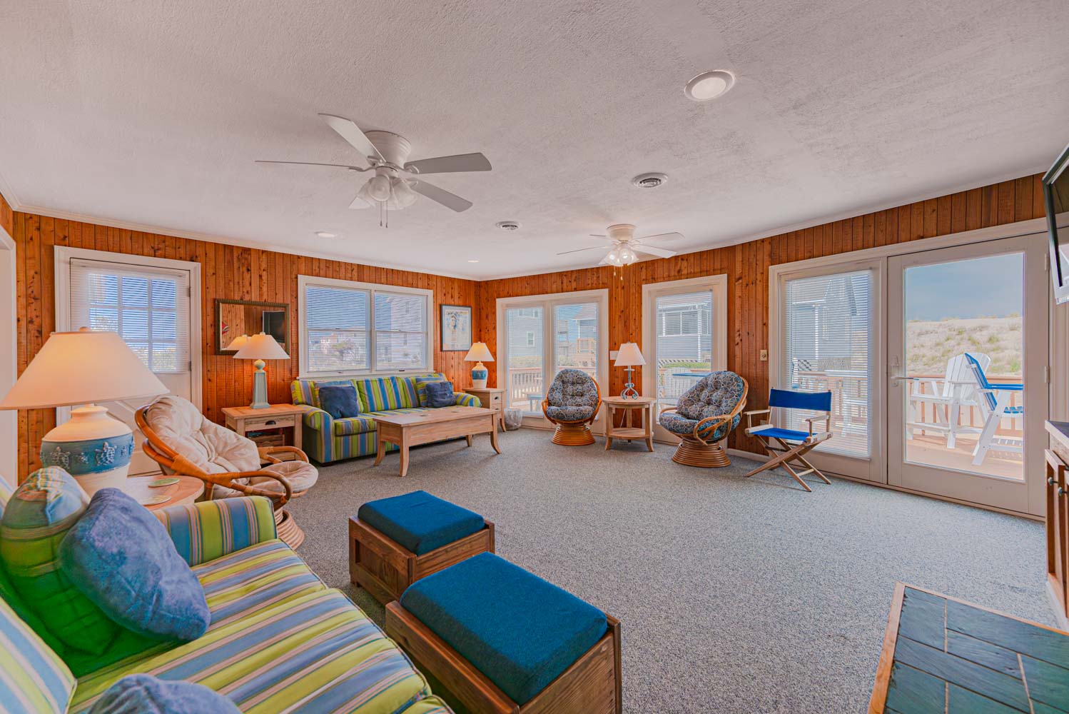Main Level: Living/Dining/Kitchen Area, TV, Stereo w/CD, Gas Fireplace, 4 Bedrooms (3 w/Queens (2 w/TVs), 1 w/2 Singles), 2 Full Baths, Screened Porch, & Sun Deck.